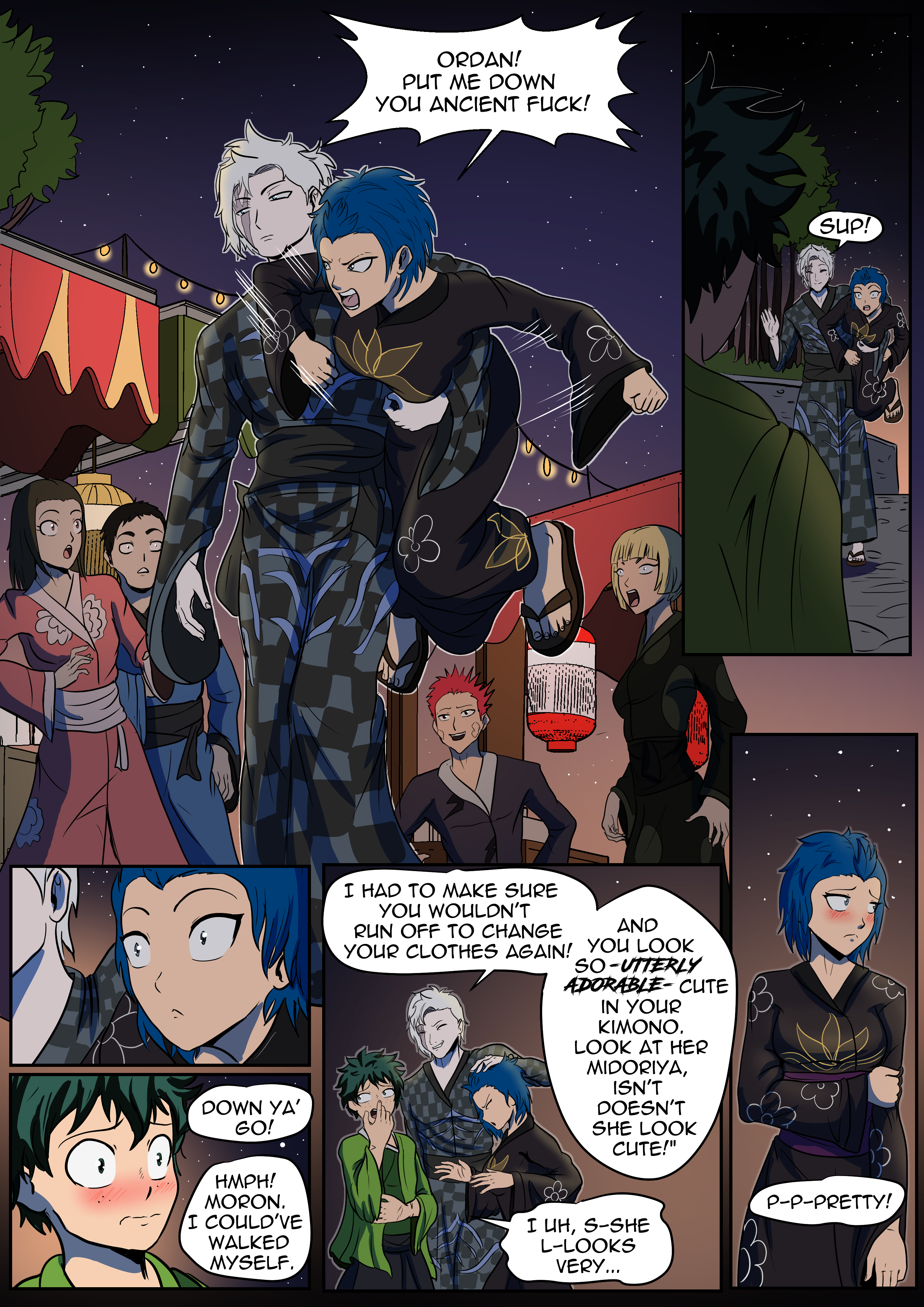 “Oh…” Izuku turned bashful. “Sorry, I have a habit of muttering sometimes when I get excited about quirks… or heroics… or drawing.” He started to ramble. Hitoshi snapped his fingers to snap him out of it.