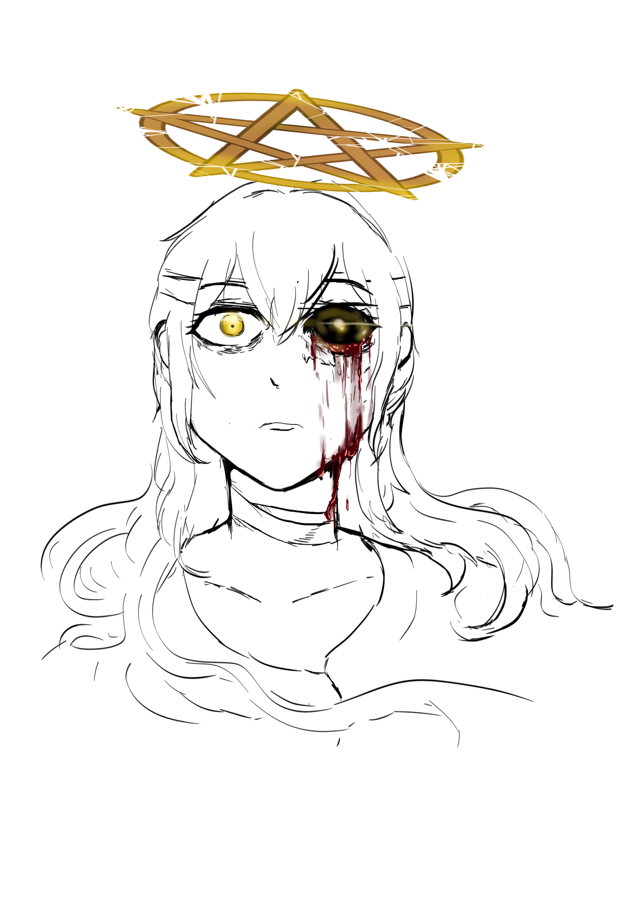 His eyes both stared at her empty socket, raw and red with blood and tears, and the other—her remaining eye, dull gold, brimming with grief and pain.