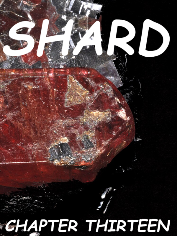 "Oh," he smirked, "we shall see!" He stood up and stumbled forward. I caught him. He reached for the shard in my hand but I let go of him (not the shard) and stepped out of his reach.