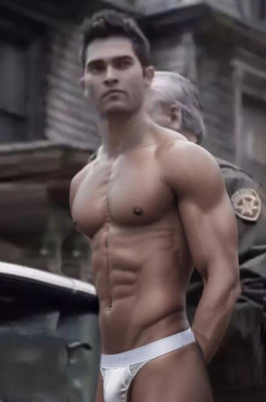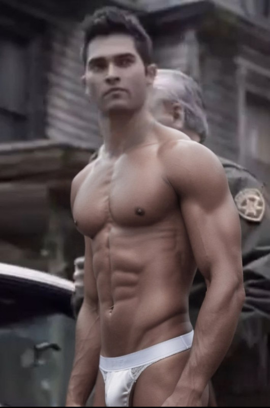 "Hmm. It seems that I can’t find anything. But you could have shoved the drugs in deeper so I wouldn’t find it. Guess I will have to do a full inspection." He pulls down Derek's shorts. Leaving him with a clear view of his ass in the jockstrap.