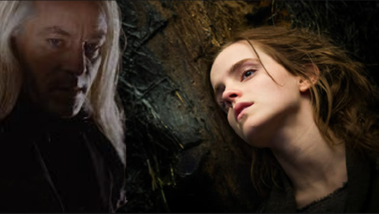 Suddenly it stopped… She heard the scuffle of running footsteps, and jeering whoops of victory grew closer but Hermione couldn’t force her body into motion. She felt her wand in her hand but it may as well have been a useless twig for all she was able to do with it, barely flexing her fingers around the handle before someone grabbed her by the hair and wrenched her upward painfully and she felt her scalp burning and hair tearing from it with the force as she was hauled against the lunk of ham that was Gregory Goyle as someone else yanked her wand from her hand.