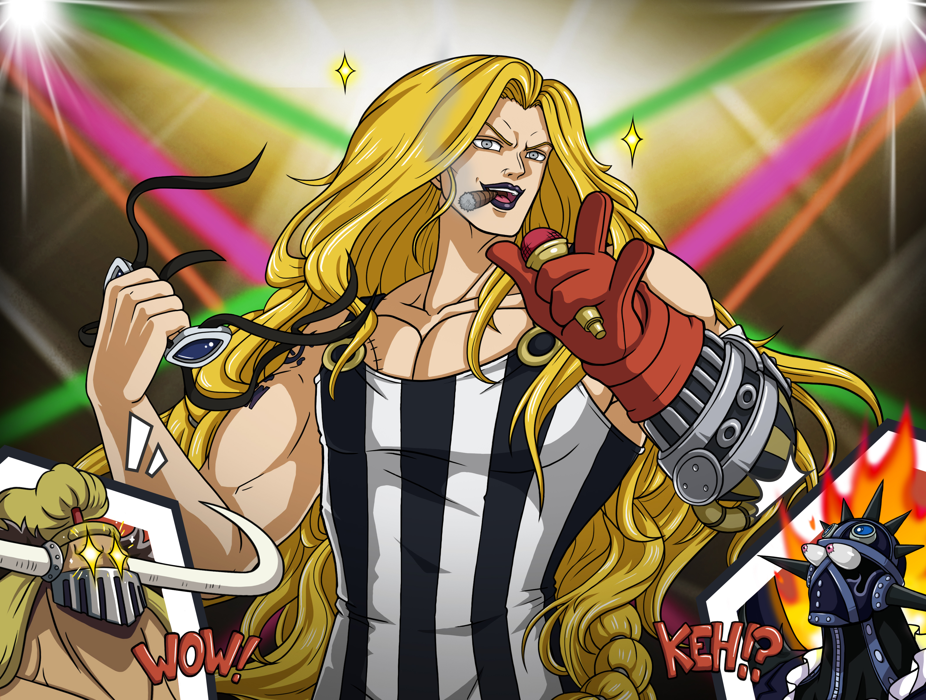 Kaido: WOH-ROH-ROH-ROH-ROH!!! VAI QUEEN!!! (Era così felice di vedere Queen sul palco, se il suo scienziato avrebbe vinto a Grandorchestra, era un titolo importante da assegnare alla sua ciurma)