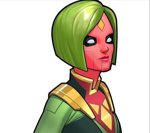 And the Mind Stone appeared on her forehead, glowing as her appearance resettled.