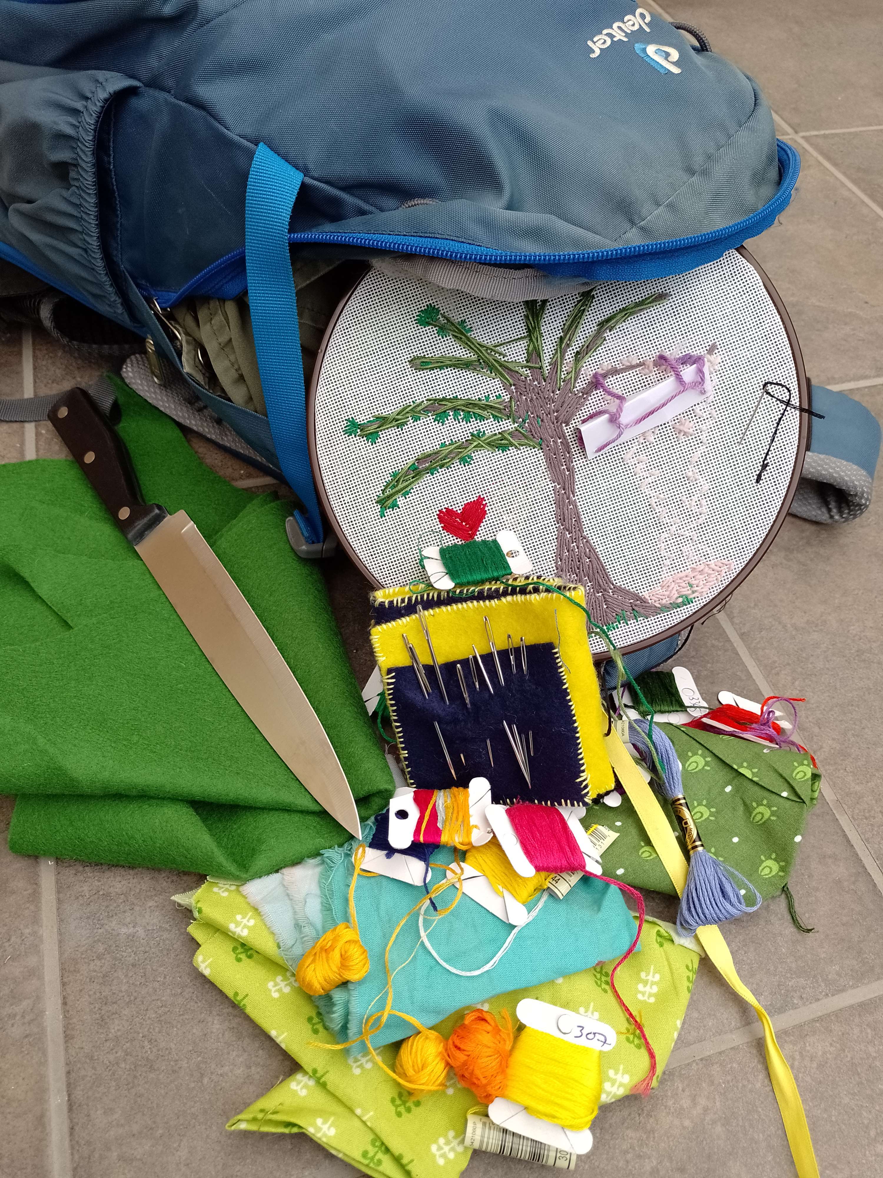 Long lazy straight stitches to provide an impression of the tree shape and leaves: