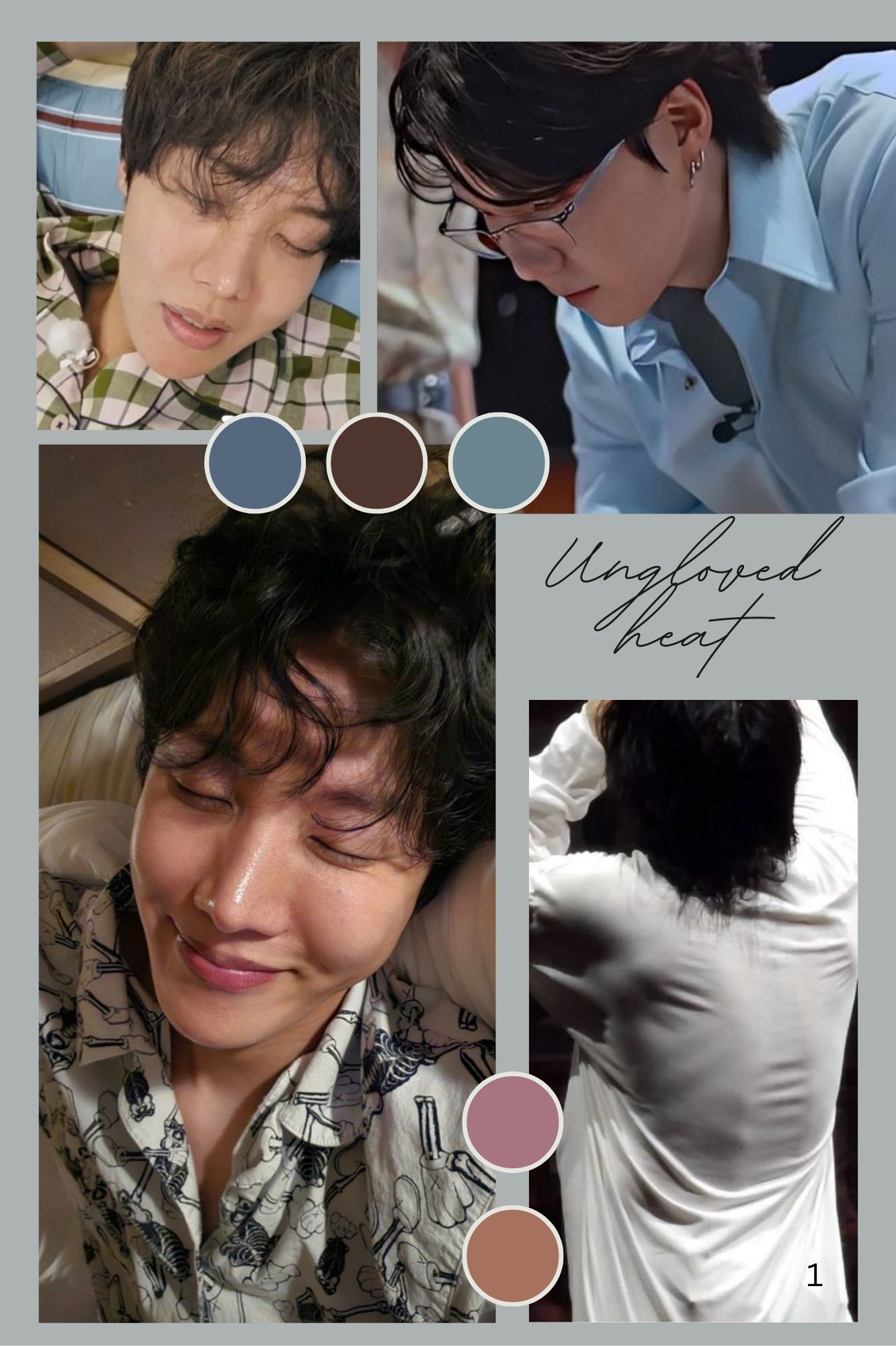 Hoseok twists his hand loosely around his cockhead, precum dribbling out onto his palm. He lifts his hand and stares at it scrutinizingly before licking a broad, flat stripe across his palm to gather all his arousal on his taste buds. He doesn’t swallow it down, instead pressed his tongue to the roof of his watering mouth, closing his eyes to really focus on his taste.