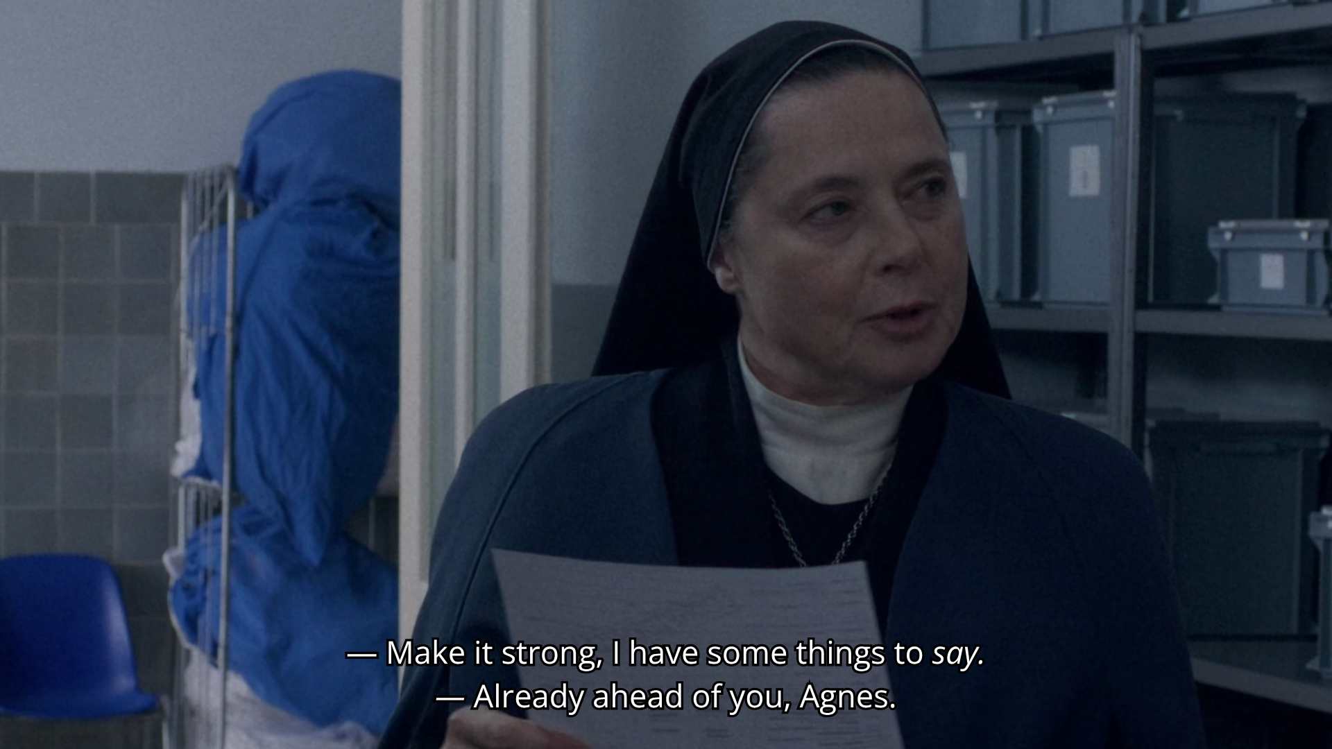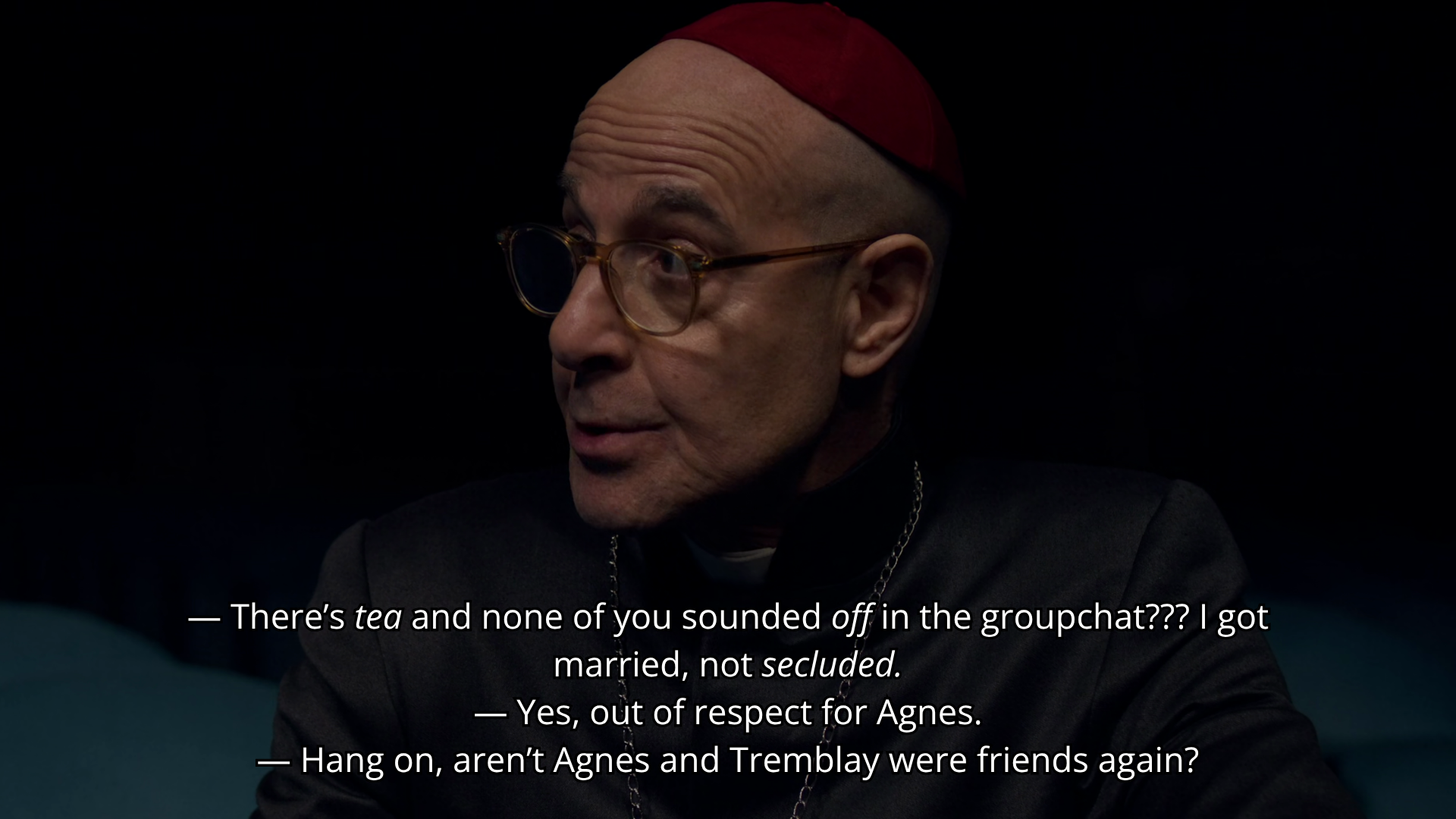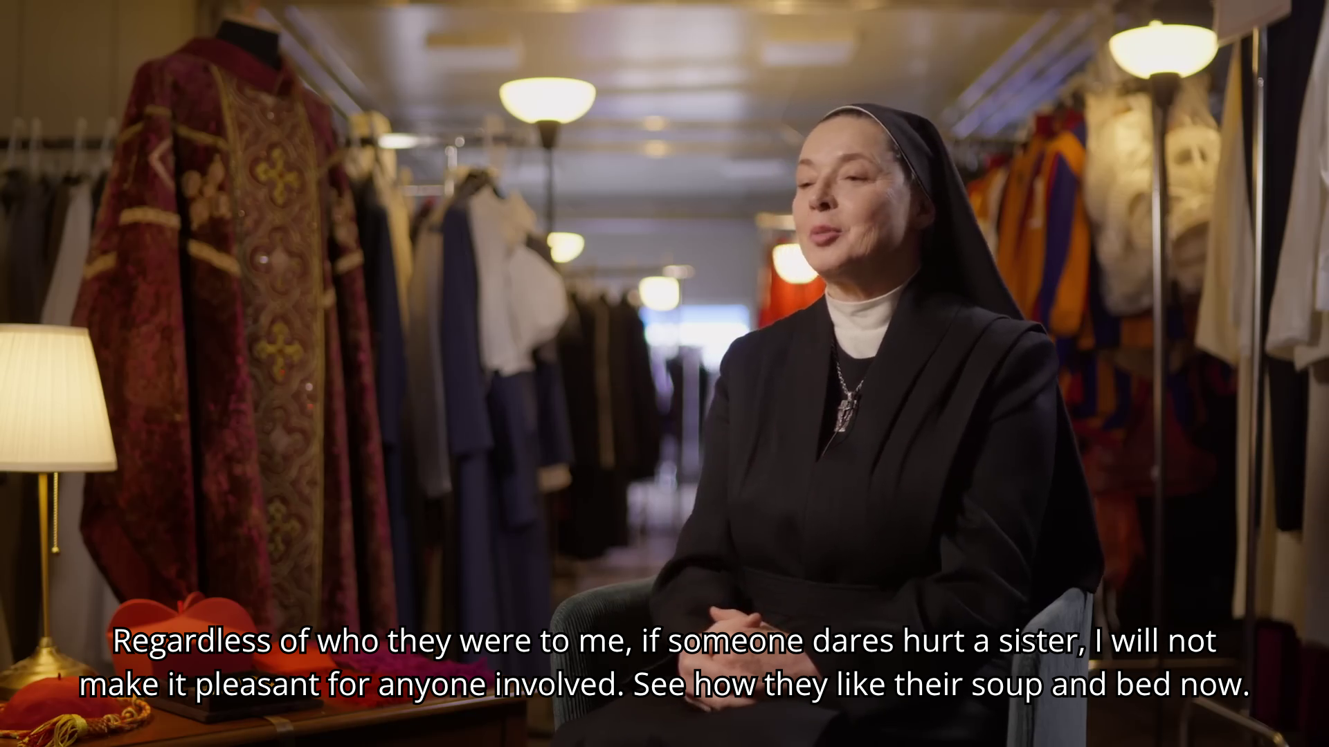 Q: Sister Agnes, it was discovered that you were "exes" with former Cardinal Tremblay in the past. Was that why you spoke out during the cafeteria confrontation?