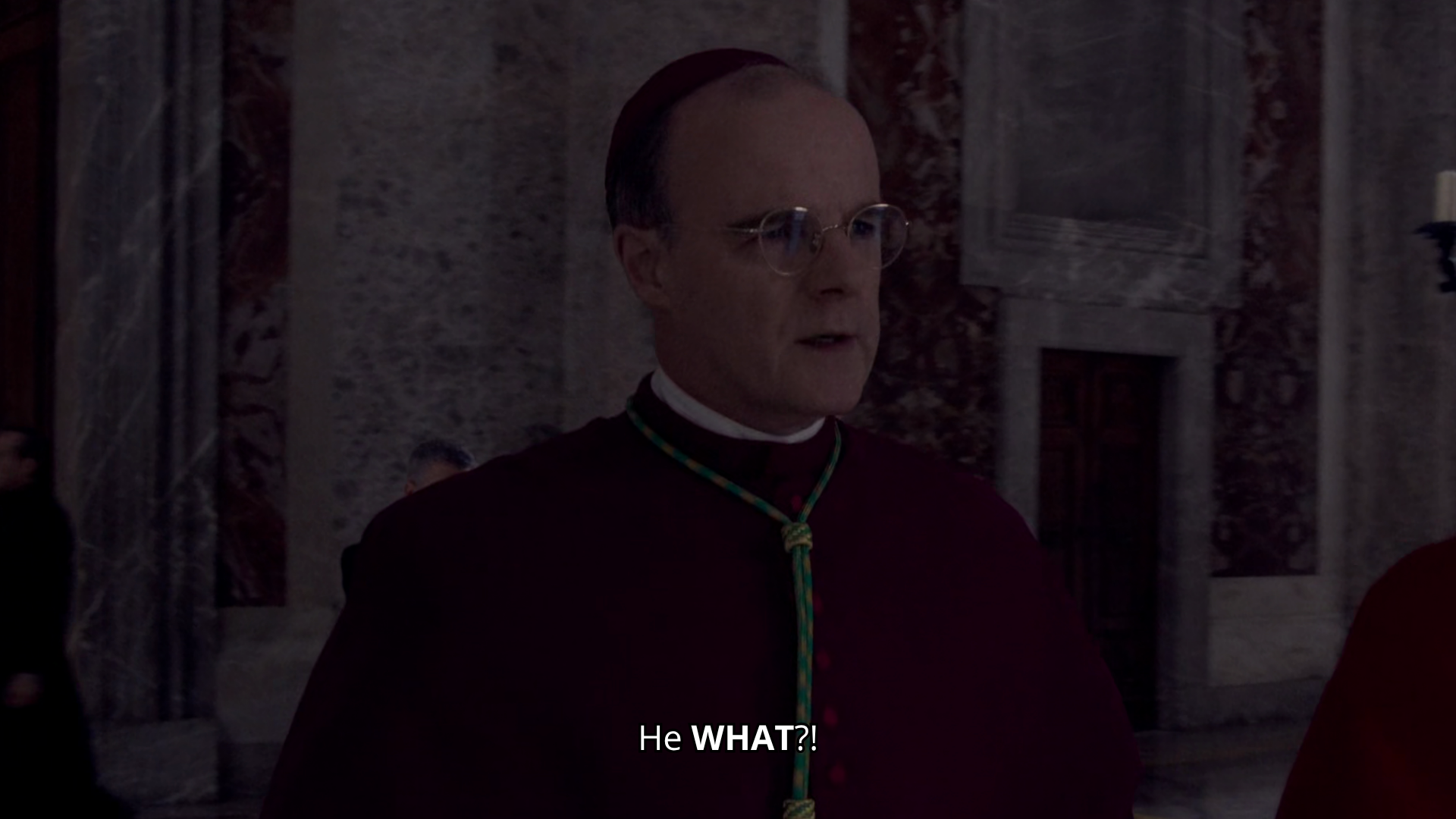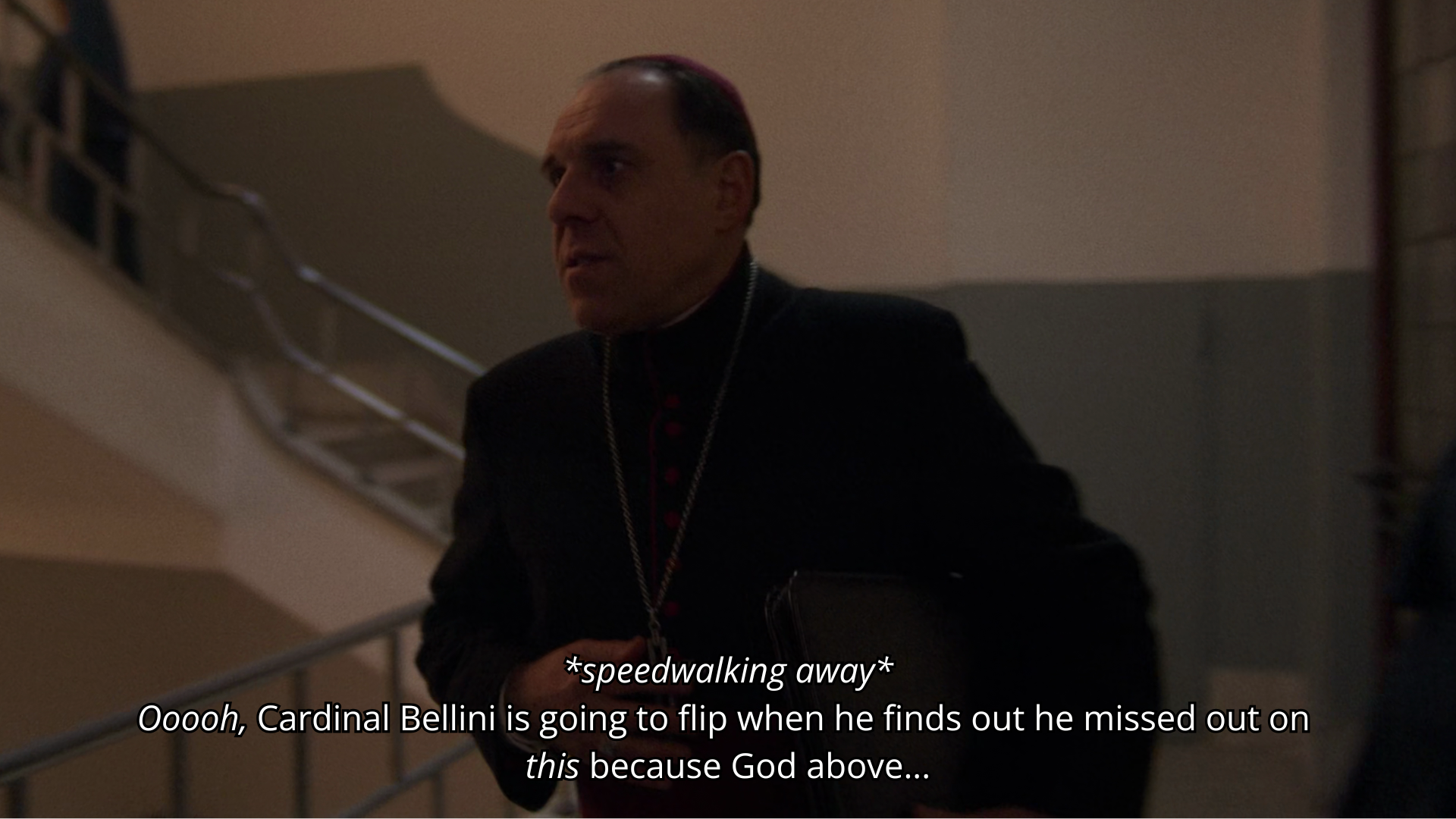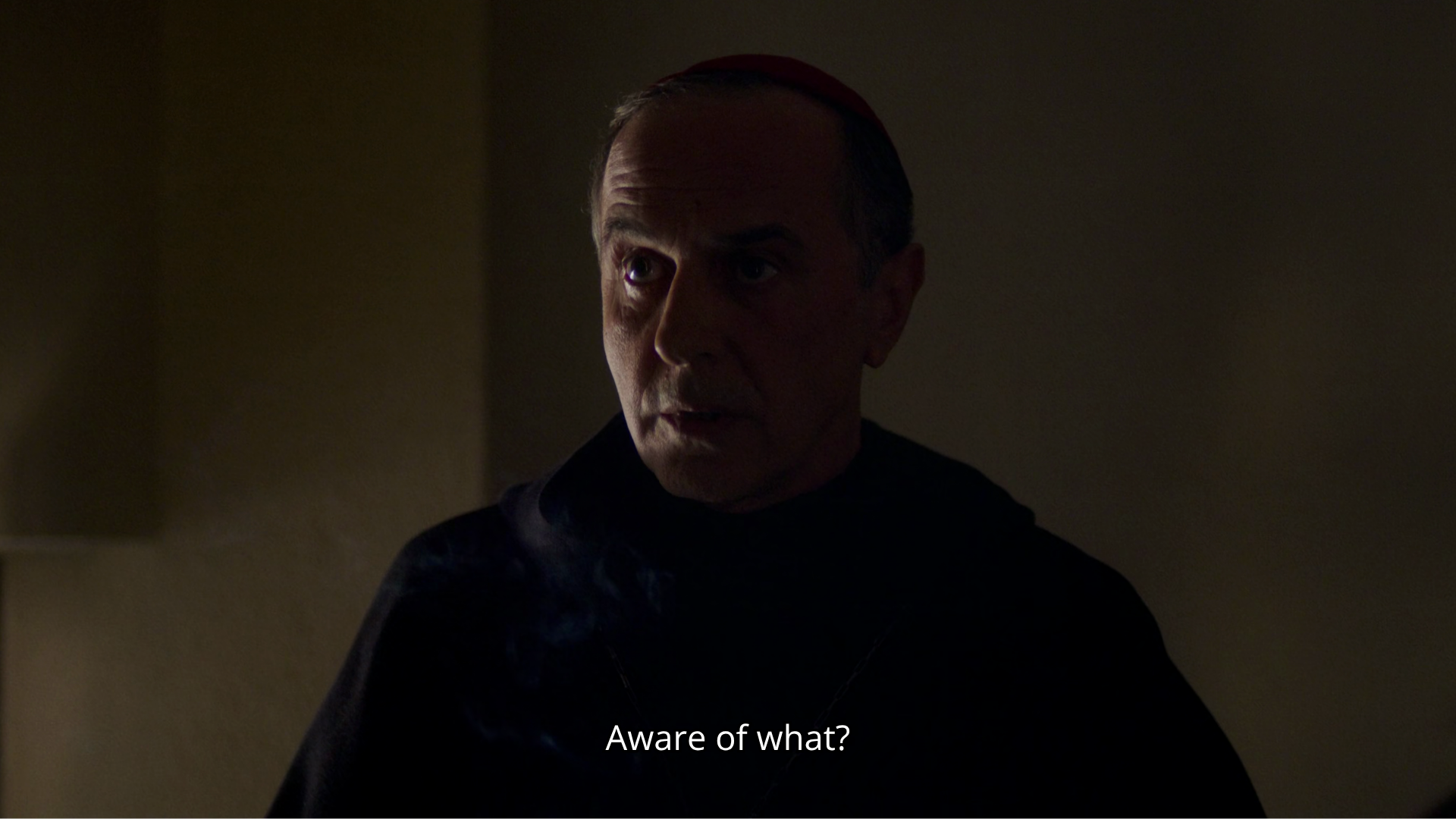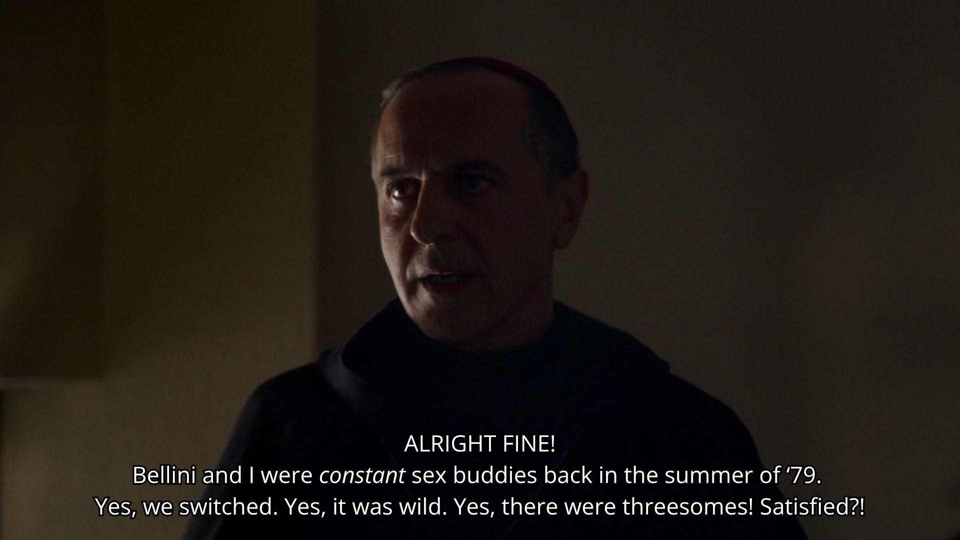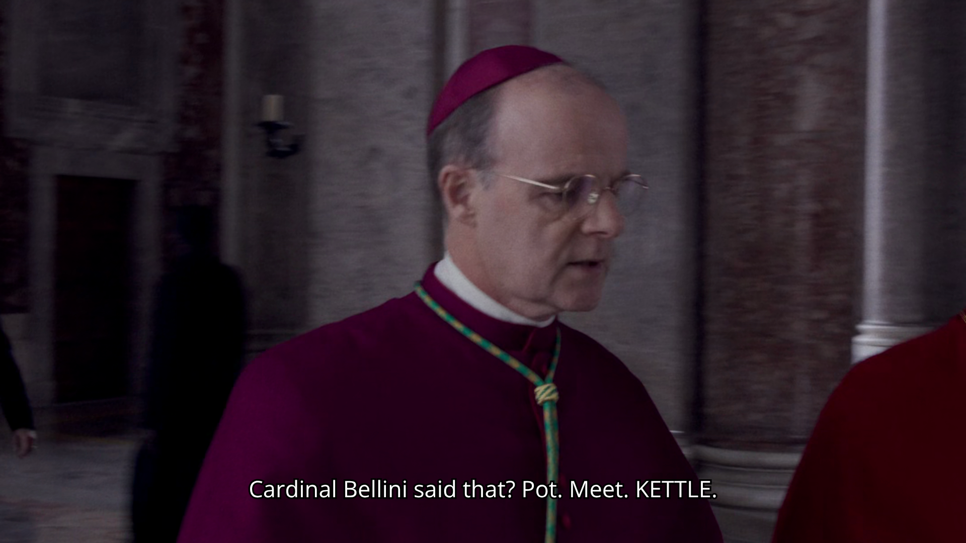 Q: Your Eminence, we'll put it bluntly. Why have you been glaring at Cardinal Bellini?