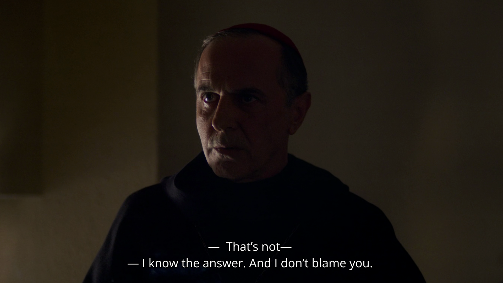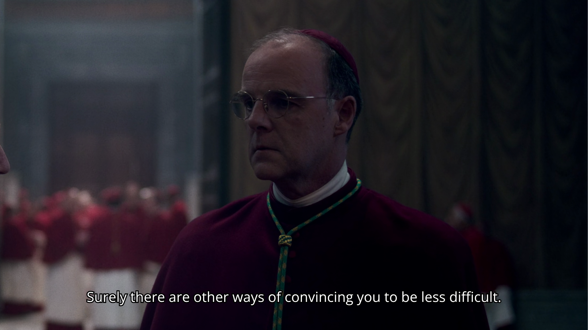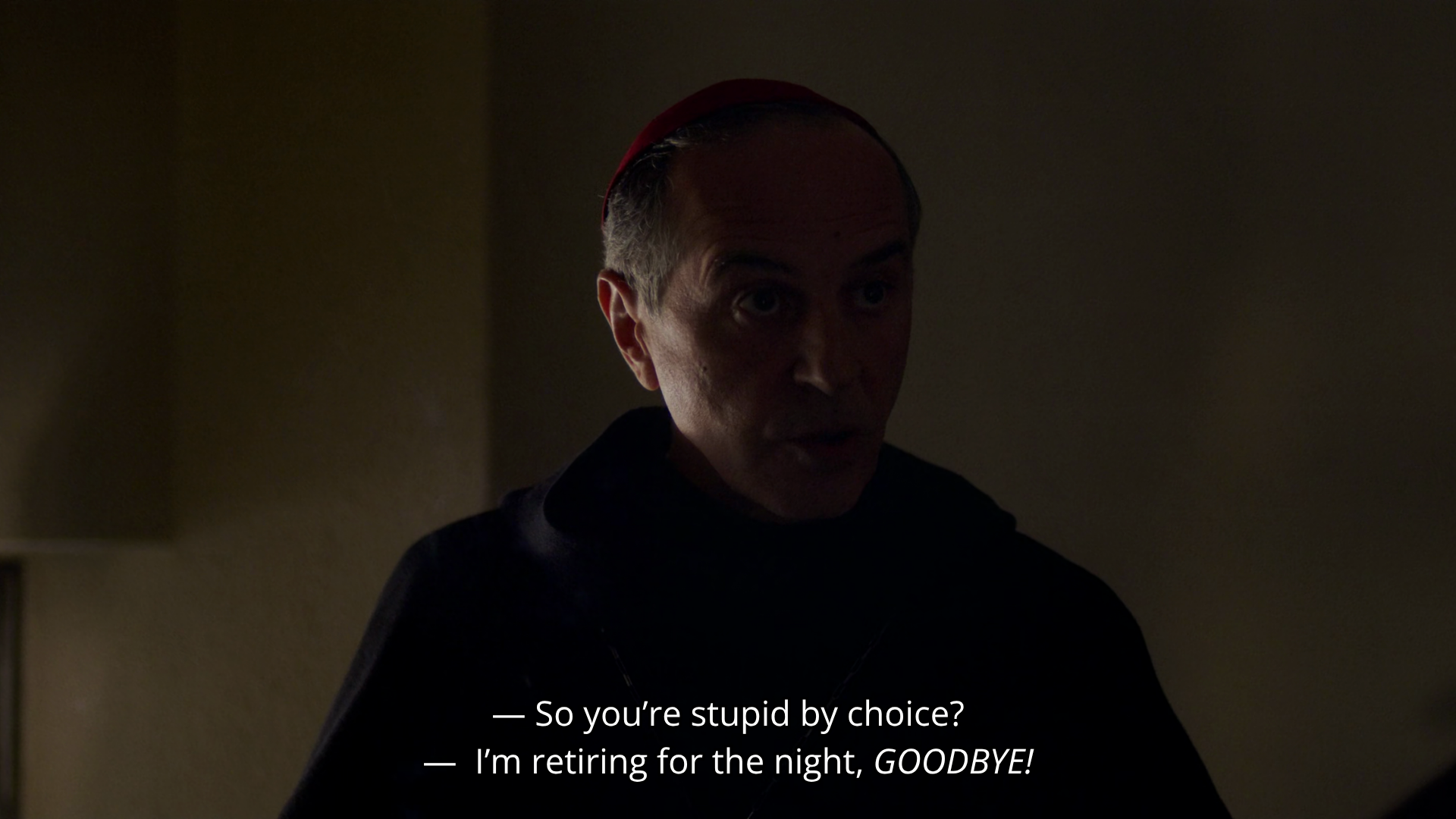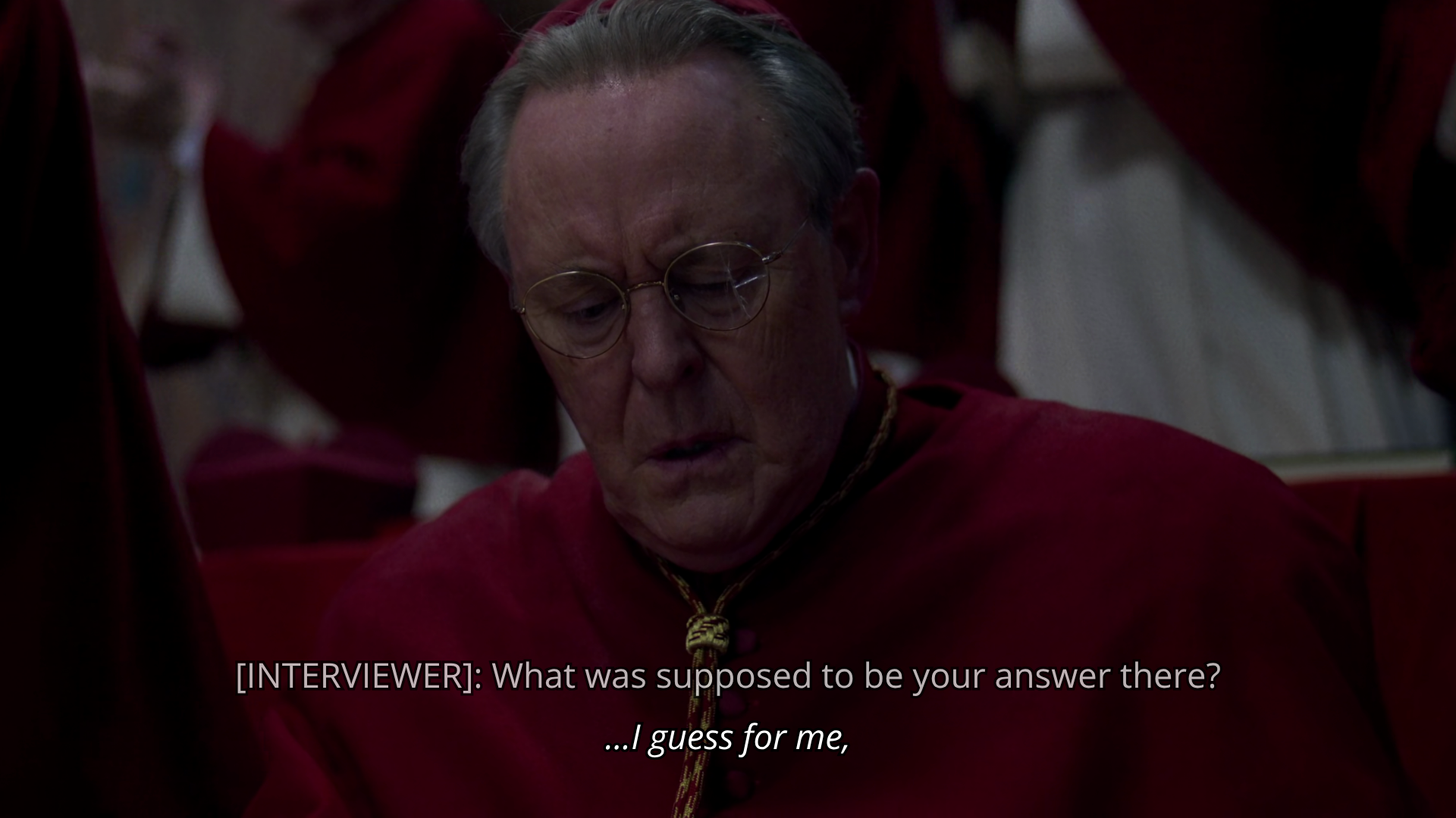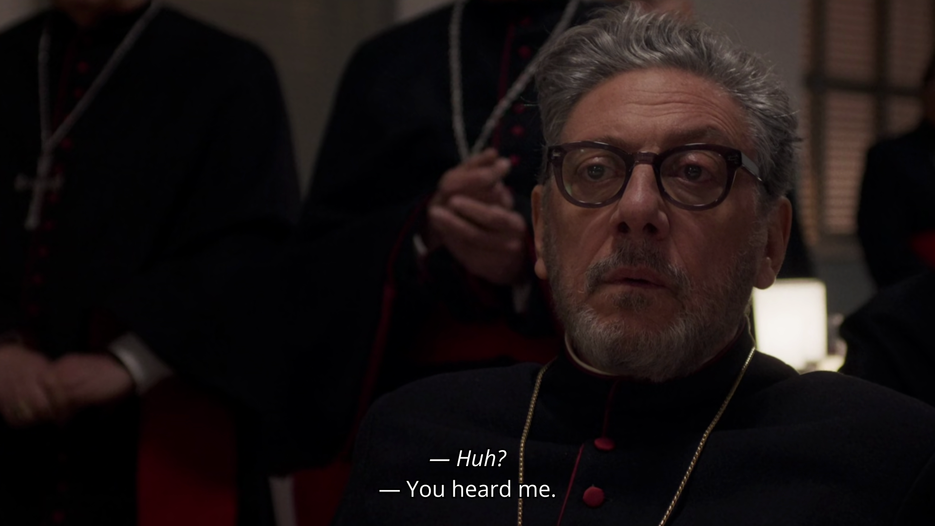 Q: Your Eminence, we'll put it bluntly. Why have you been glaring at Cardinal Bellini?