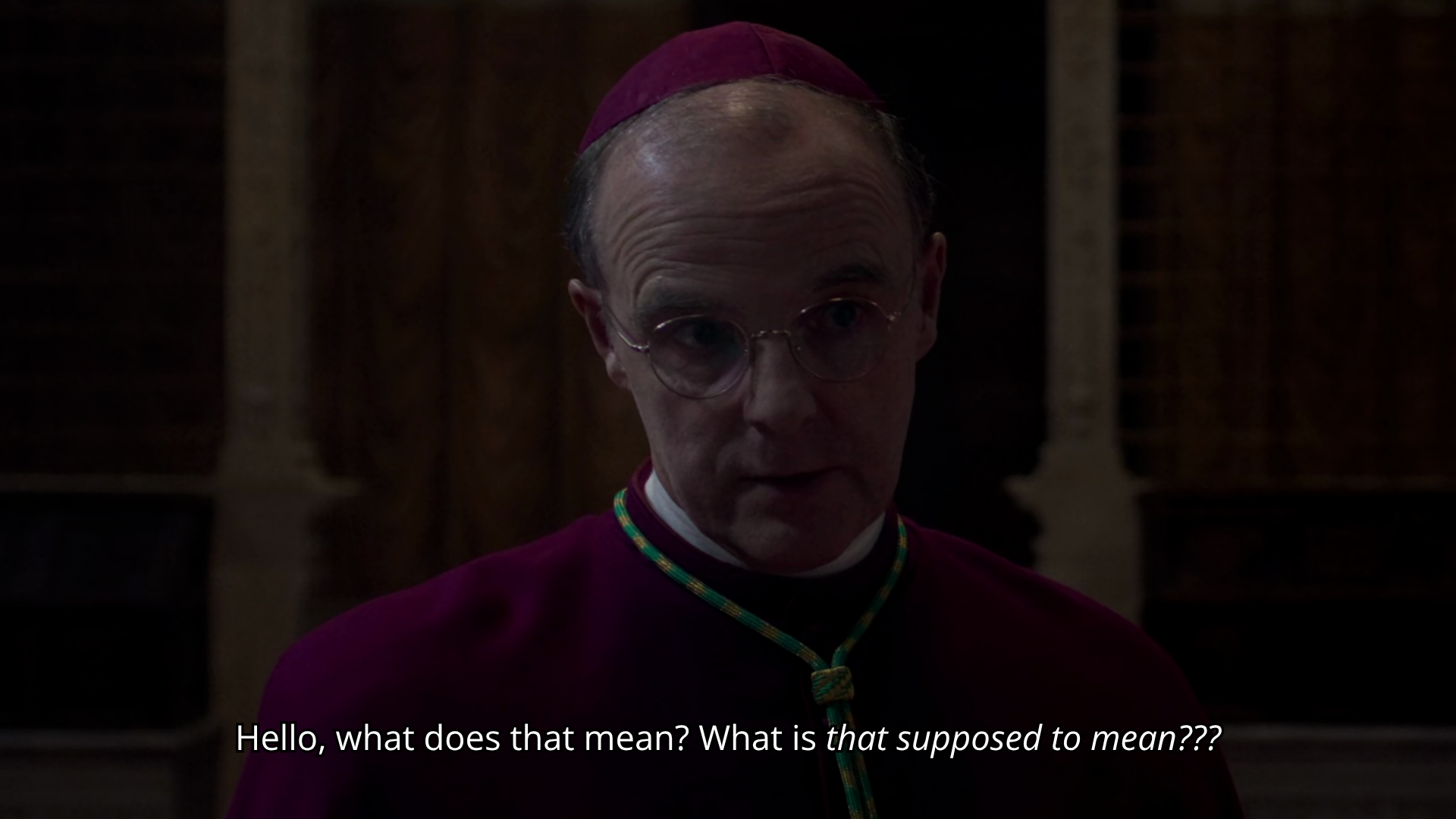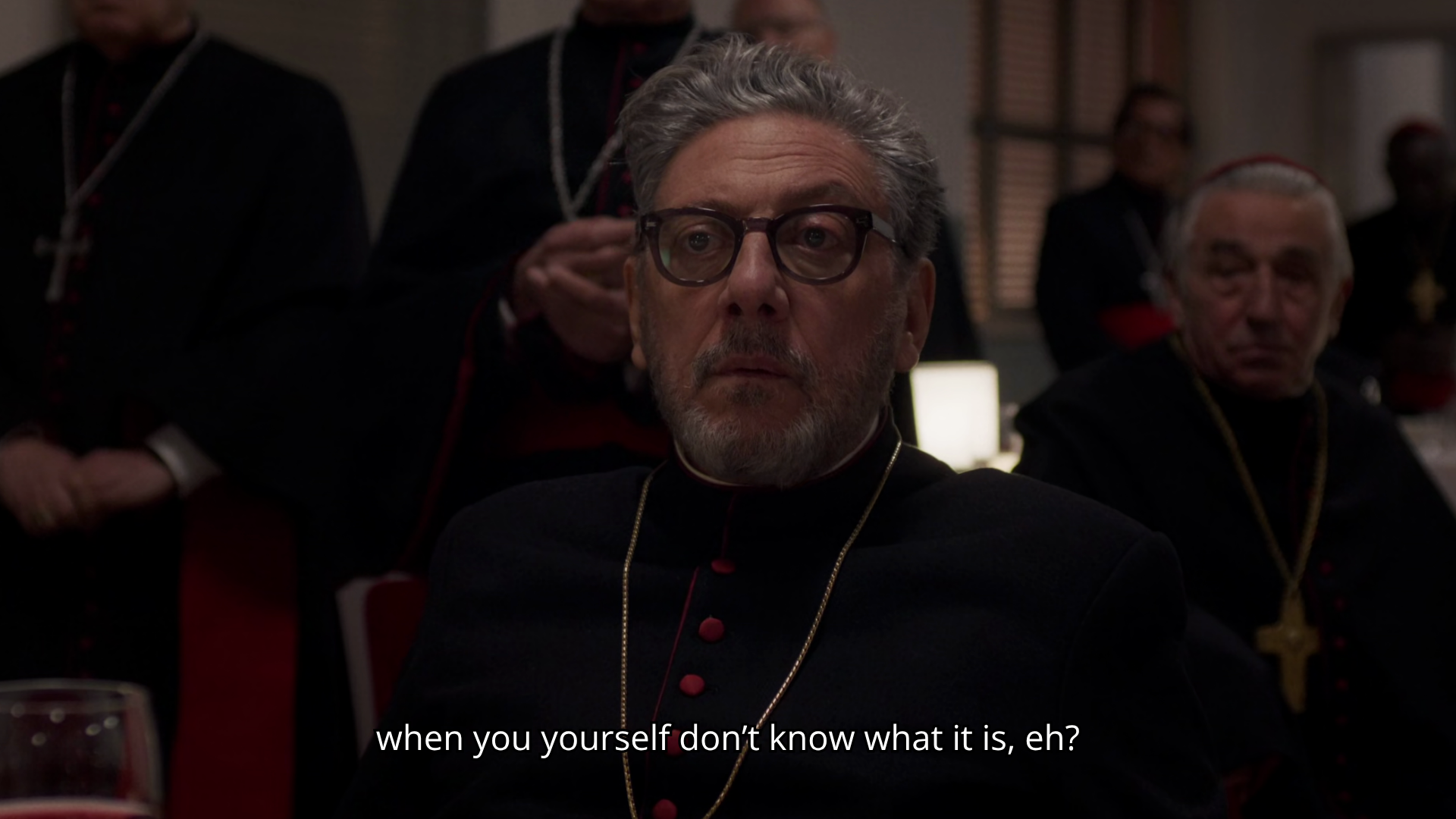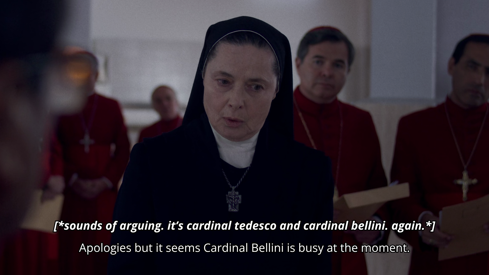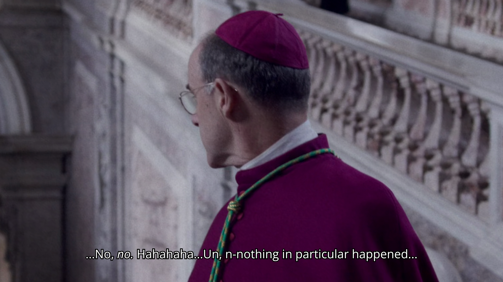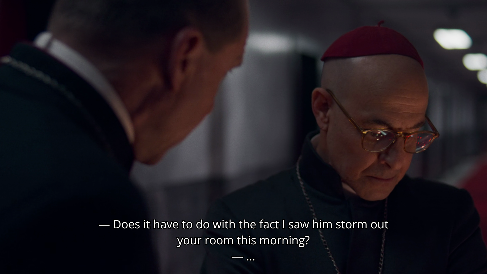 Q: Your Eminence, we'll put it bluntly. Why have you been glaring at Cardinal Bellini?