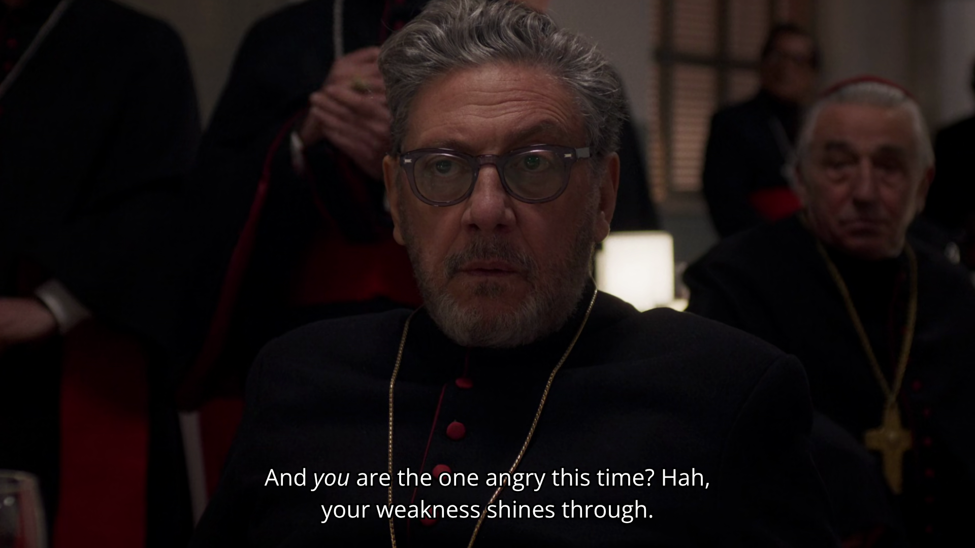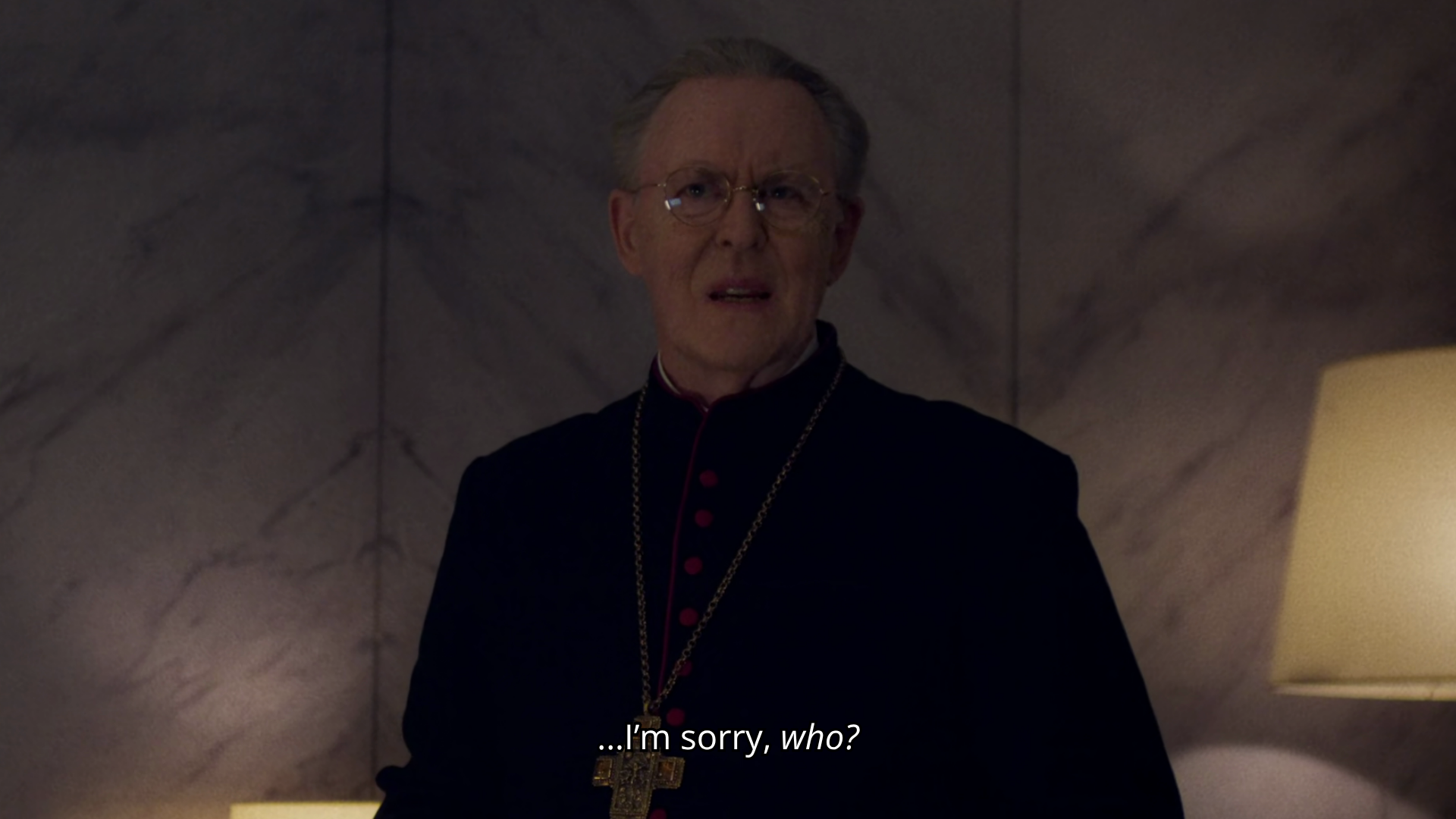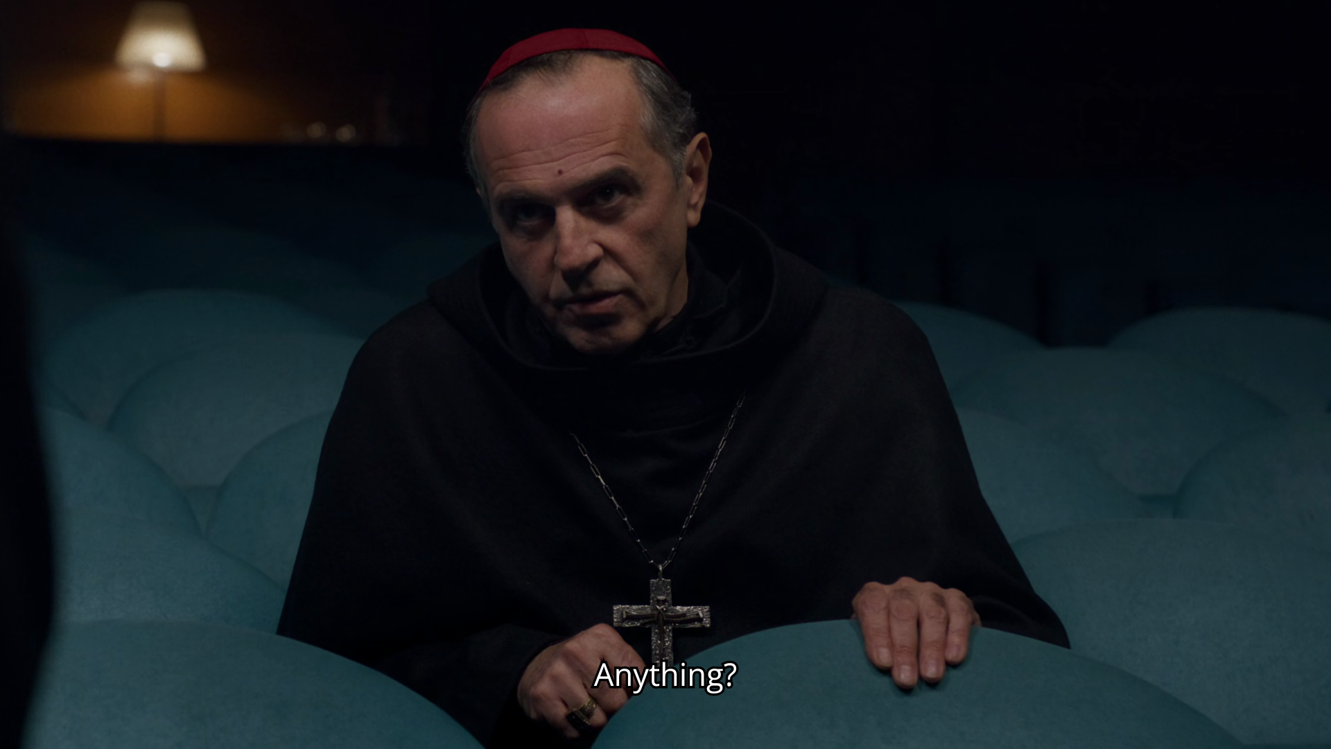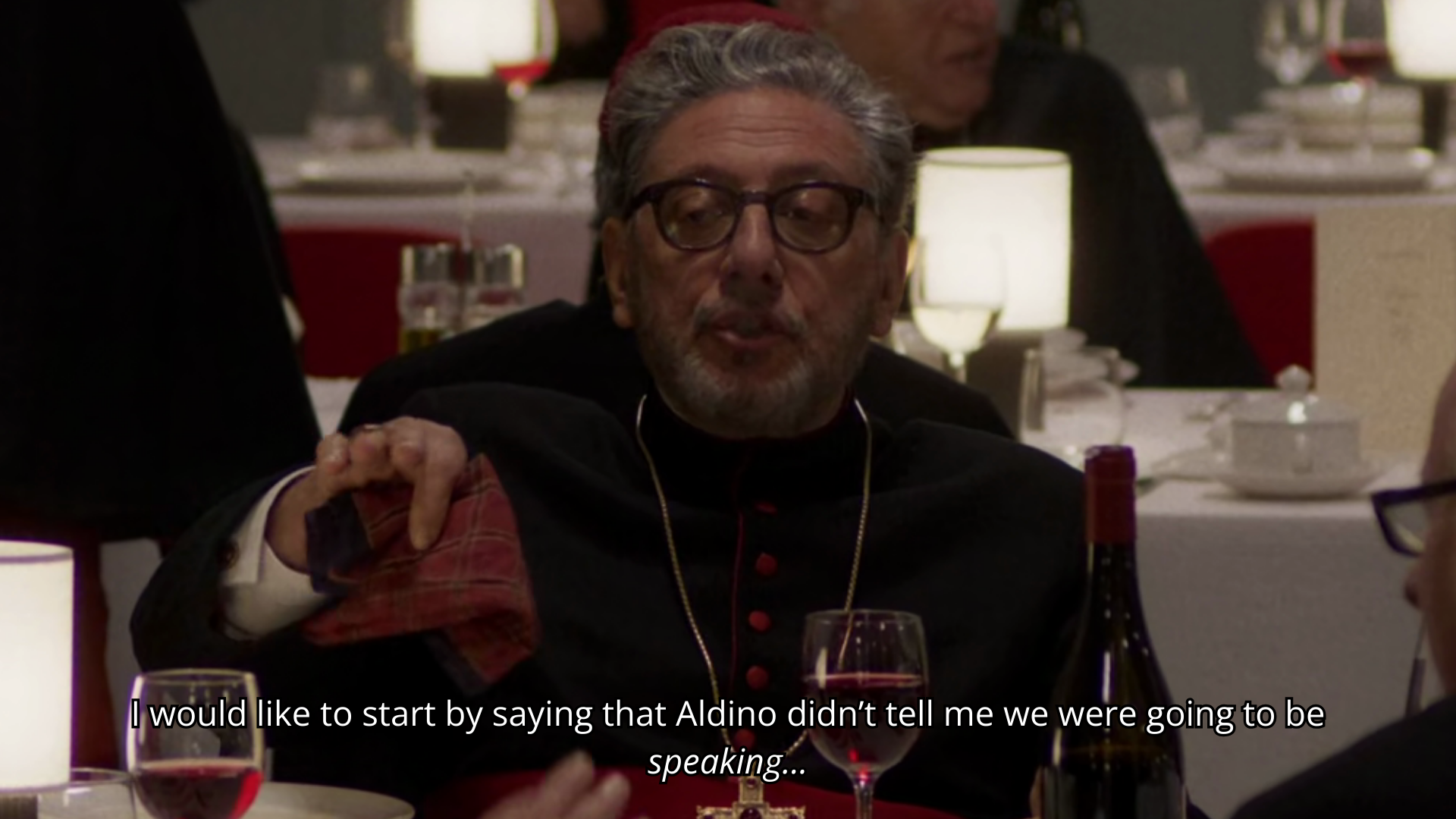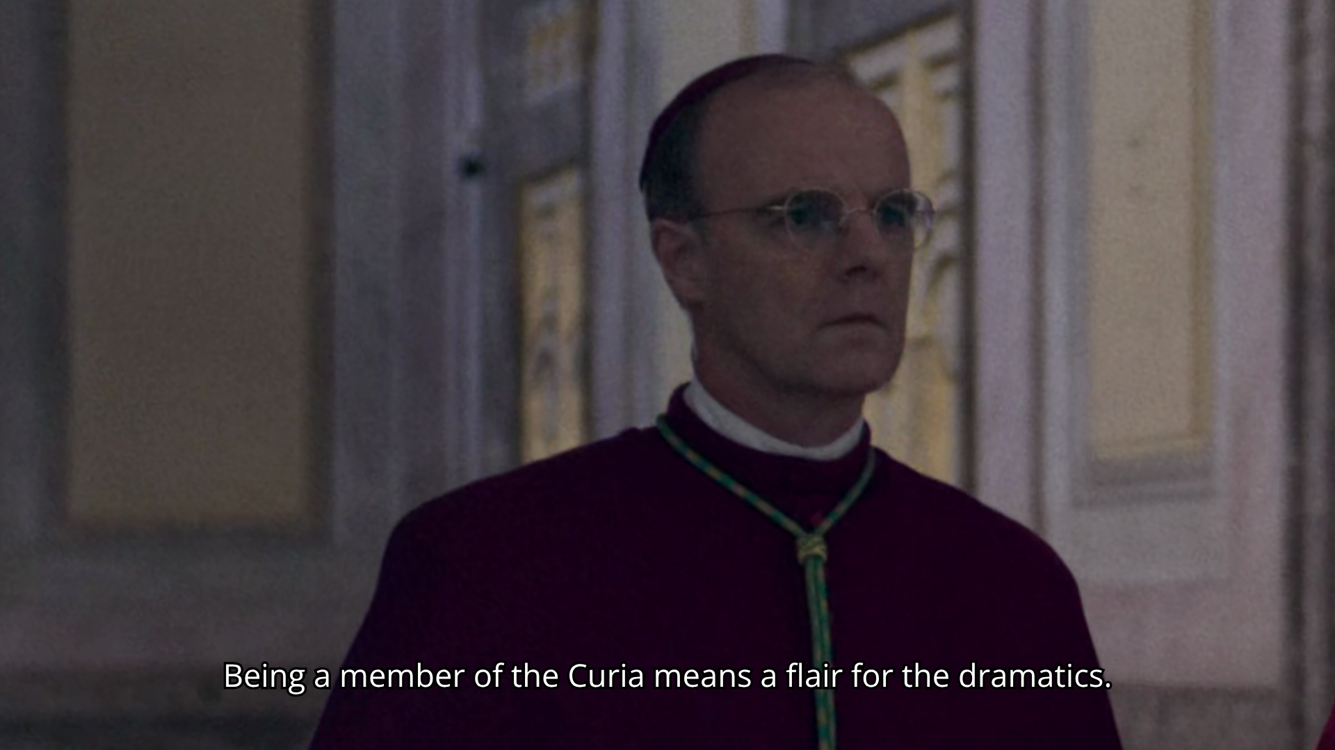 Q: Your Eminence, we'll put it bluntly. Why have you been glaring at Cardinal Bellini?
