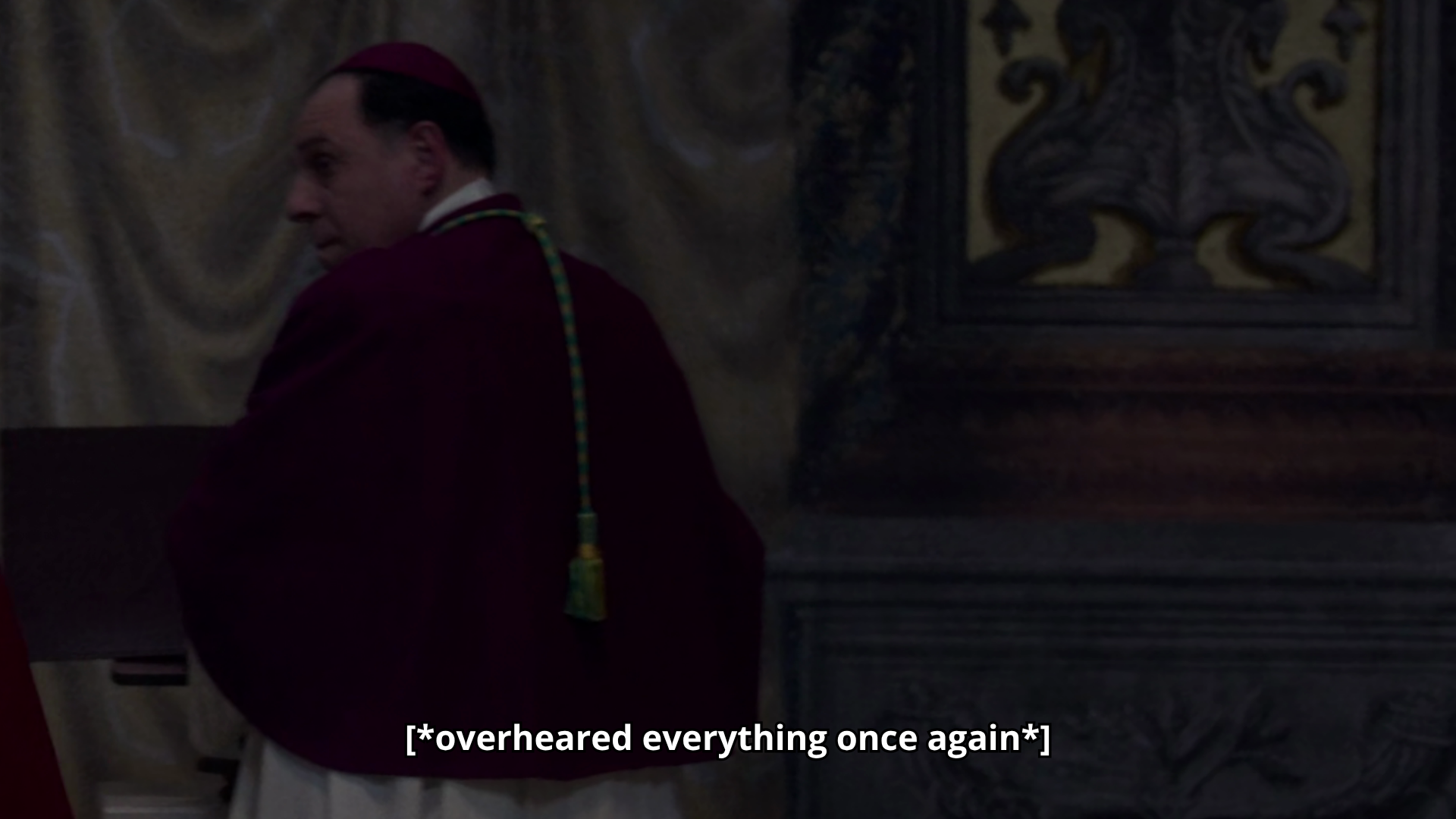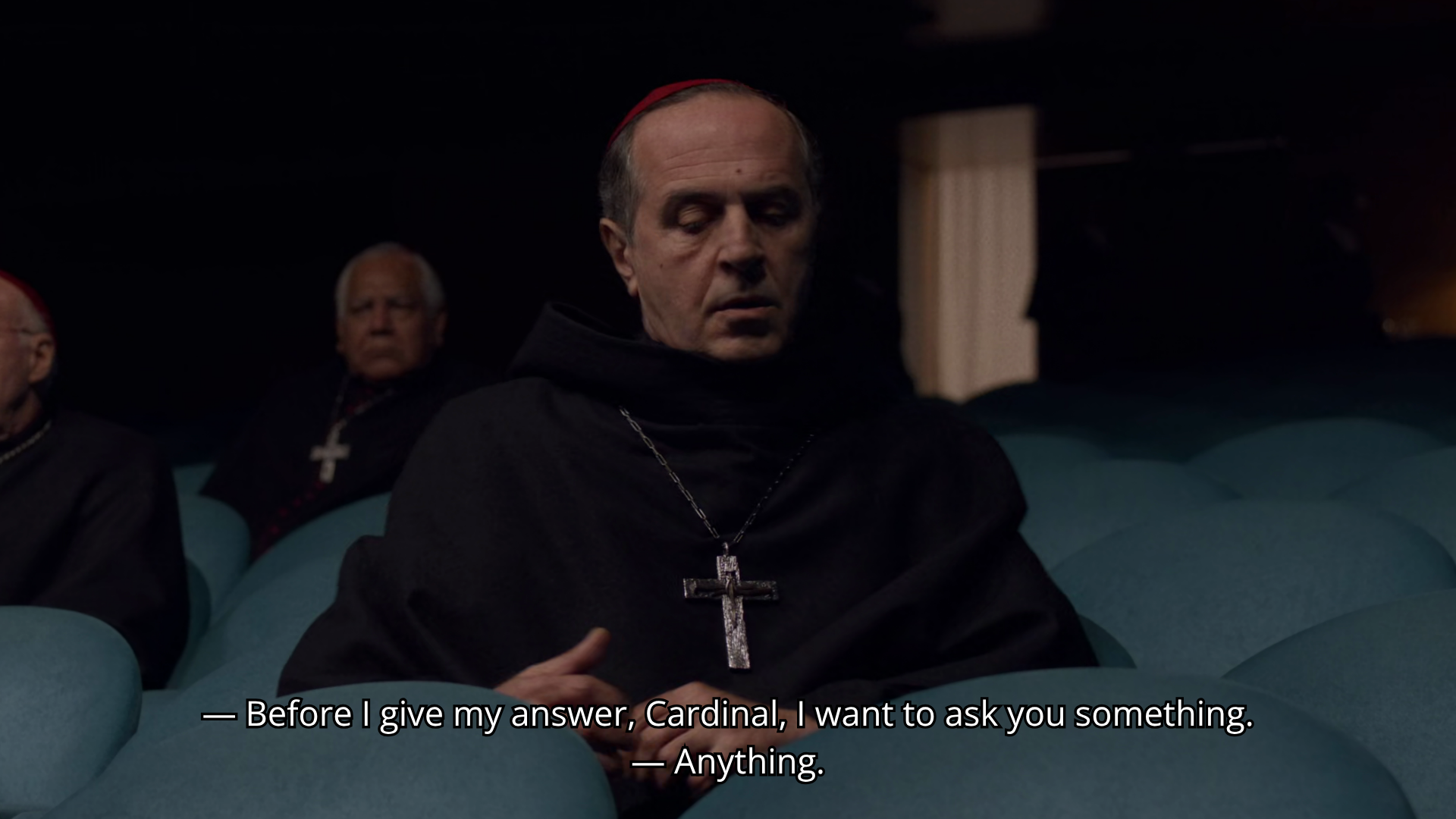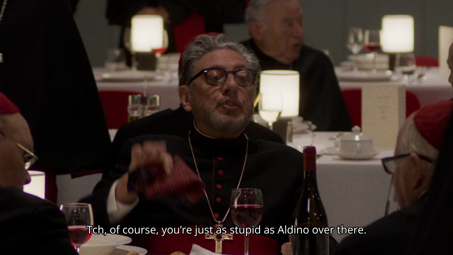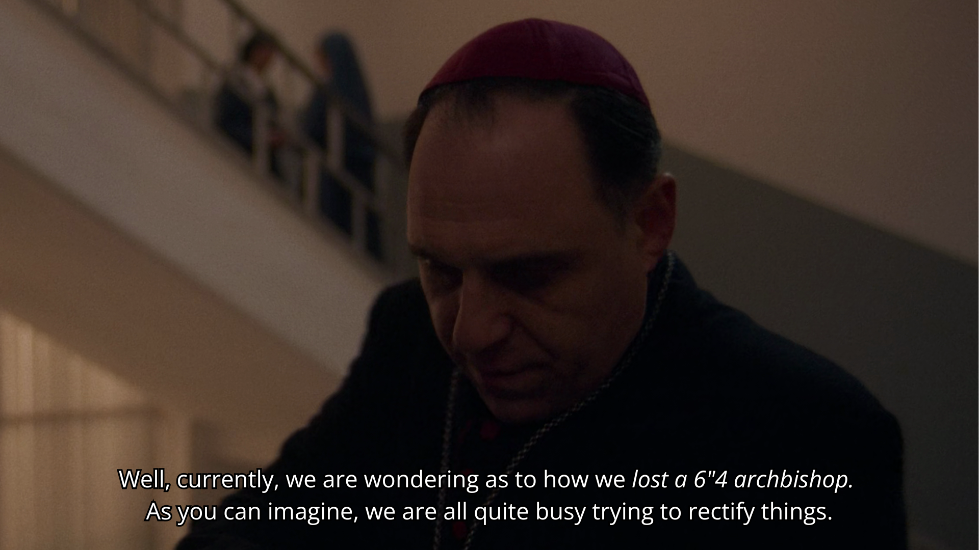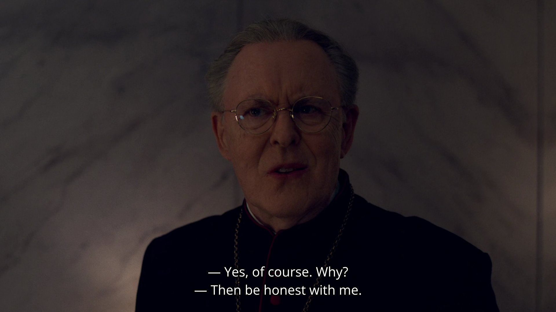 Q: Your Eminence, we'll put it bluntly. Why have you been glaring at Cardinal Bellini?