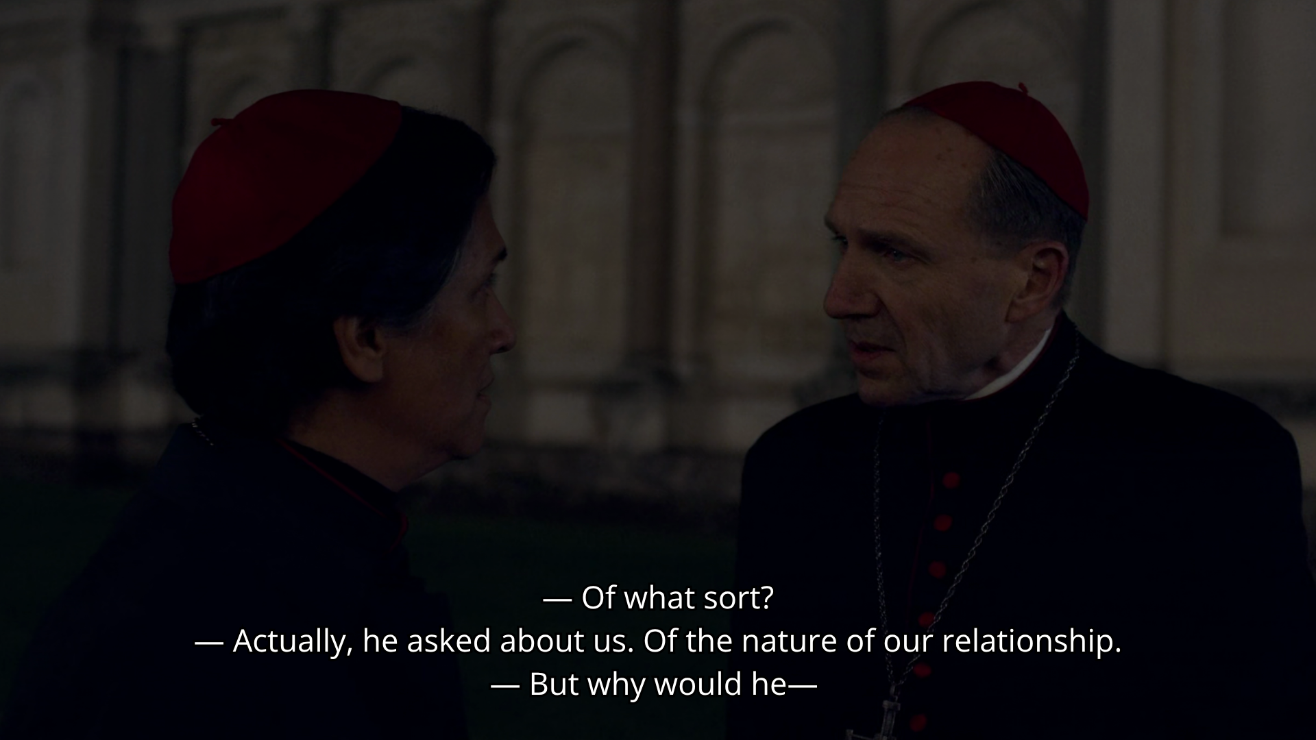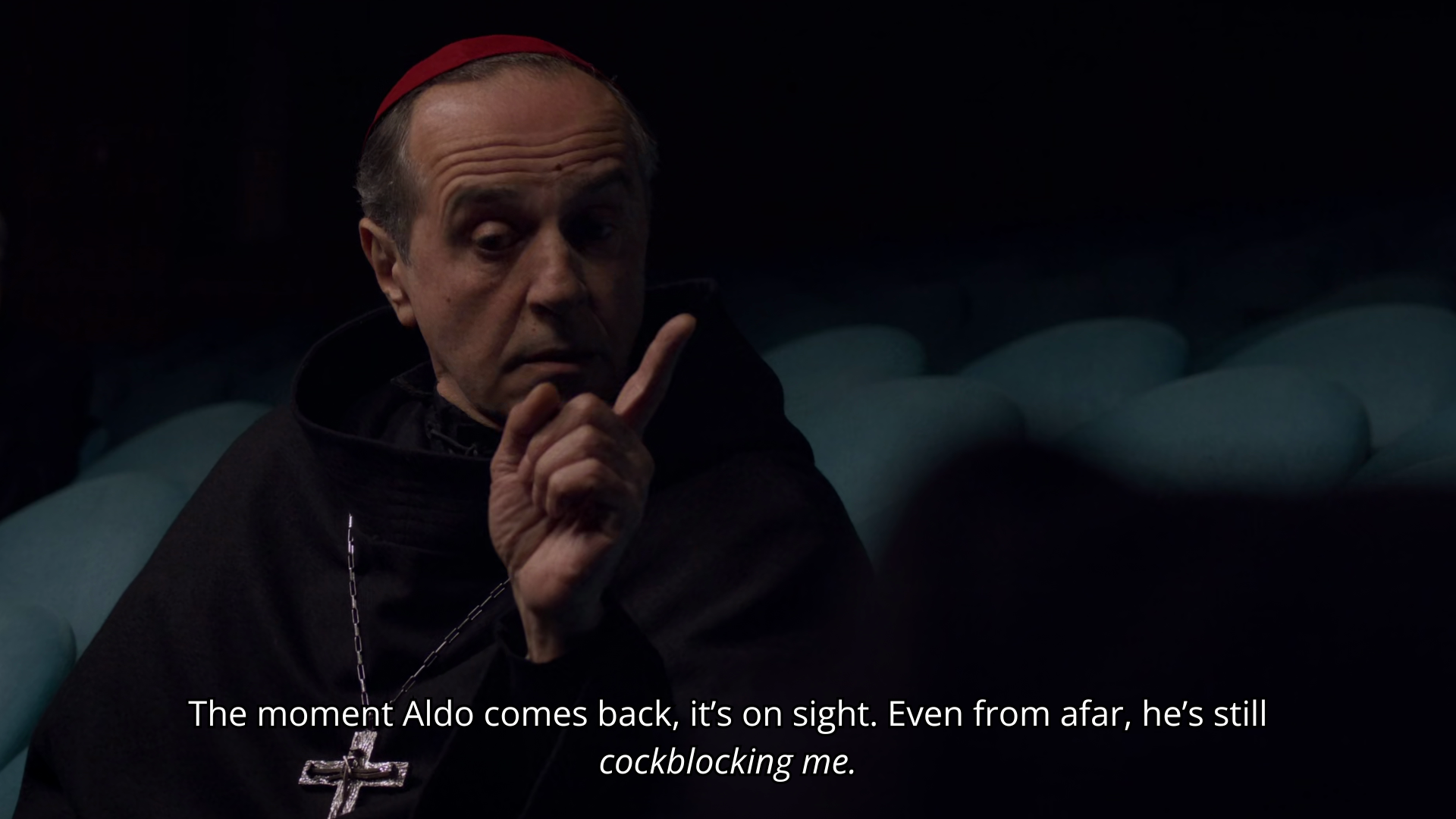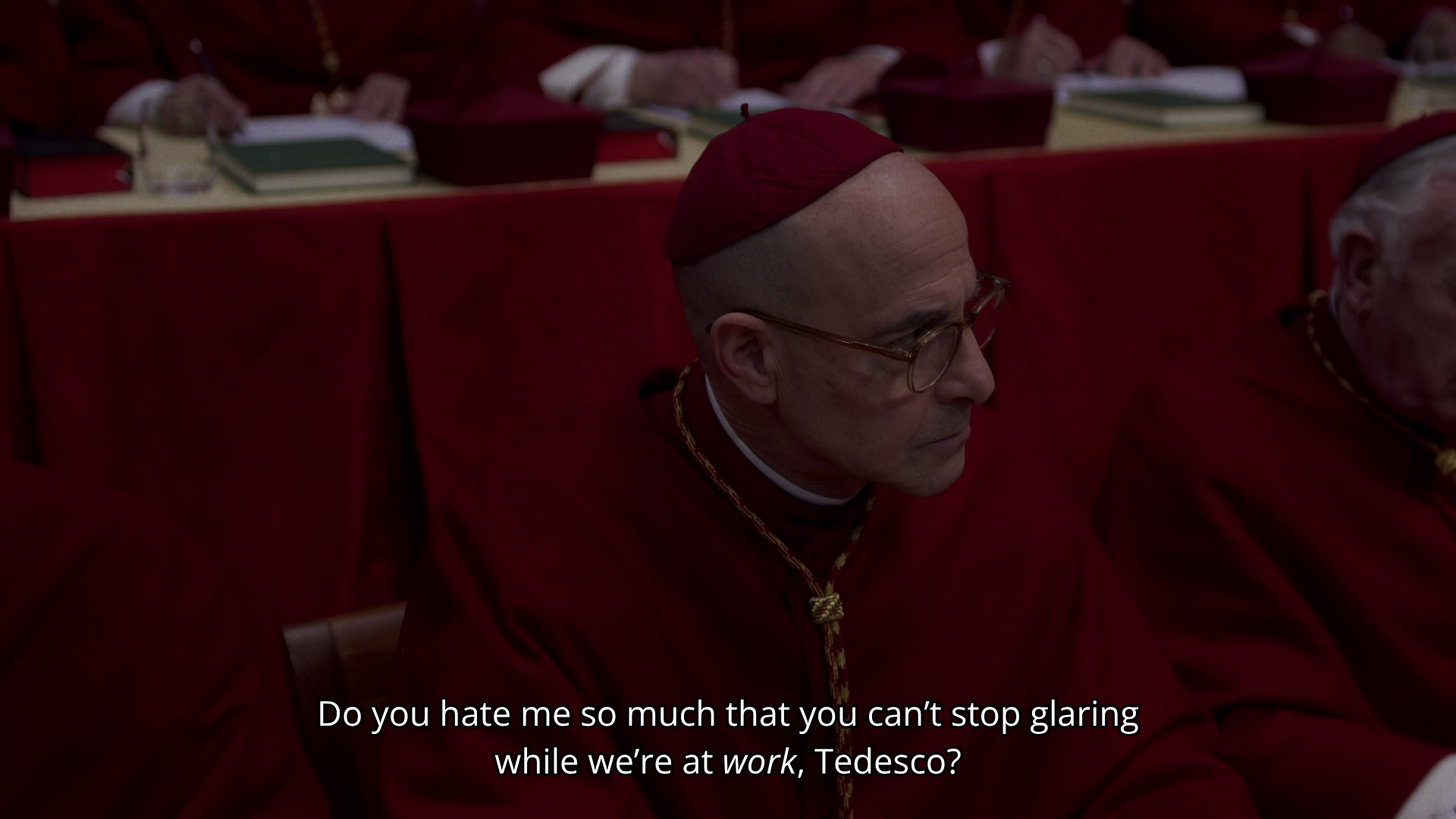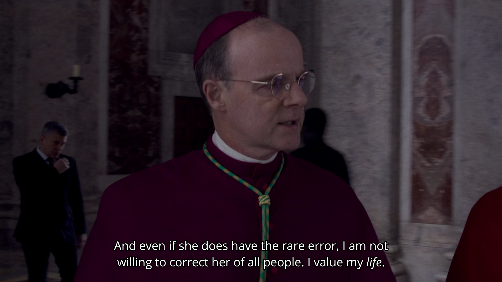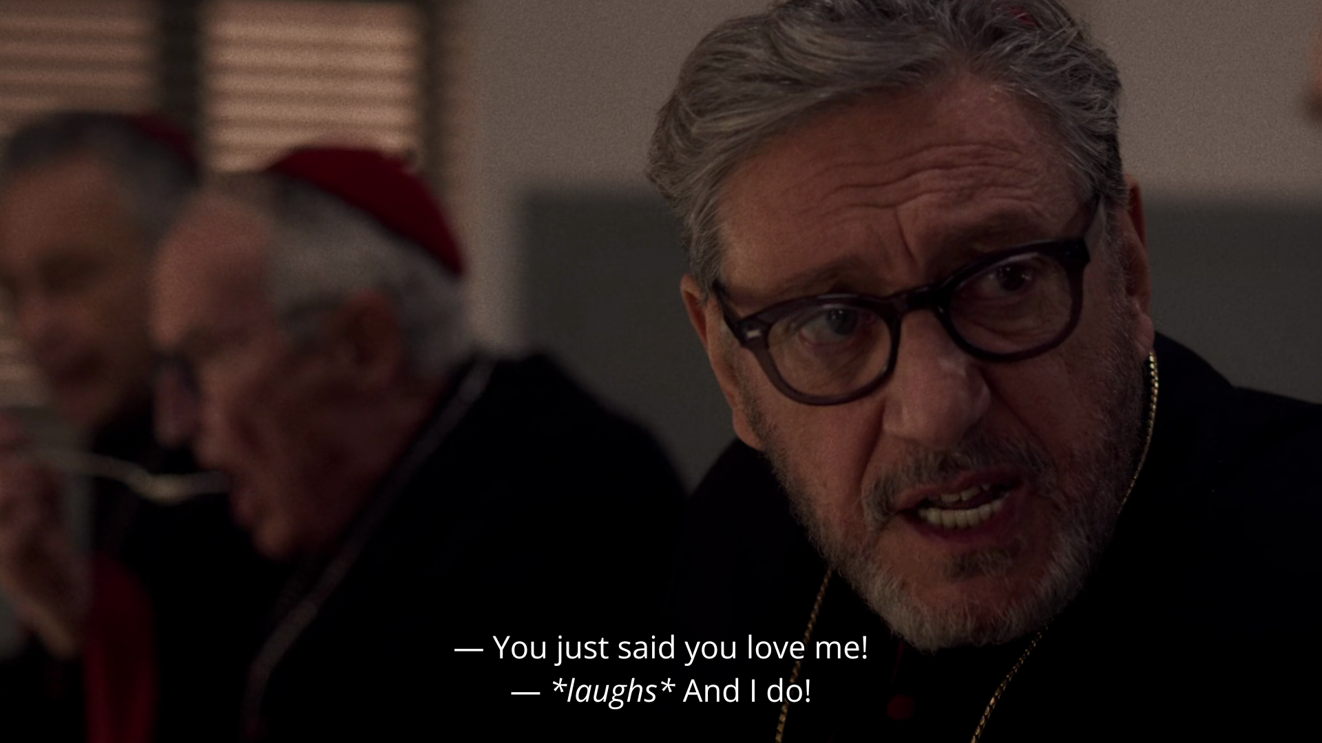 Q: Your Eminence, we'll put it bluntly. Why have you been glaring at Cardinal Bellini?