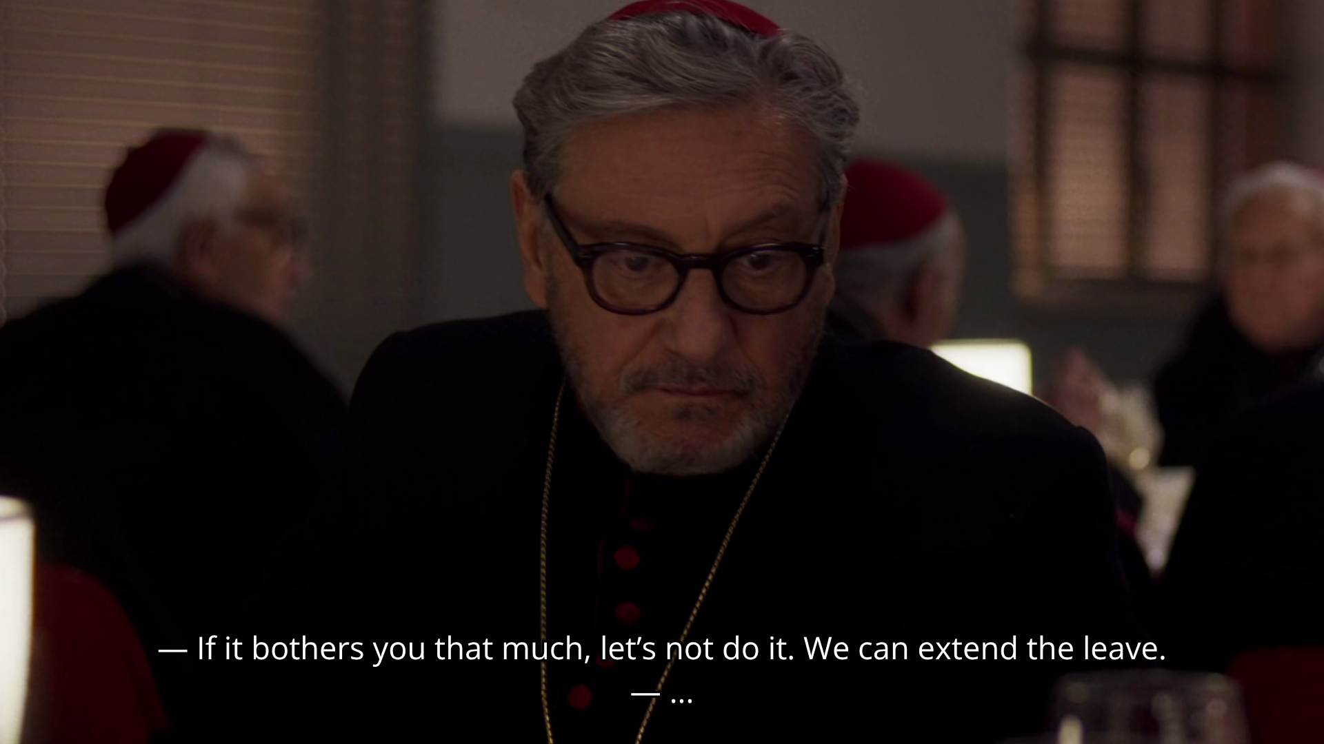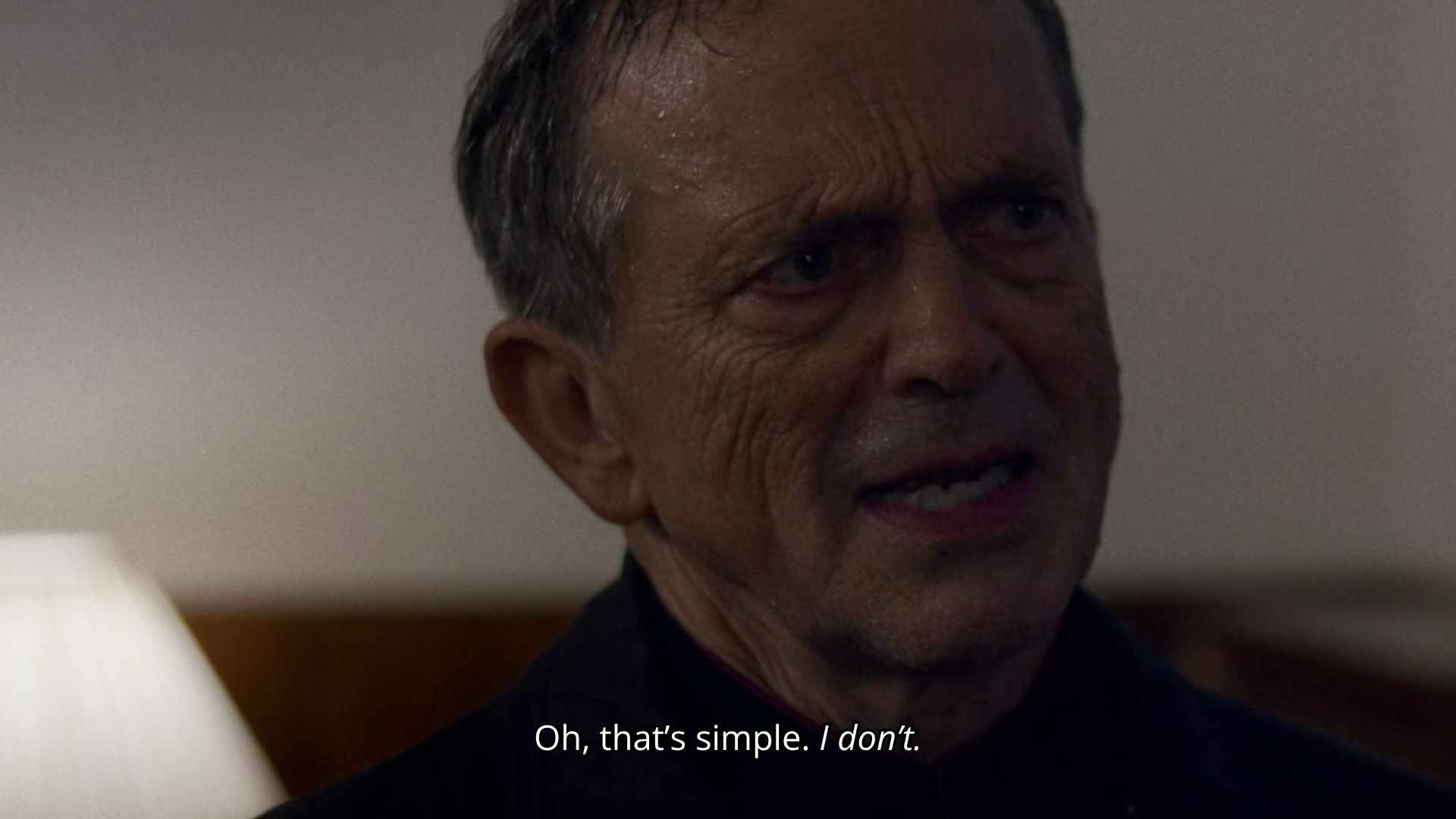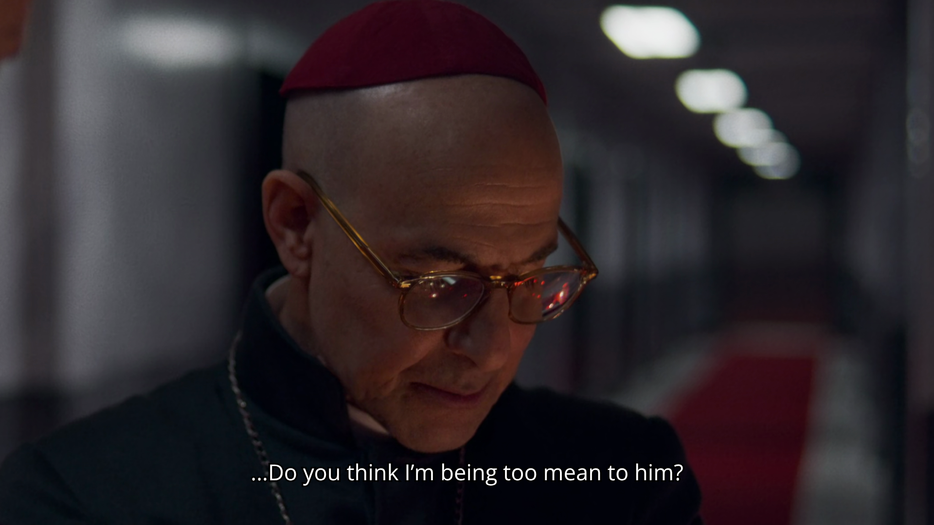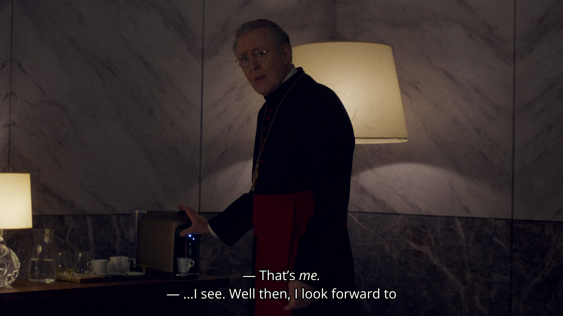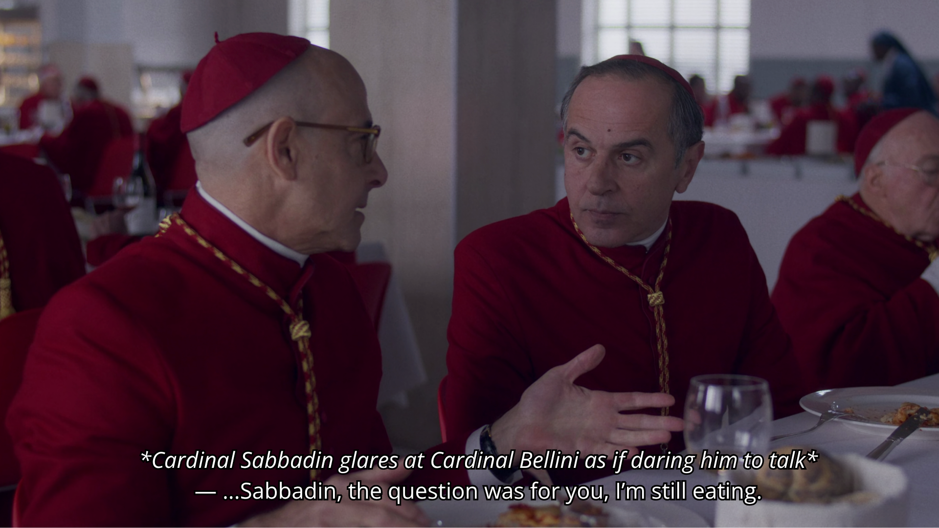 Q: Your Eminence, we'll put it bluntly. Why have you been glaring at Cardinal Bellini?