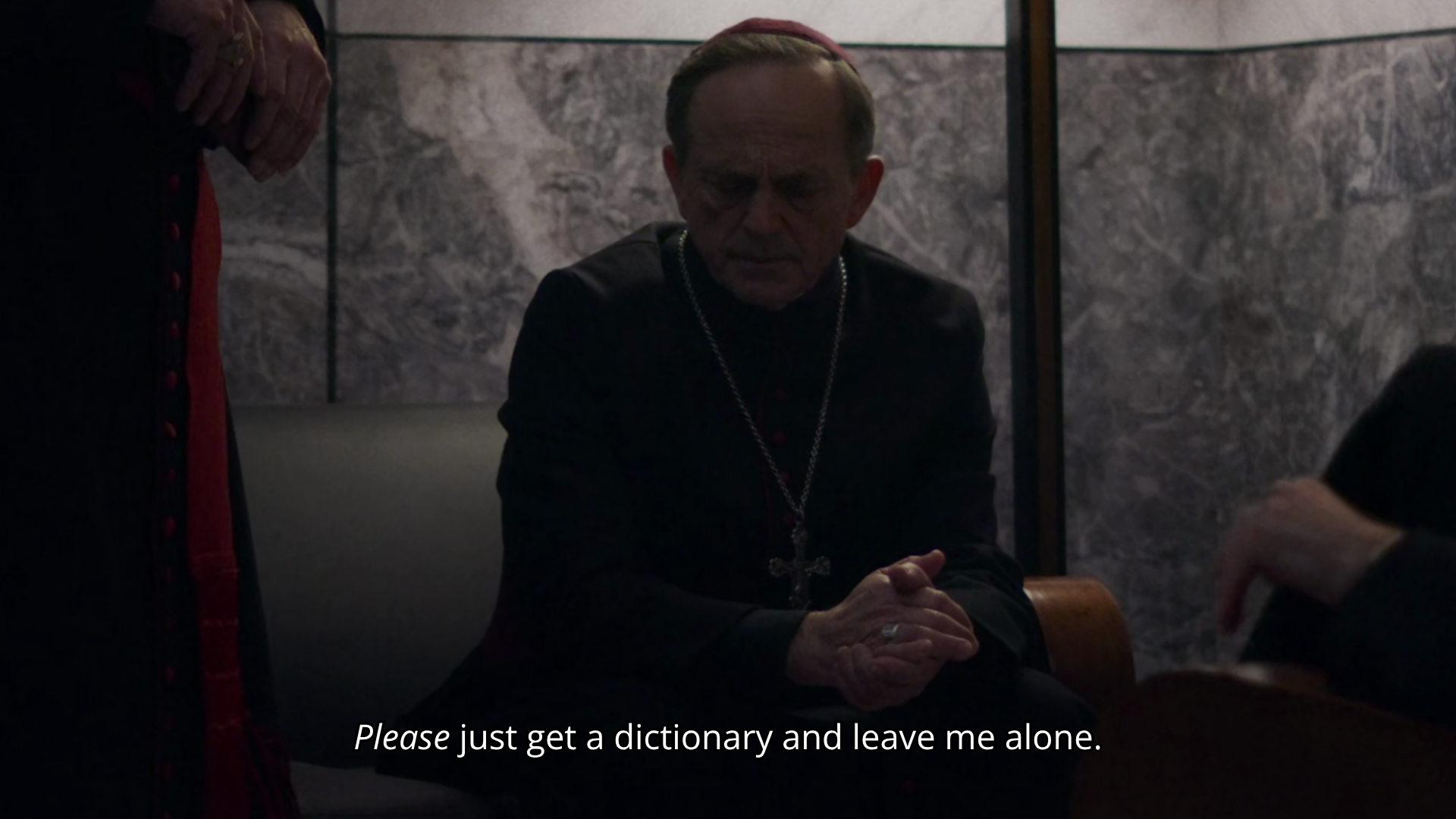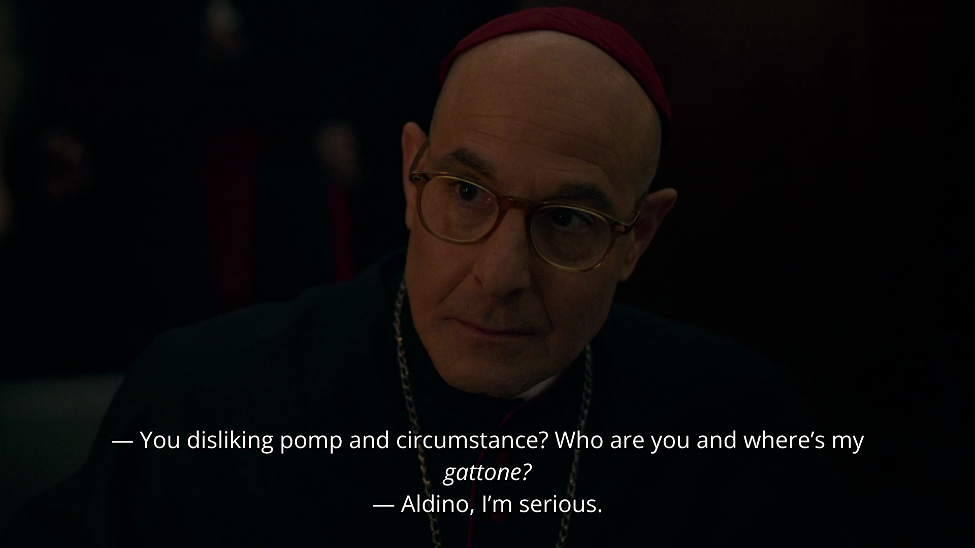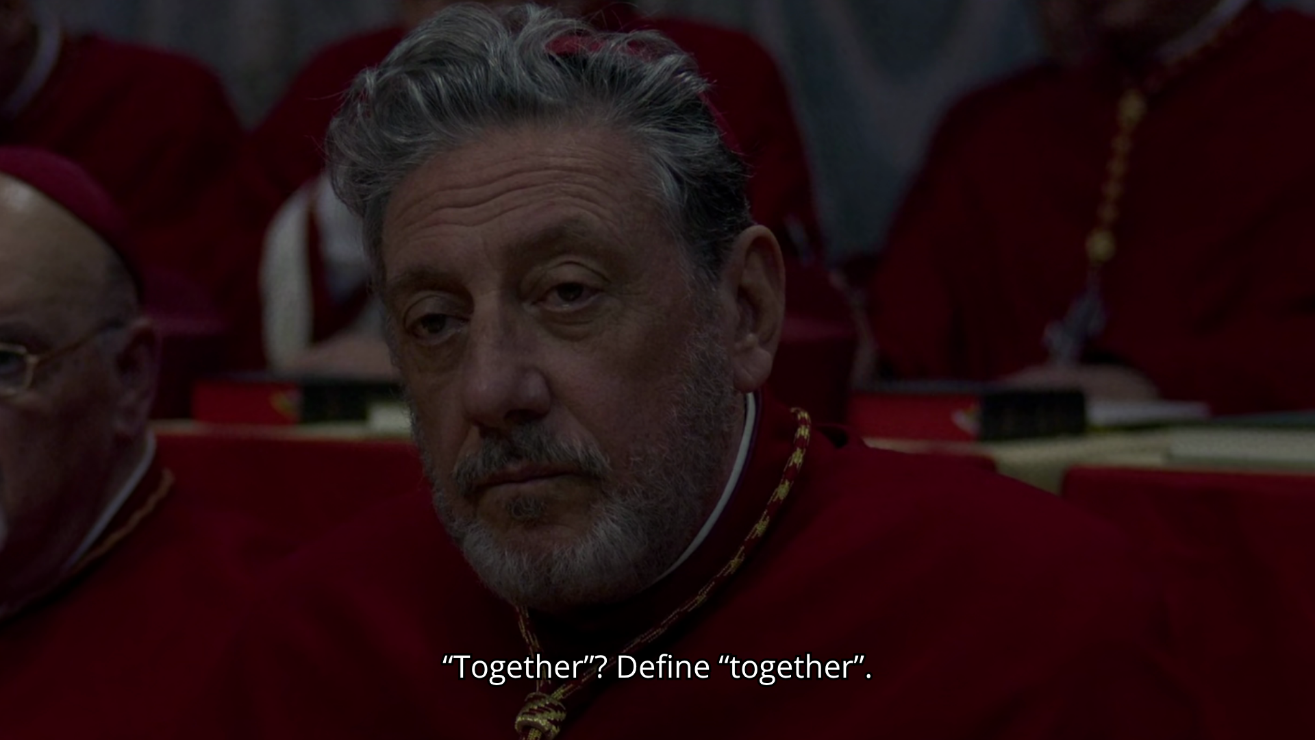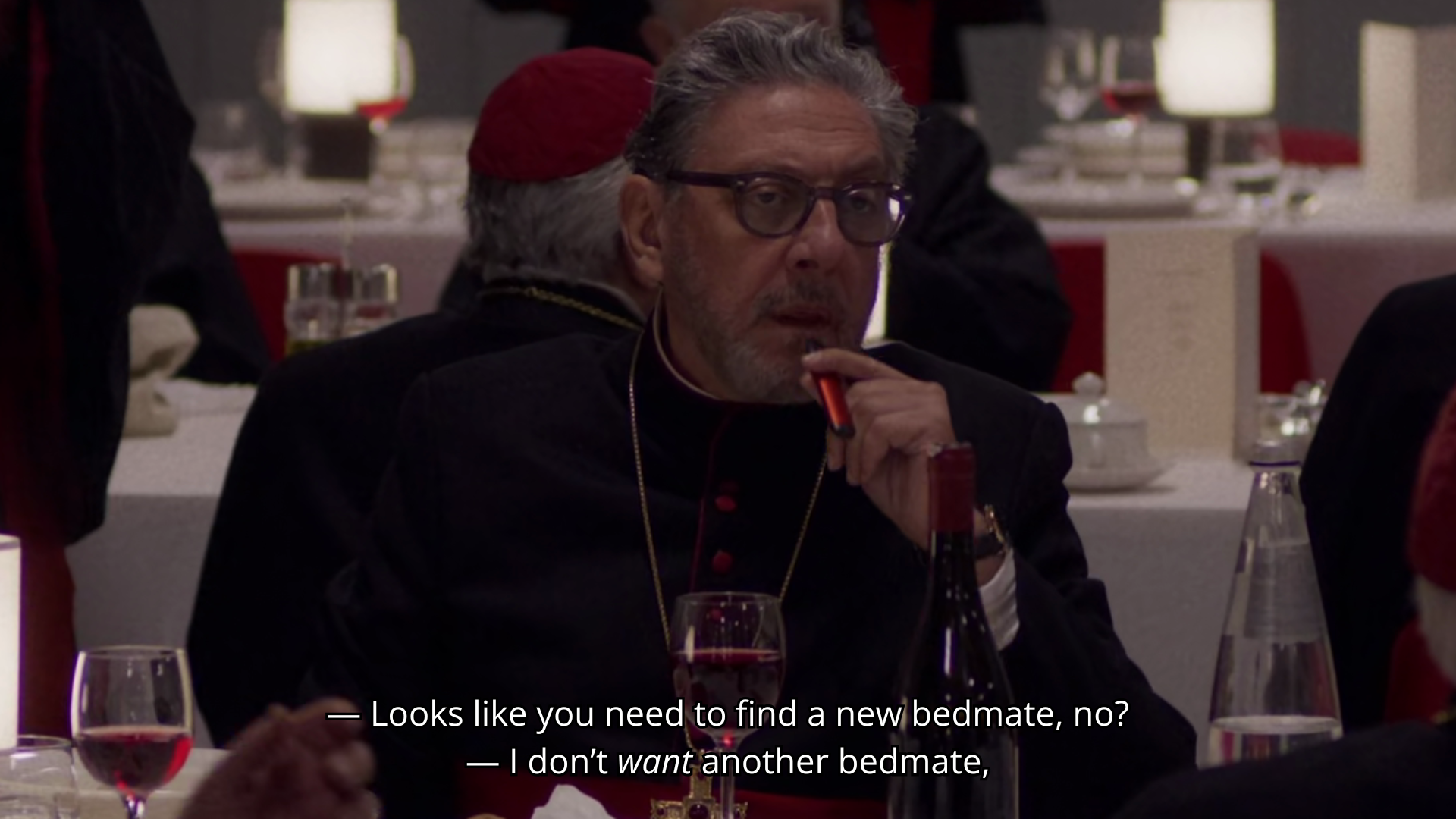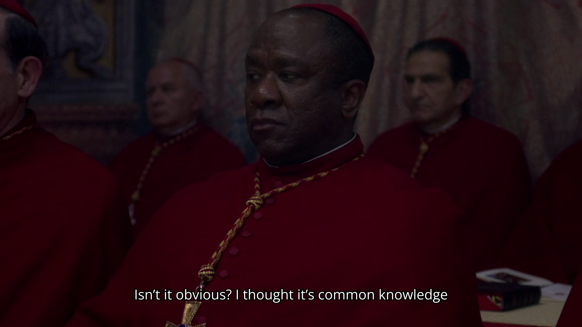 Q: Your Eminence, we'll put it bluntly. Why have you been glaring at Cardinal Bellini?