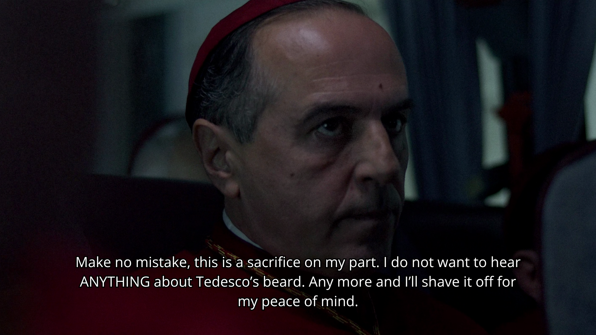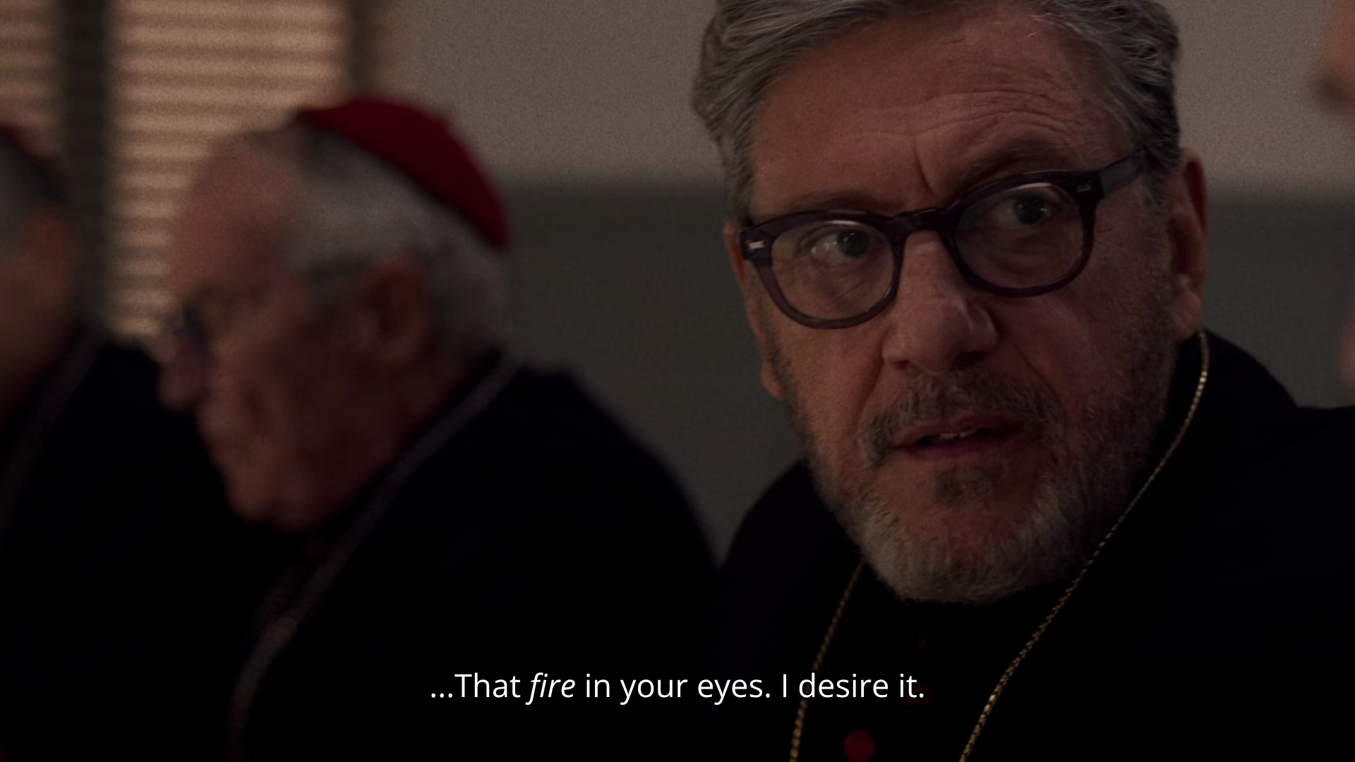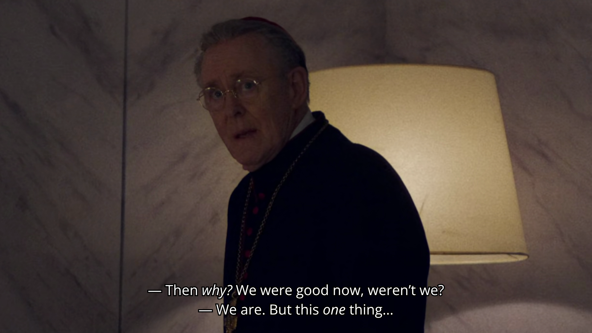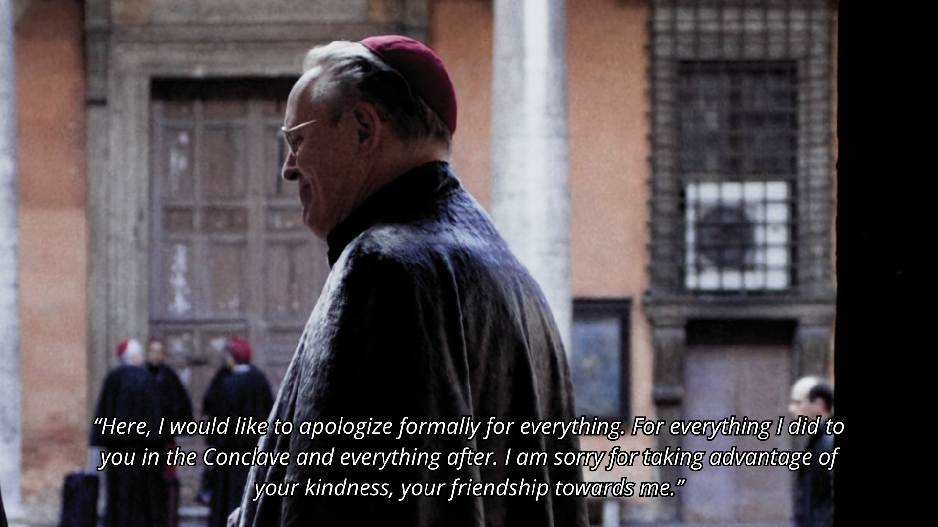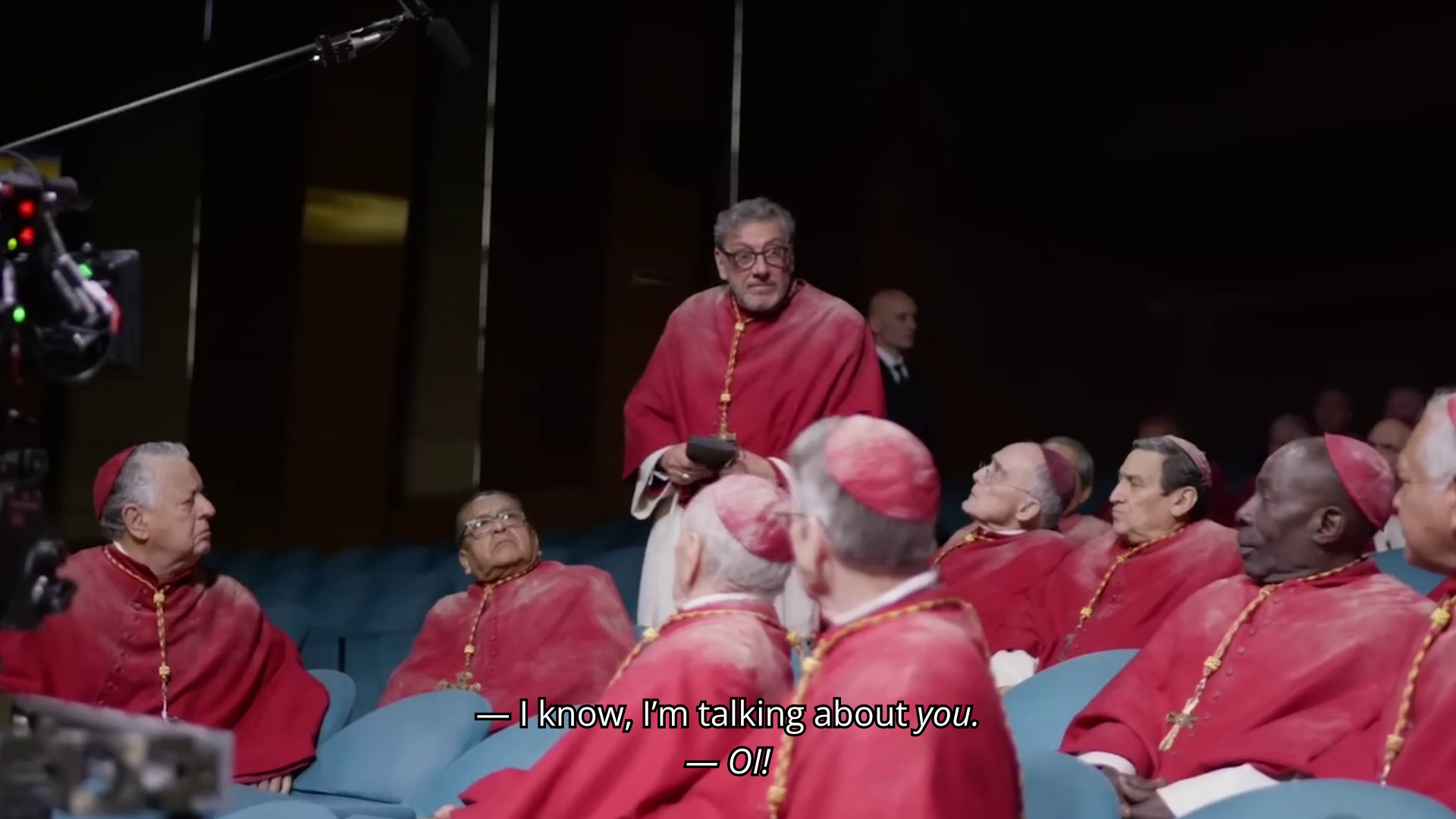 Q: Your Eminence, we'll put it bluntly. Why have you been glaring at Cardinal Bellini?