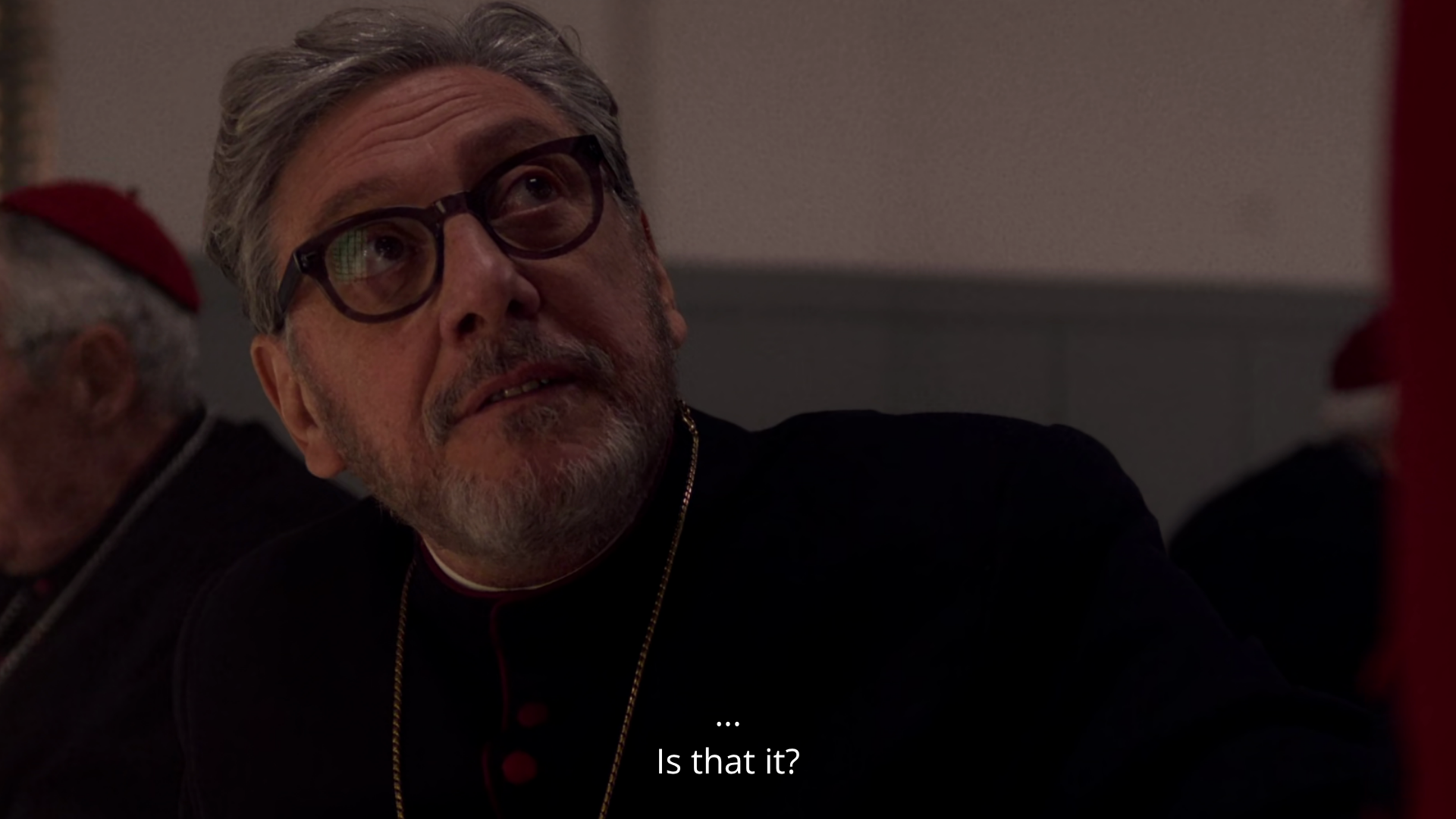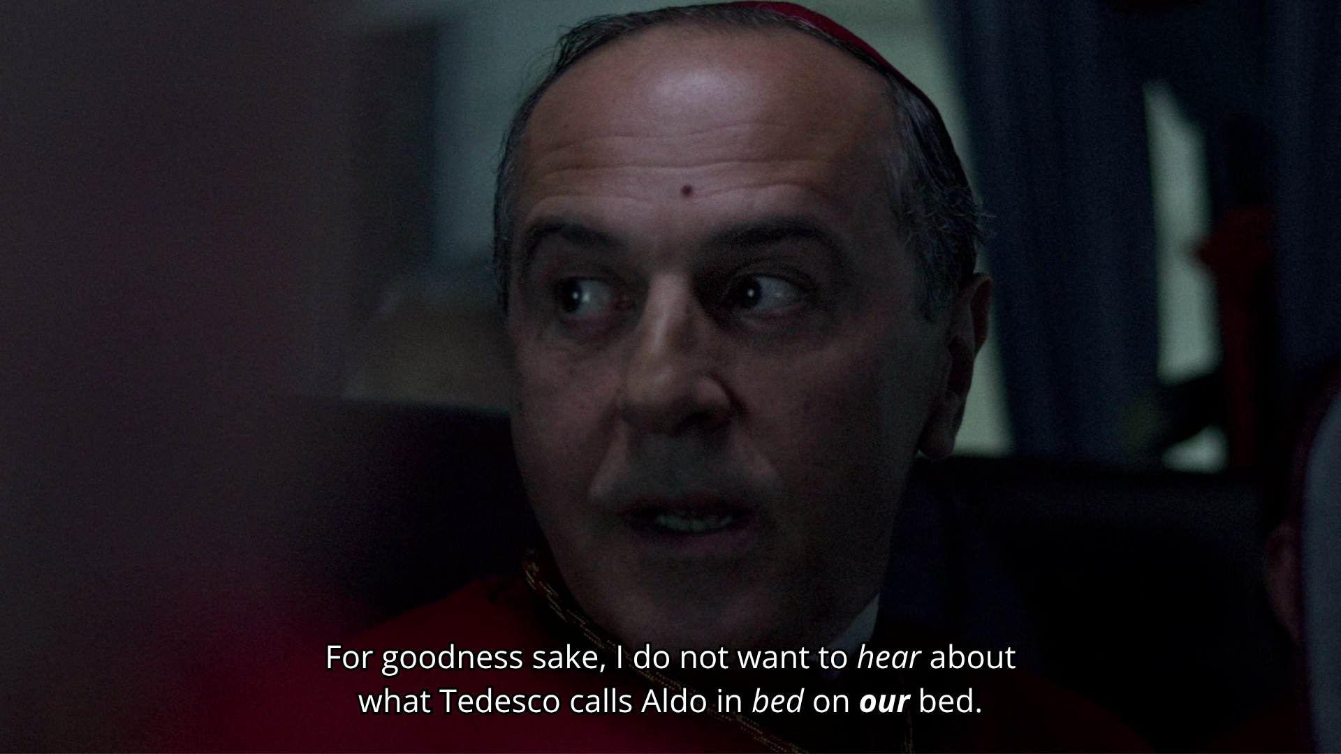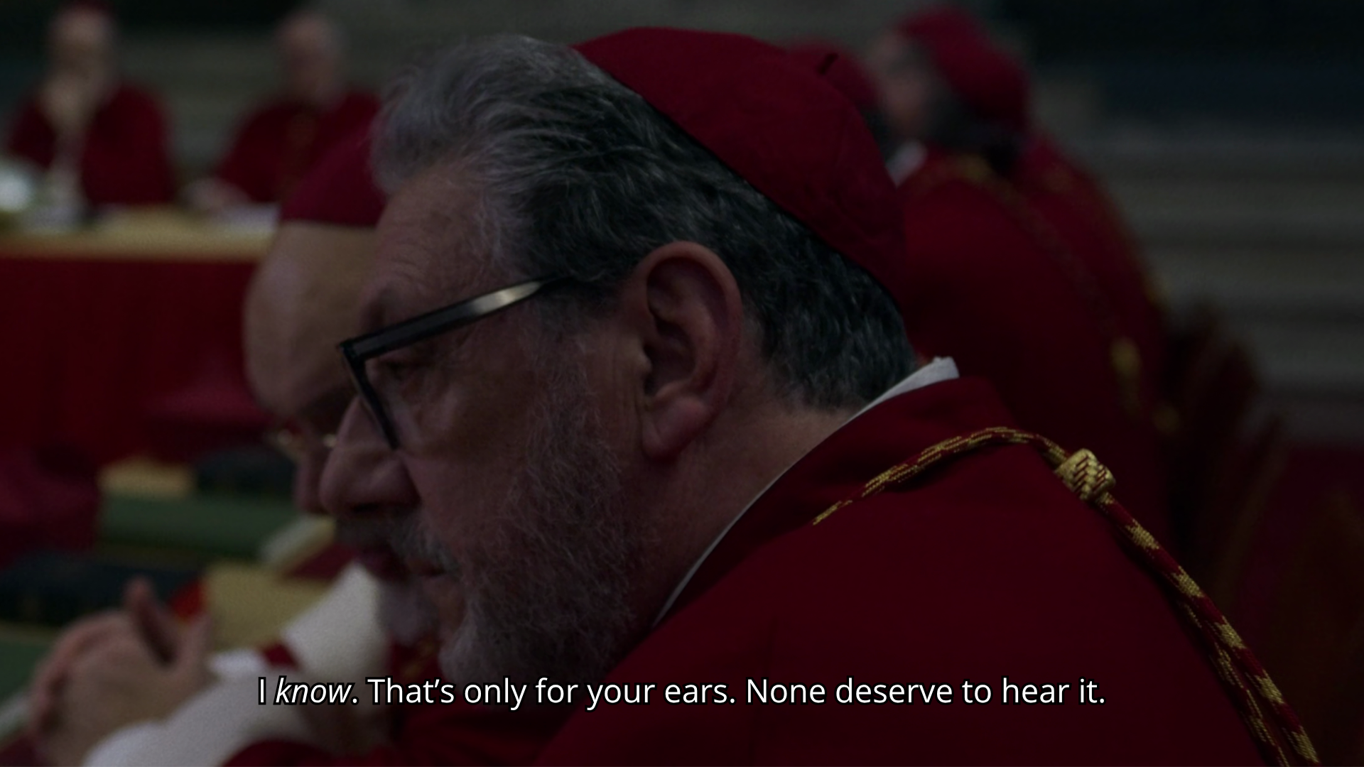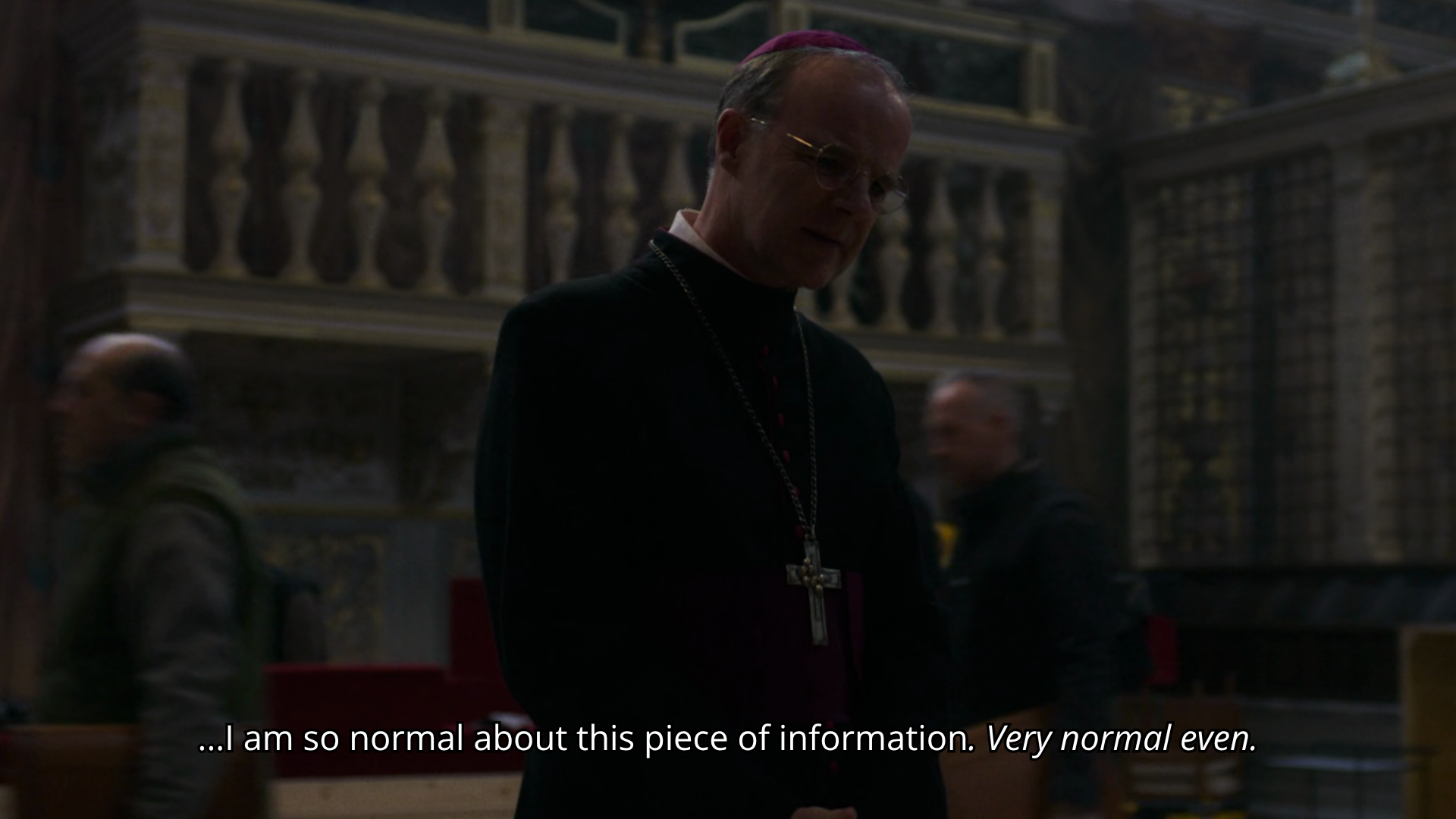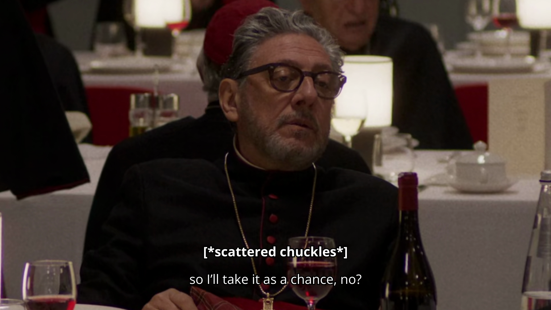 Q: Your Eminence, we'll put it bluntly. Why have you been glaring at Cardinal Bellini?