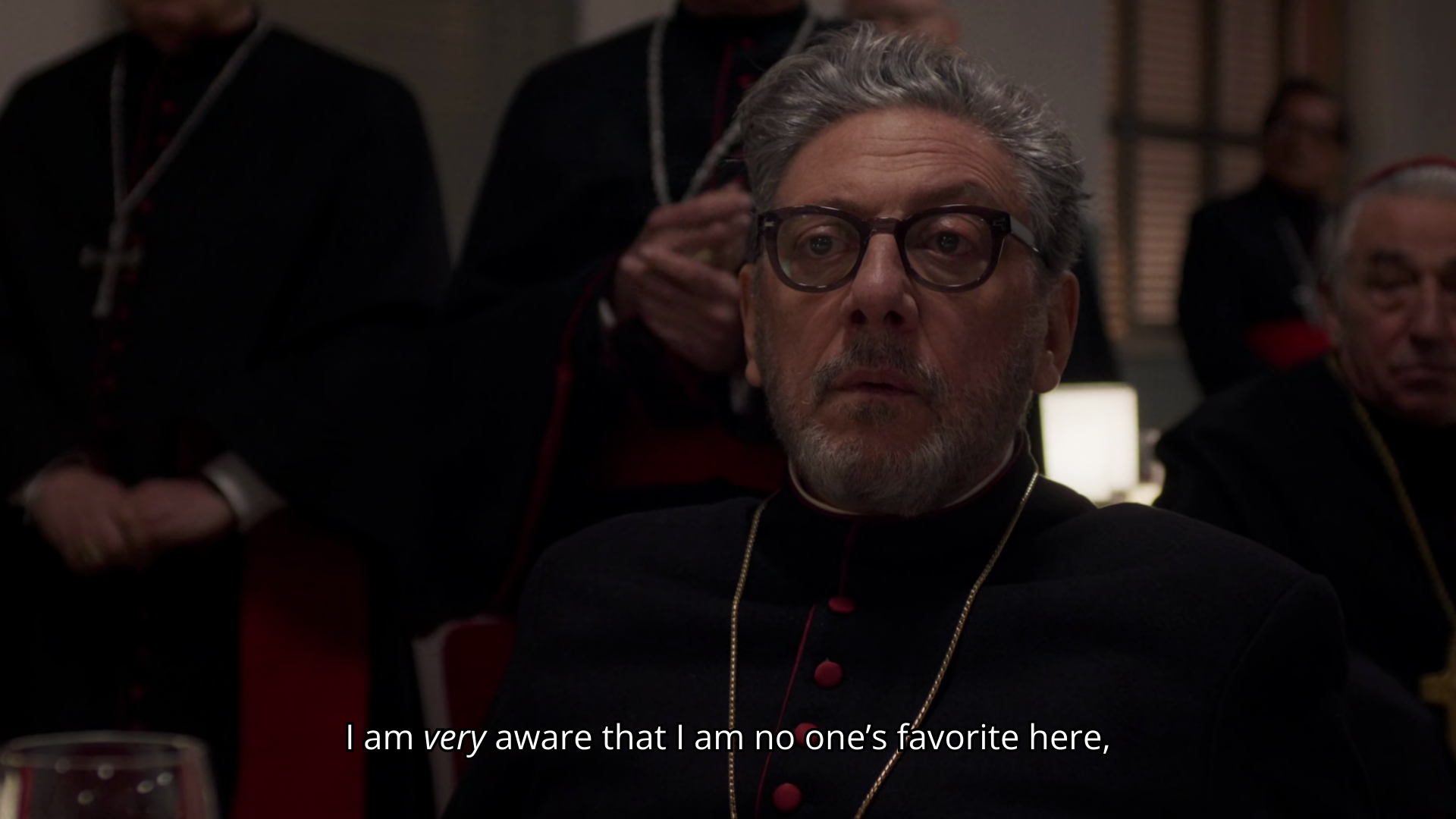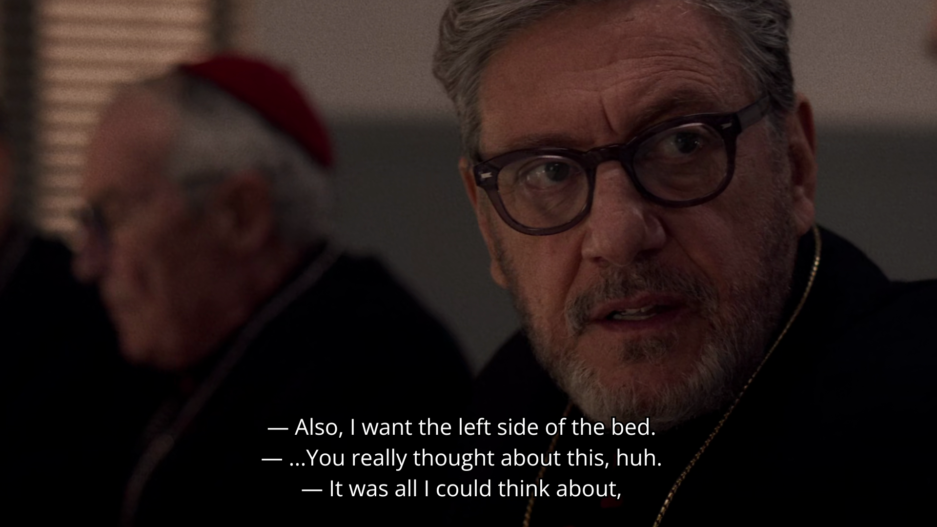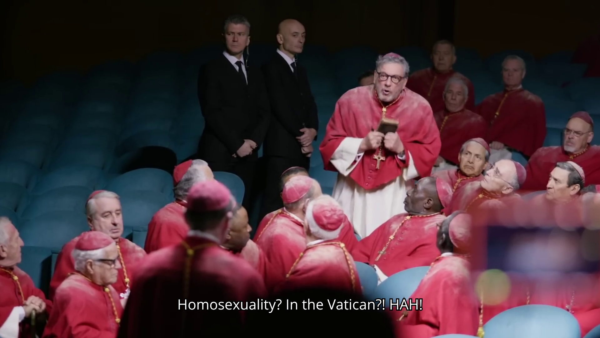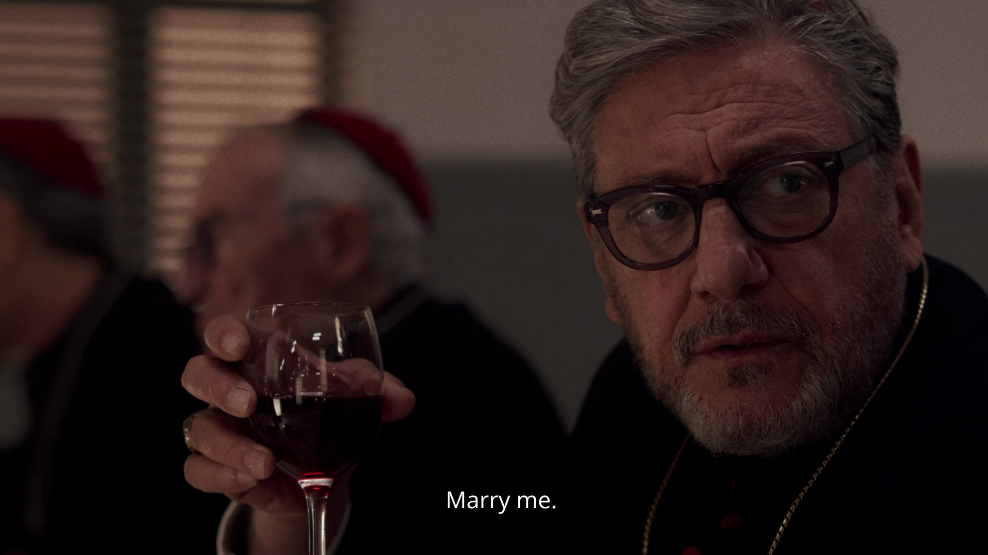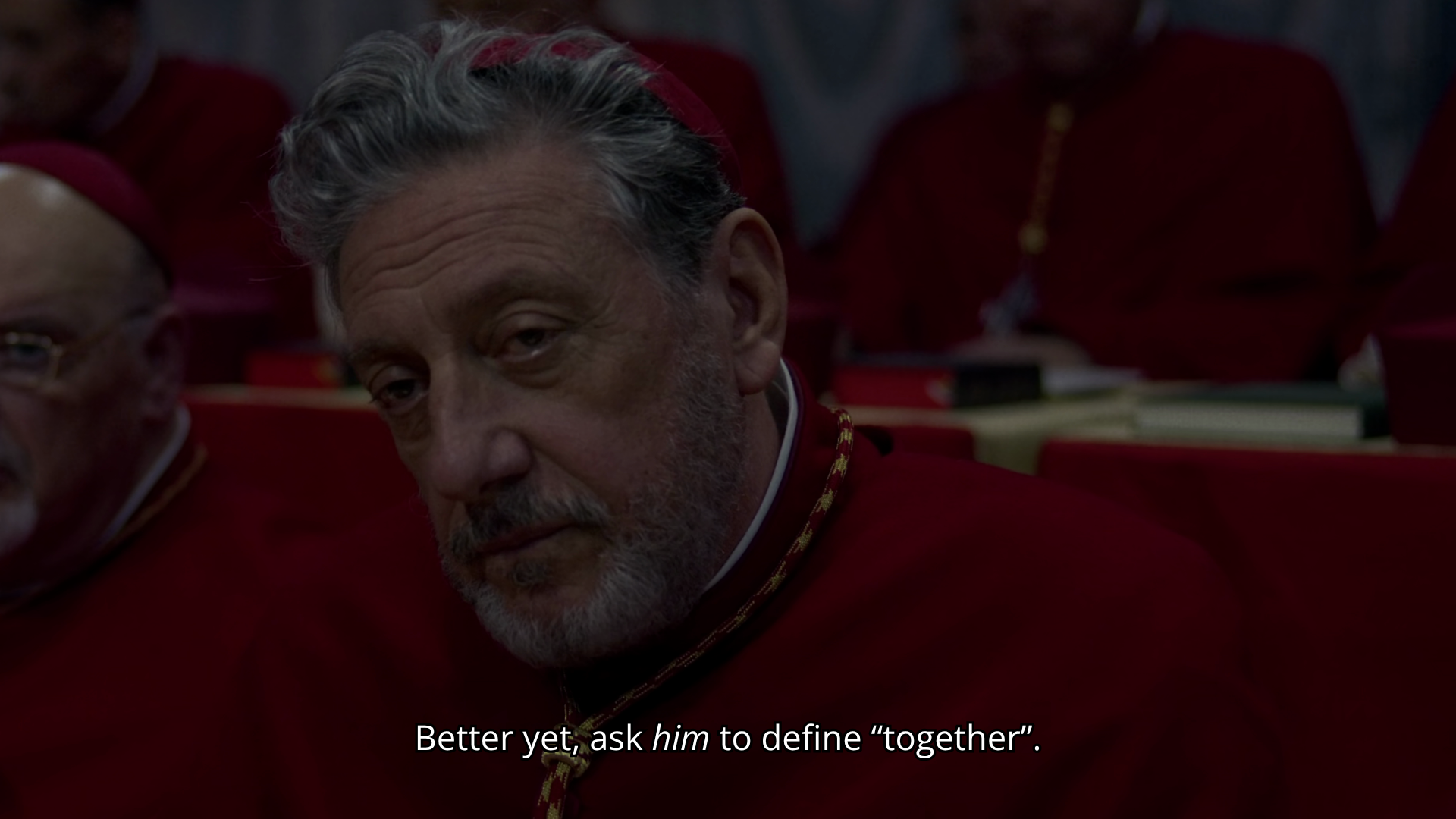 Q: Your Eminence, we'll put it bluntly. Why have you been glaring at Cardinal Bellini?