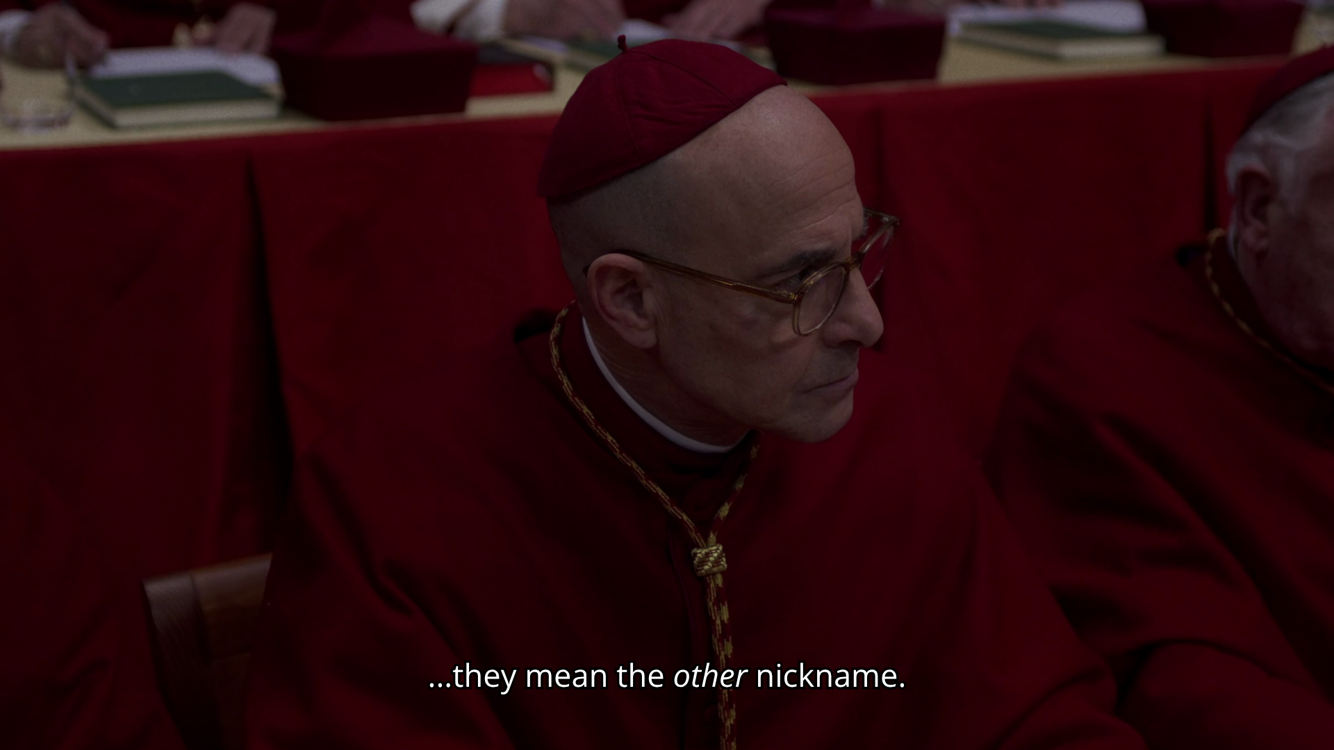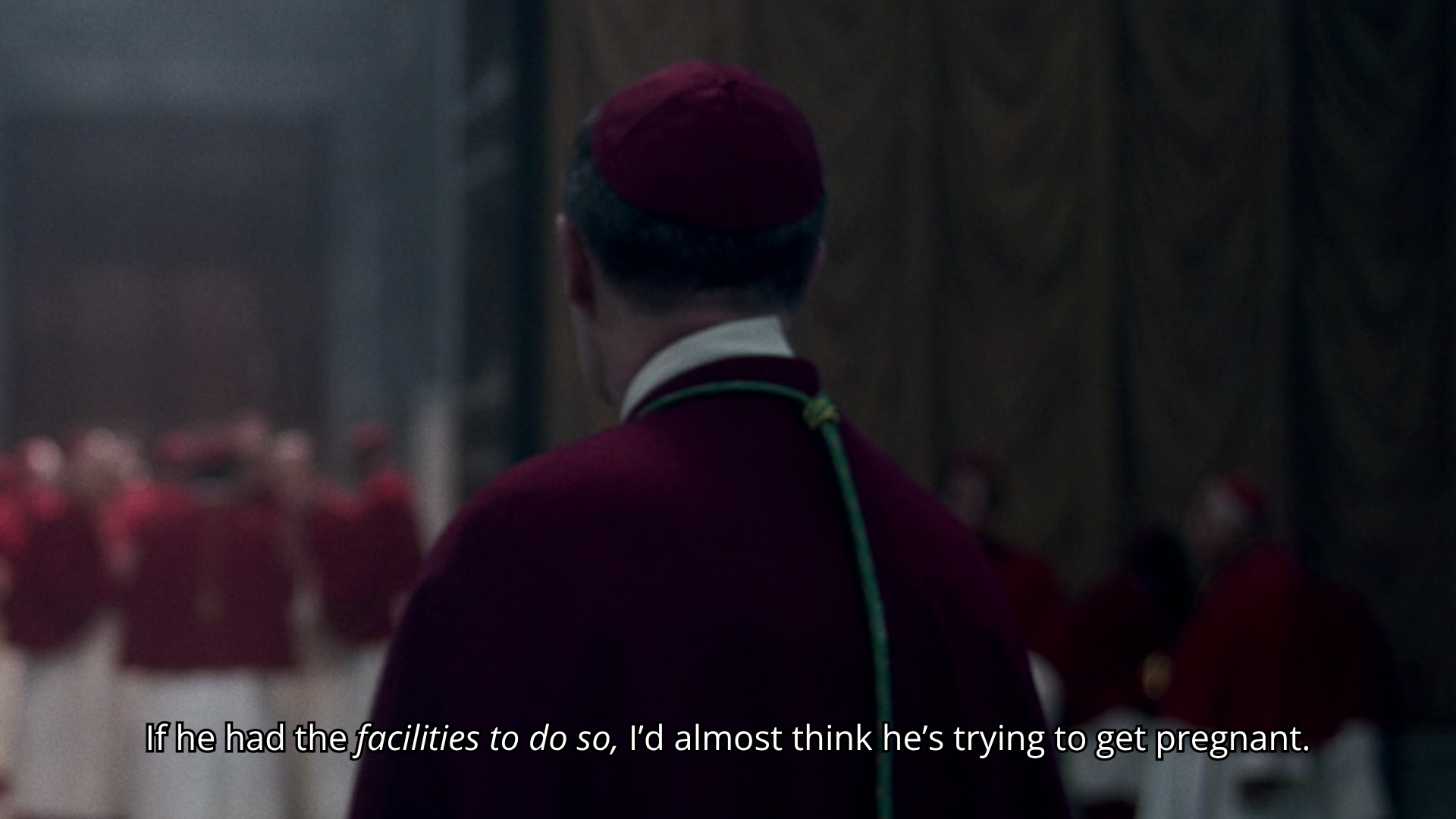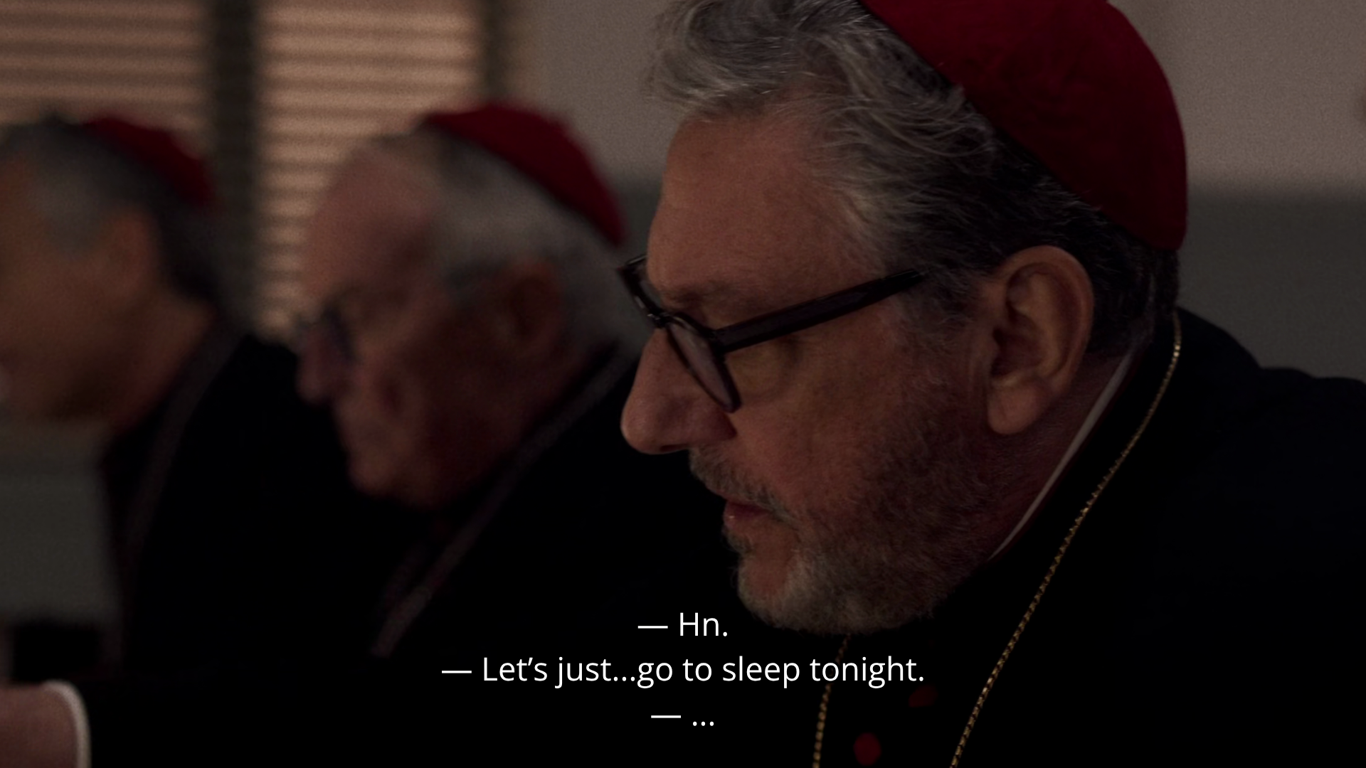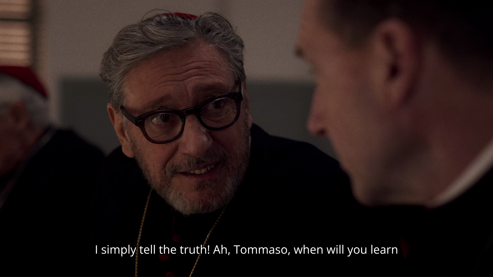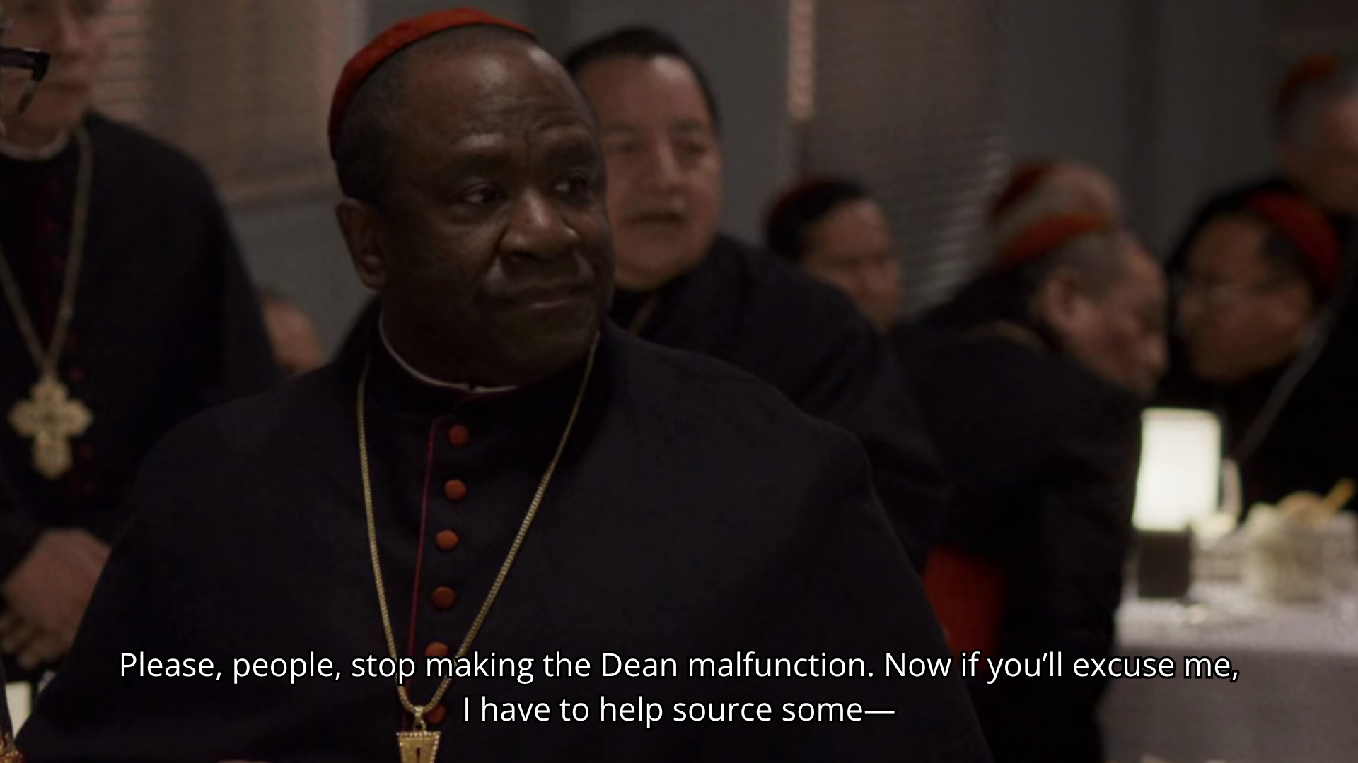 Q: Your Eminence, we'll put it bluntly. Why have you been glaring at Cardinal Bellini?