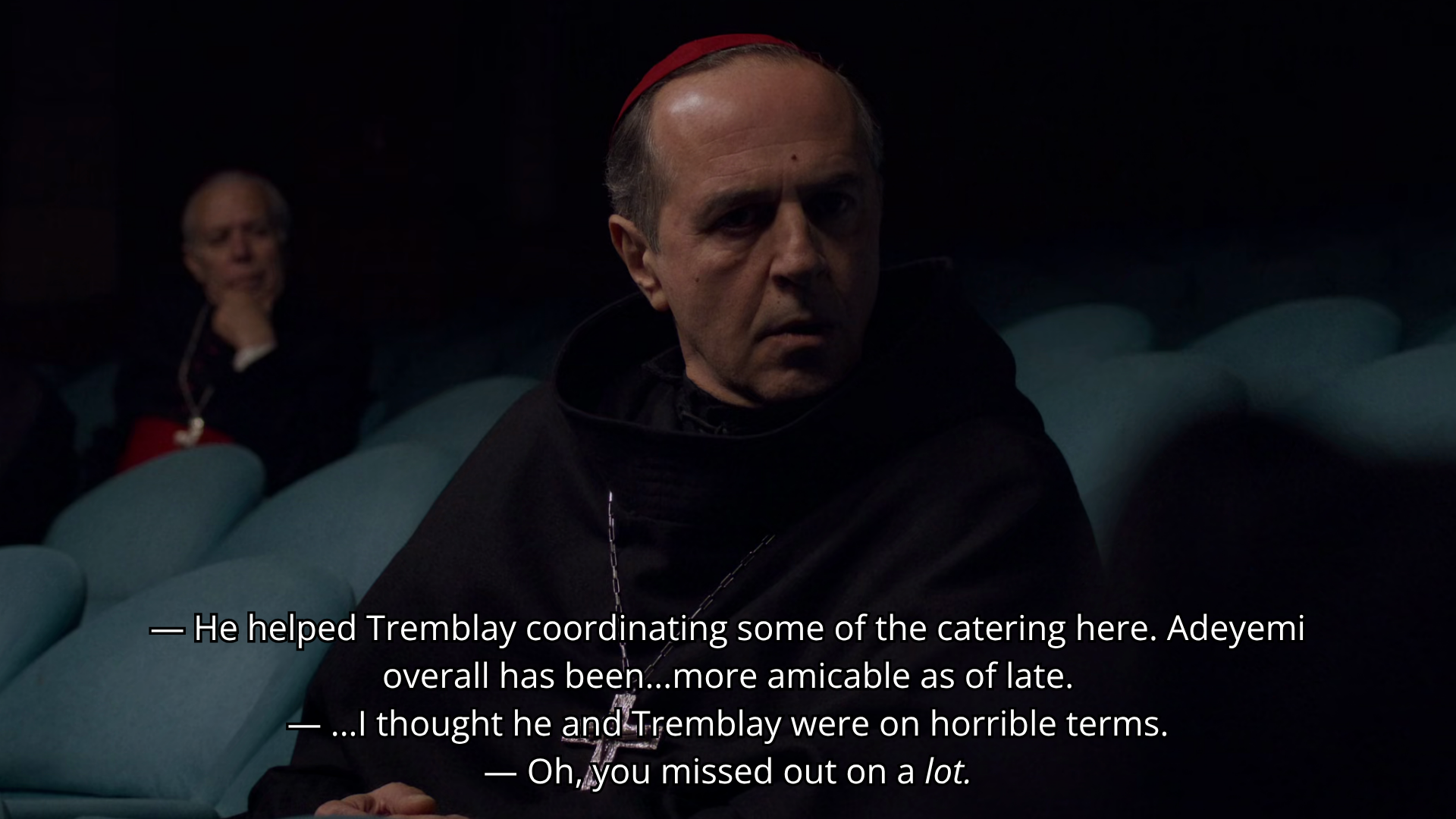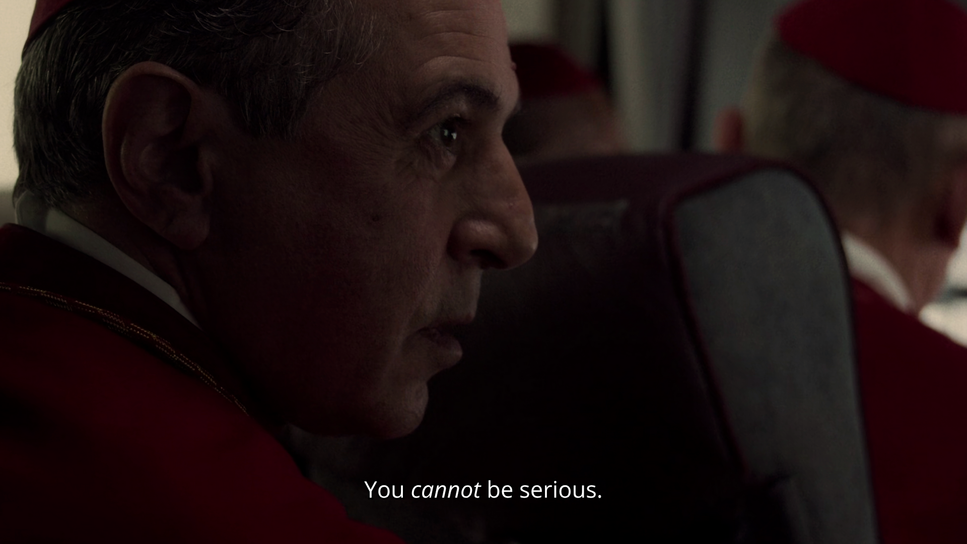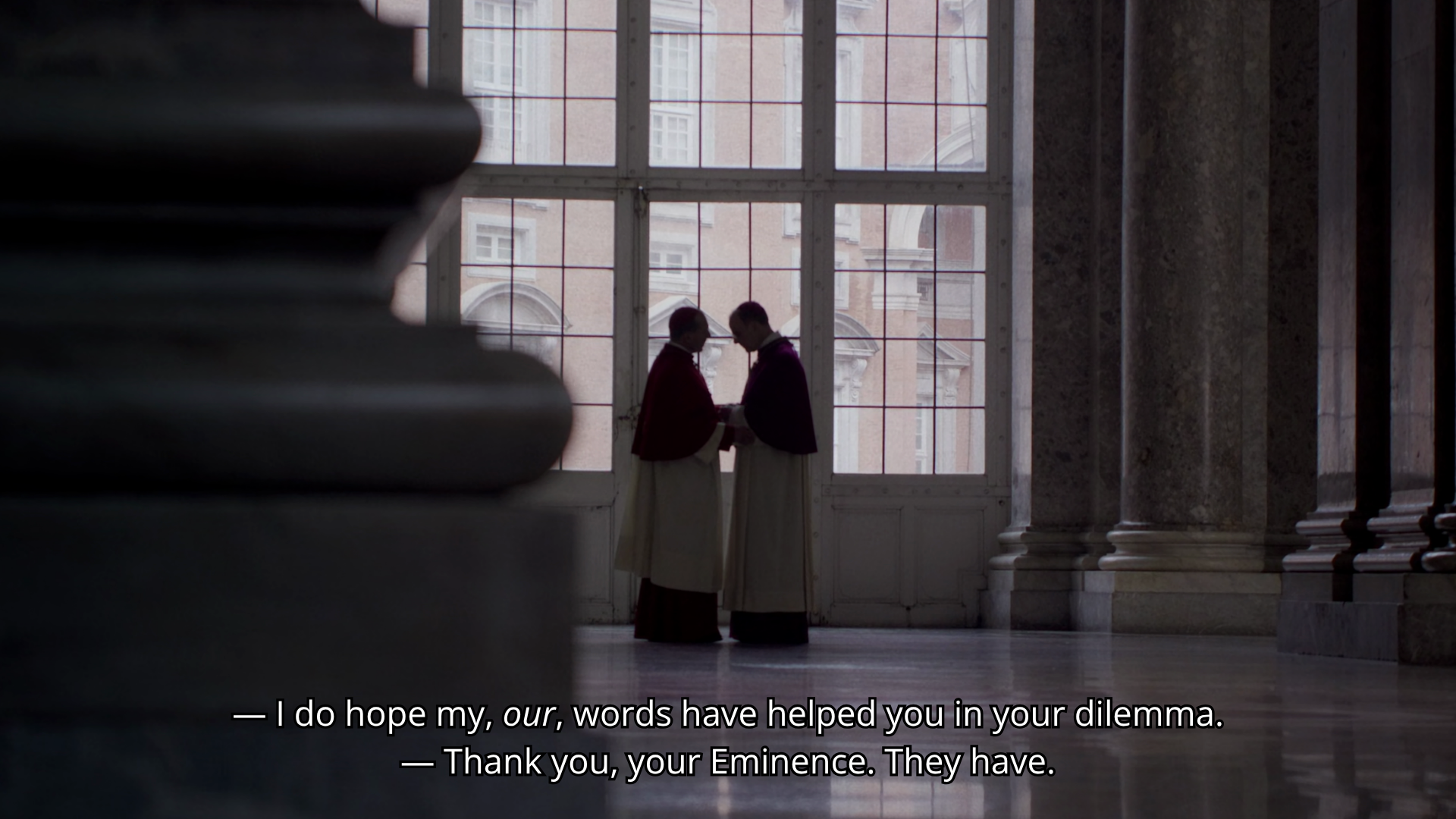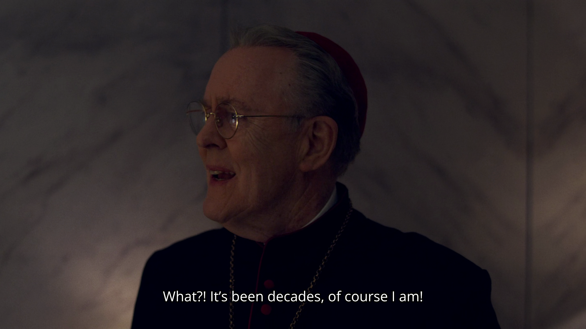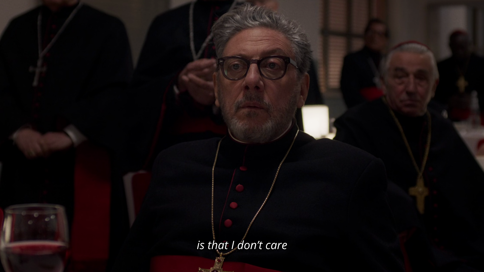 Q: Your Eminence, we'll put it bluntly. Why have you been glaring at Cardinal Bellini?