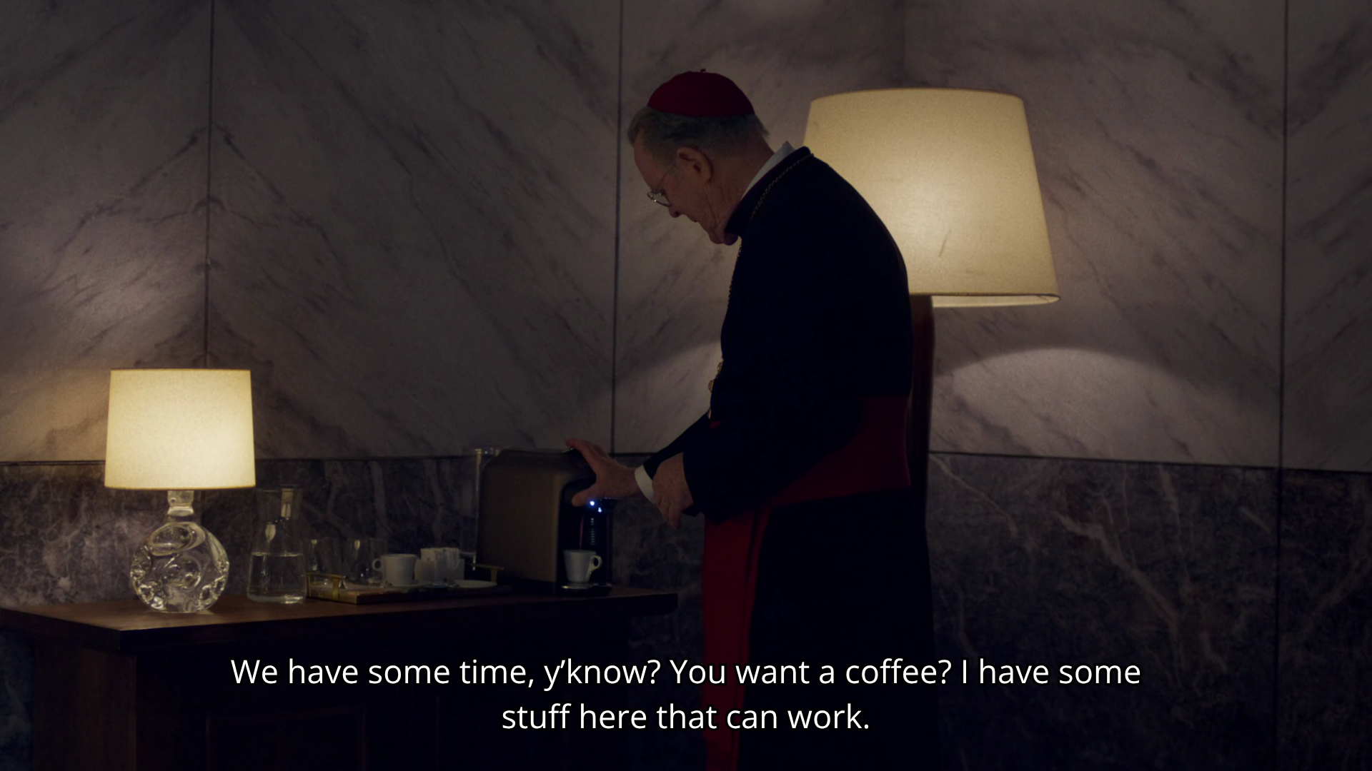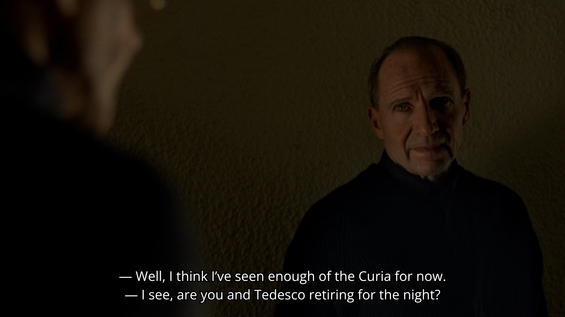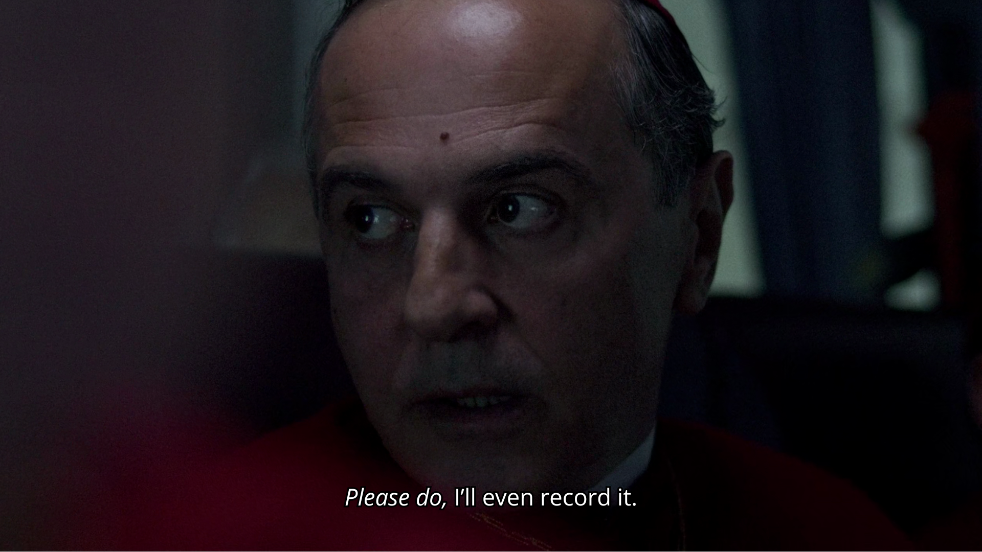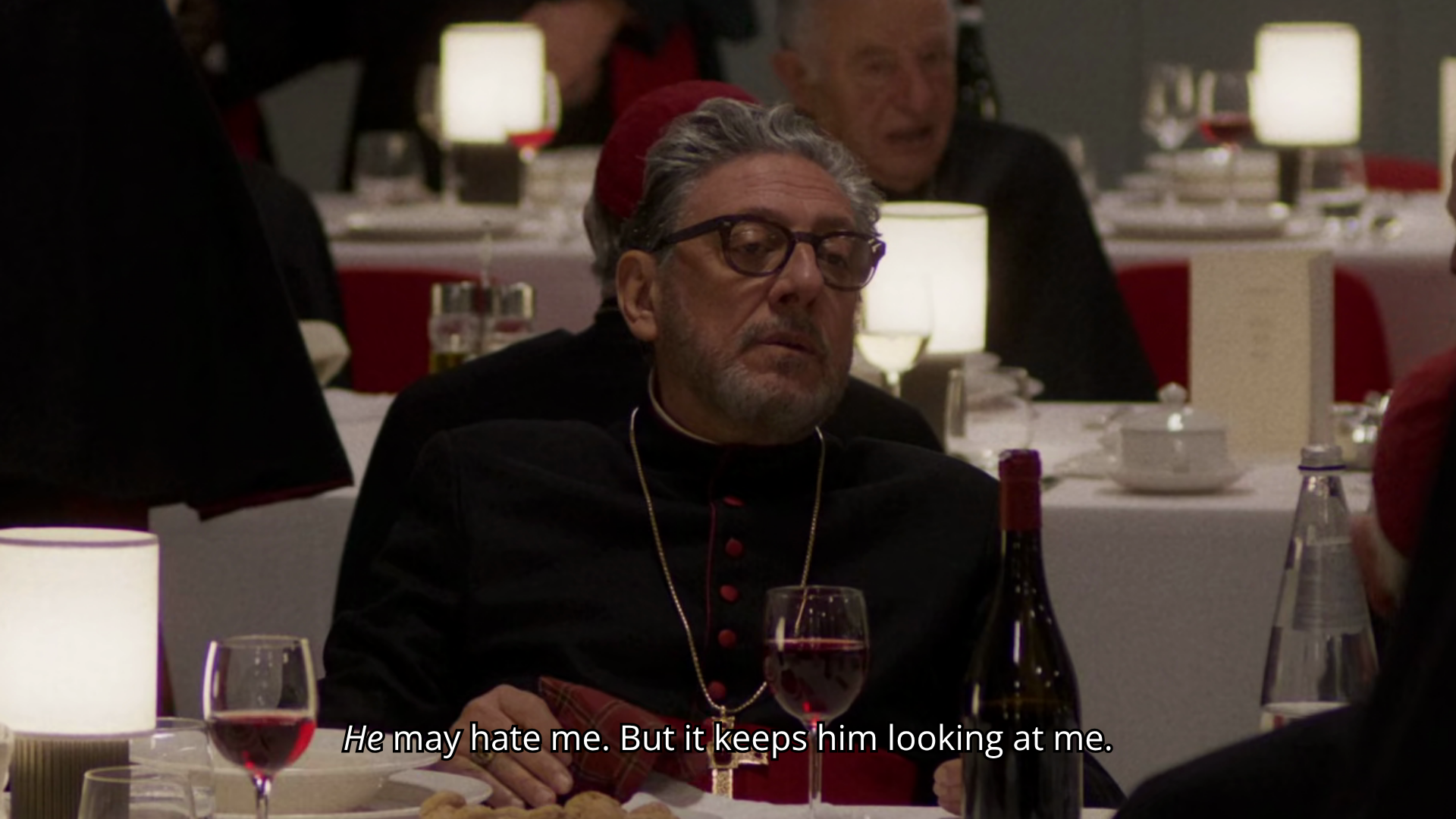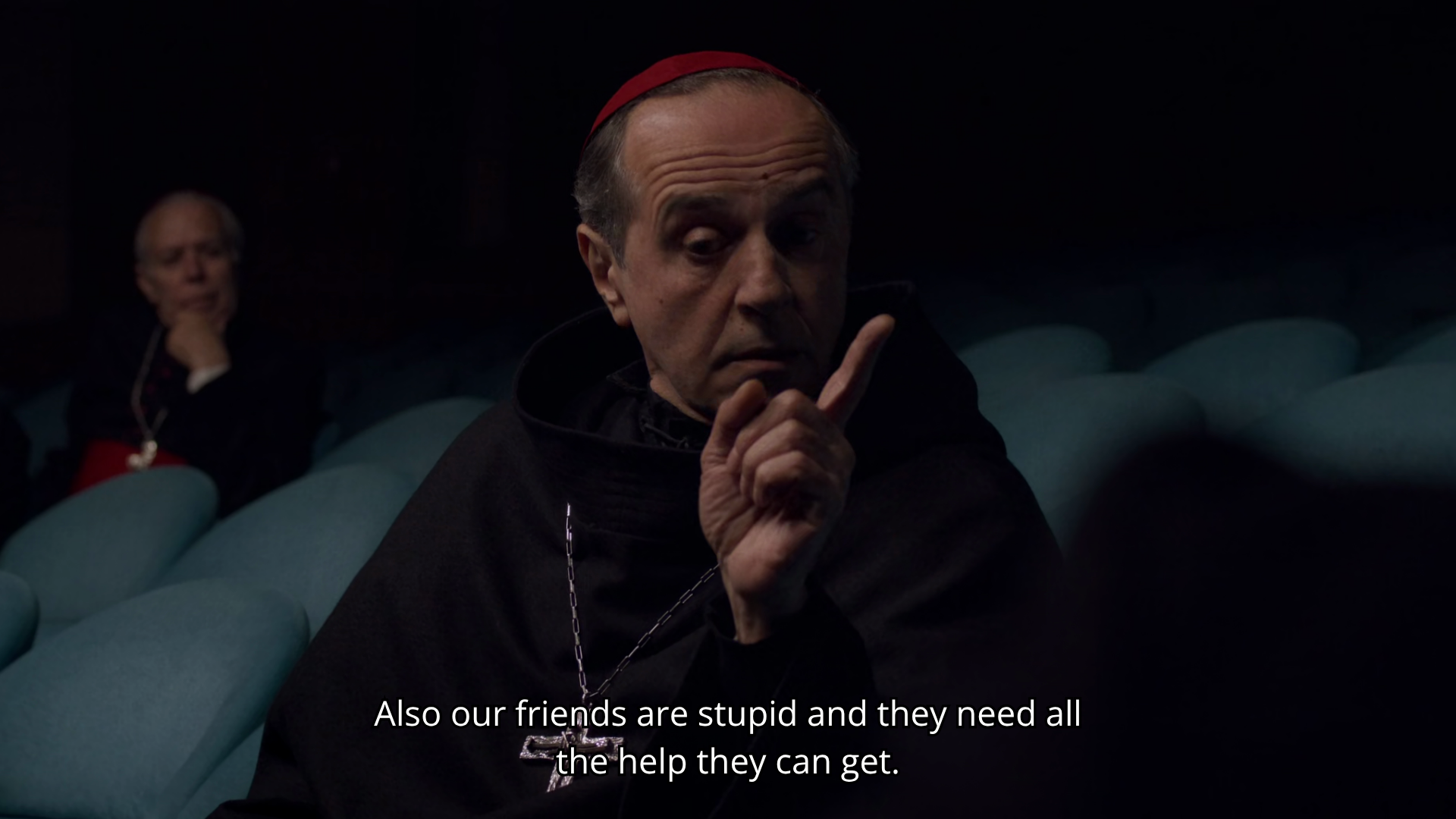 Q: Your Eminence, we'll put it bluntly. Why have you been glaring at Cardinal Bellini?