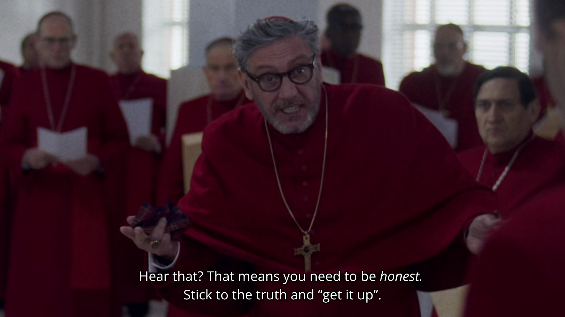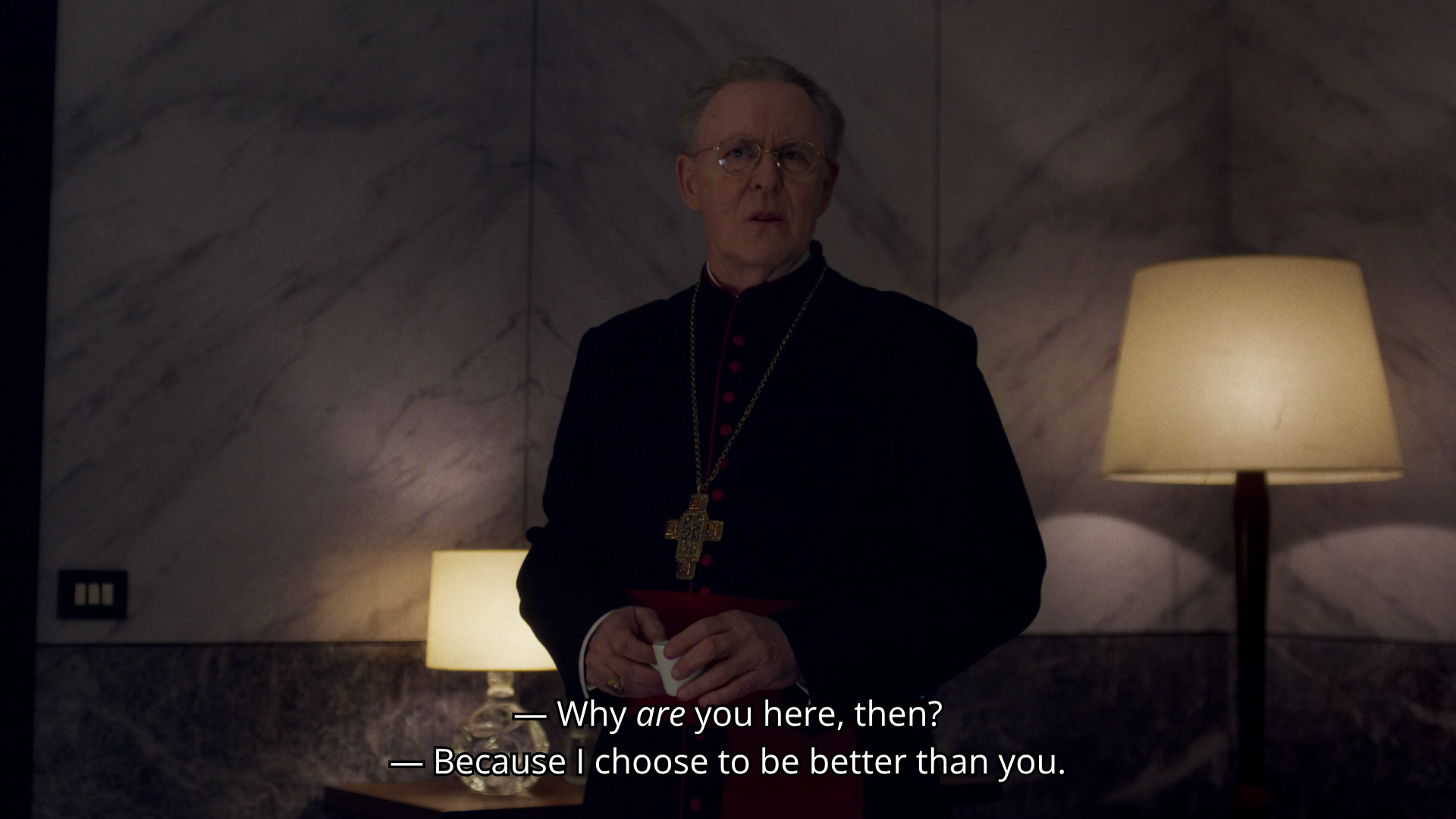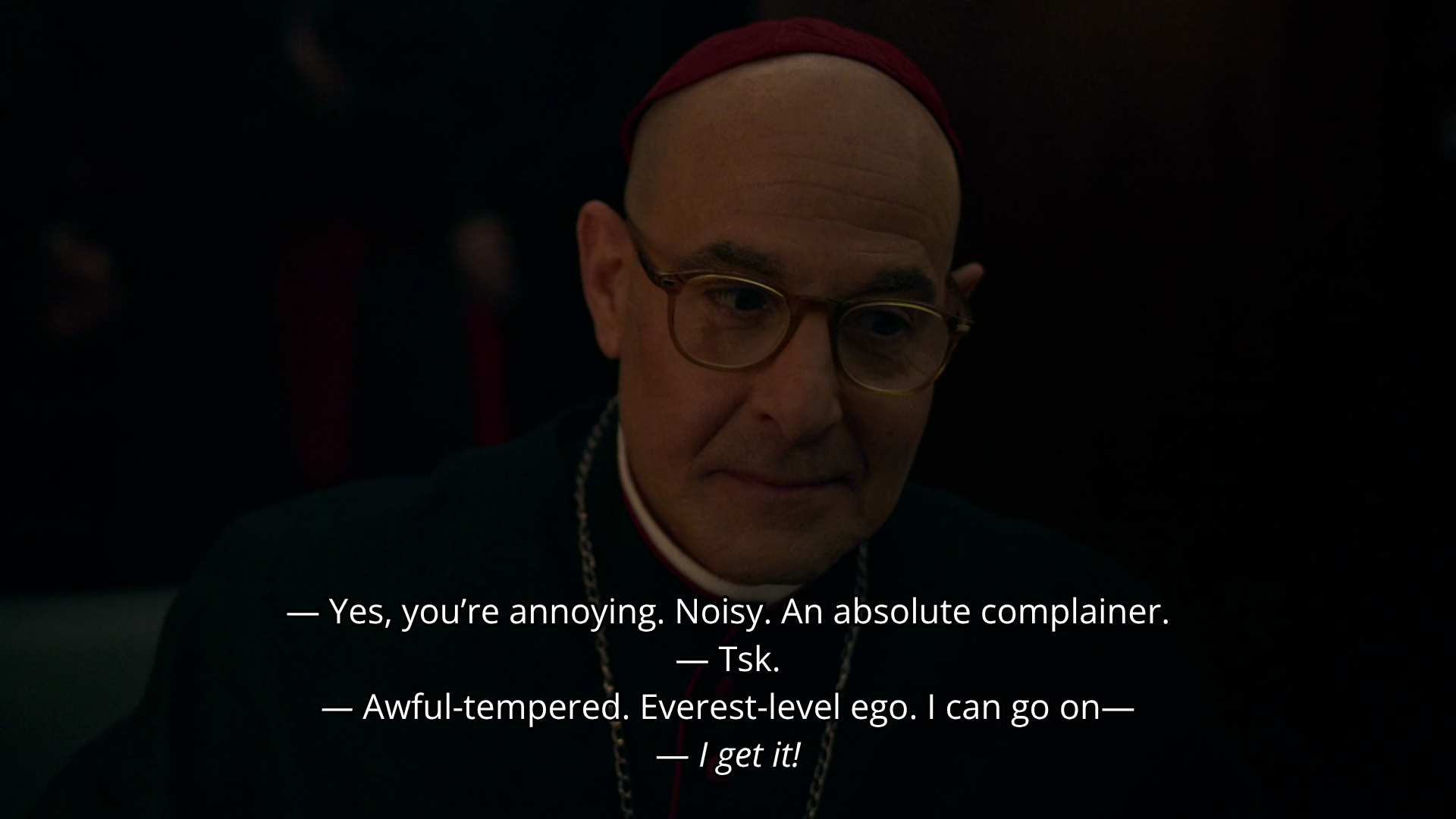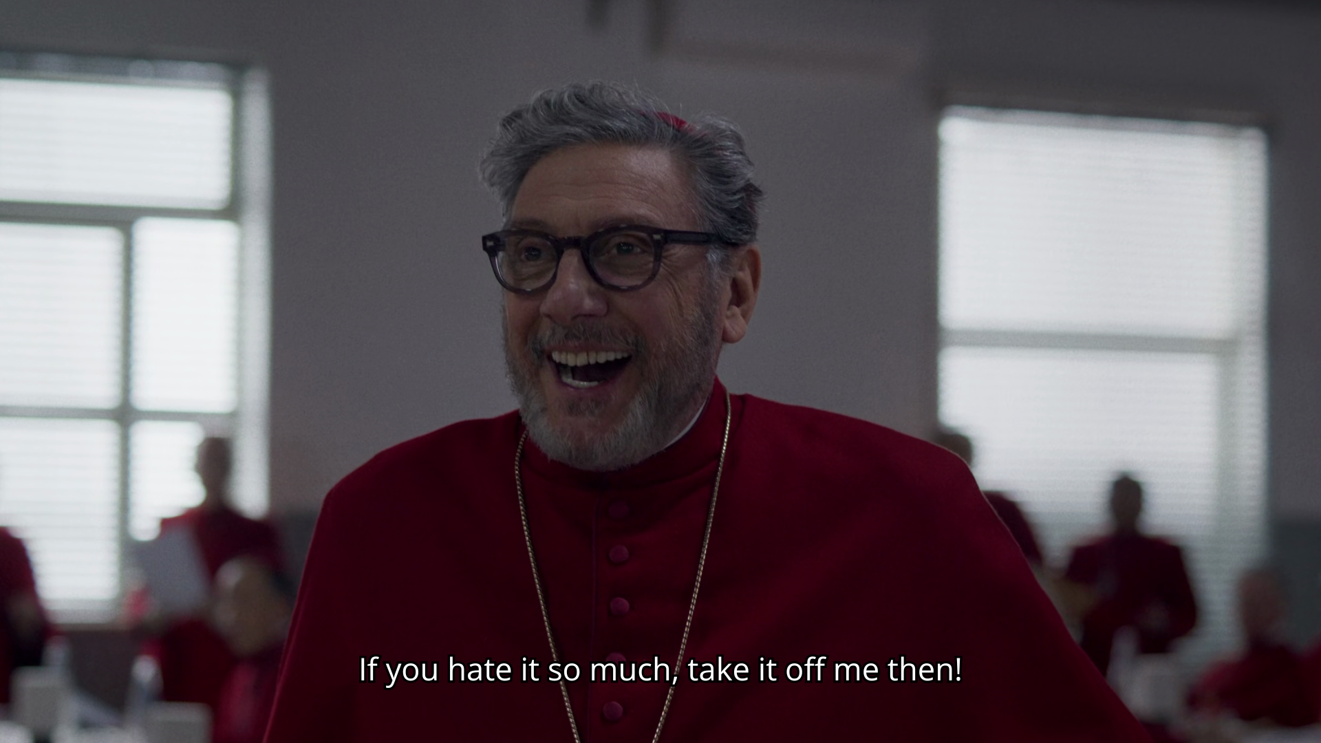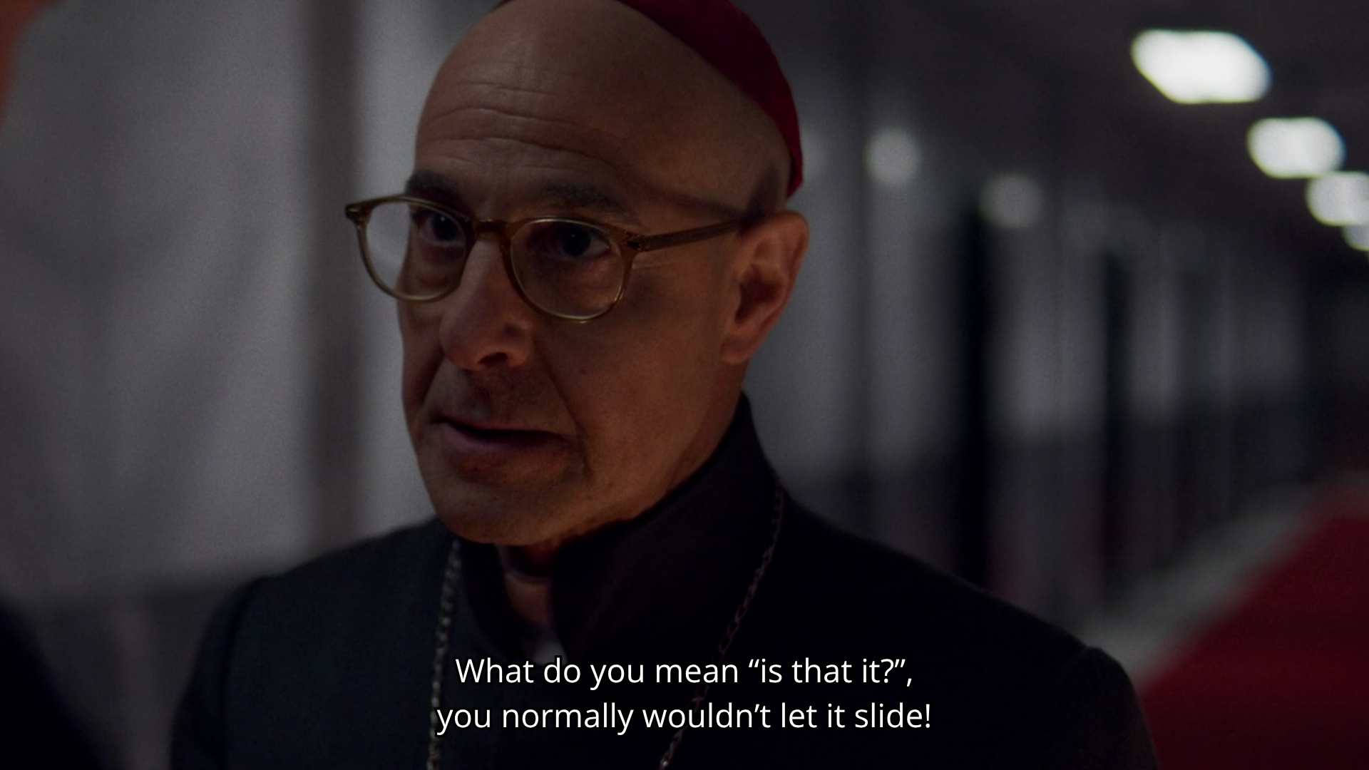Q: Your Eminence, we'll put it bluntly. Why have you been glaring at Cardinal Bellini?