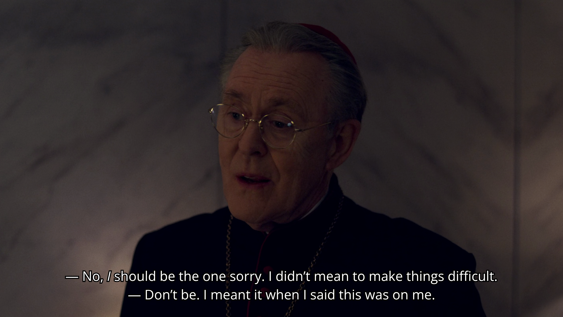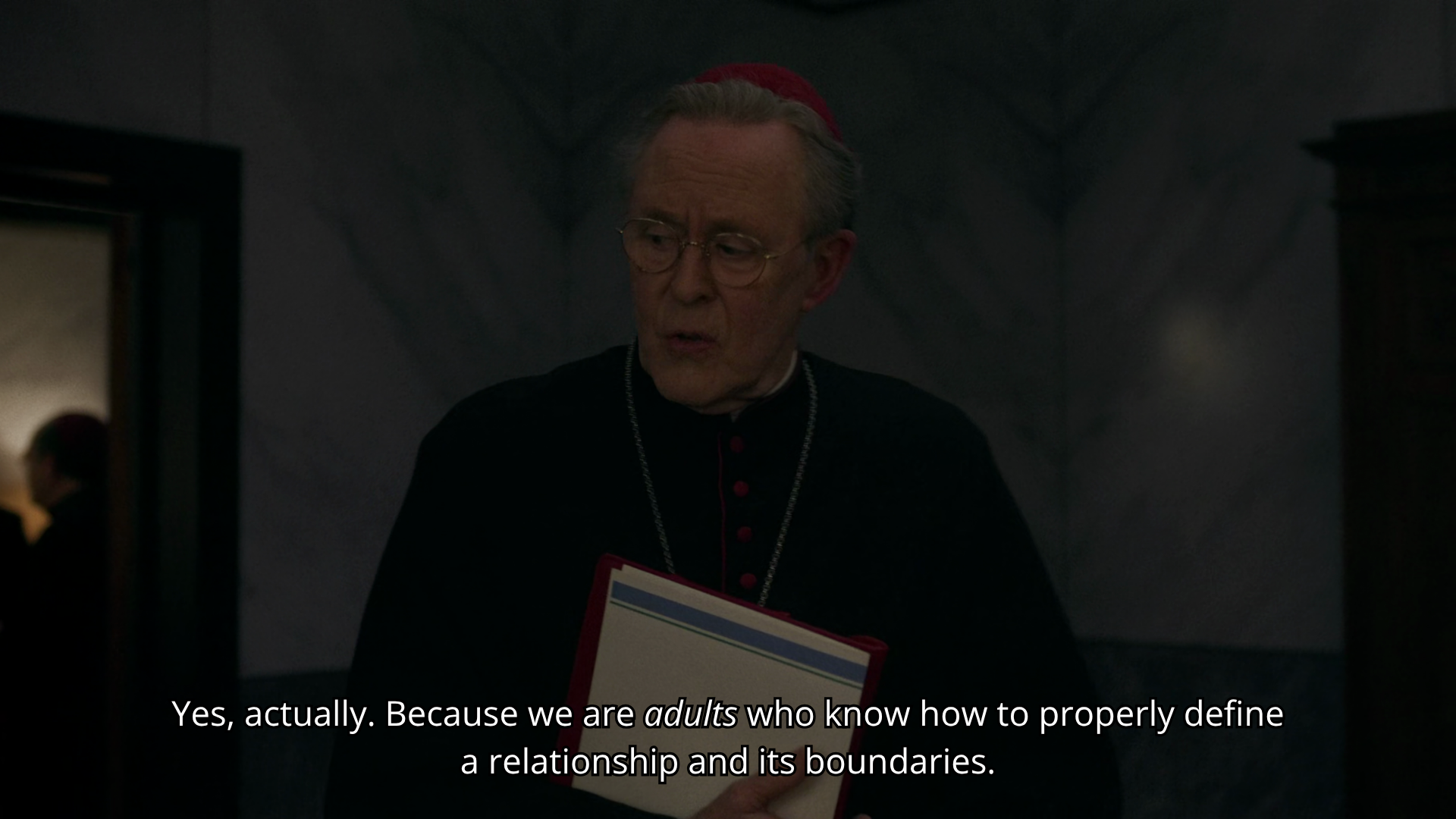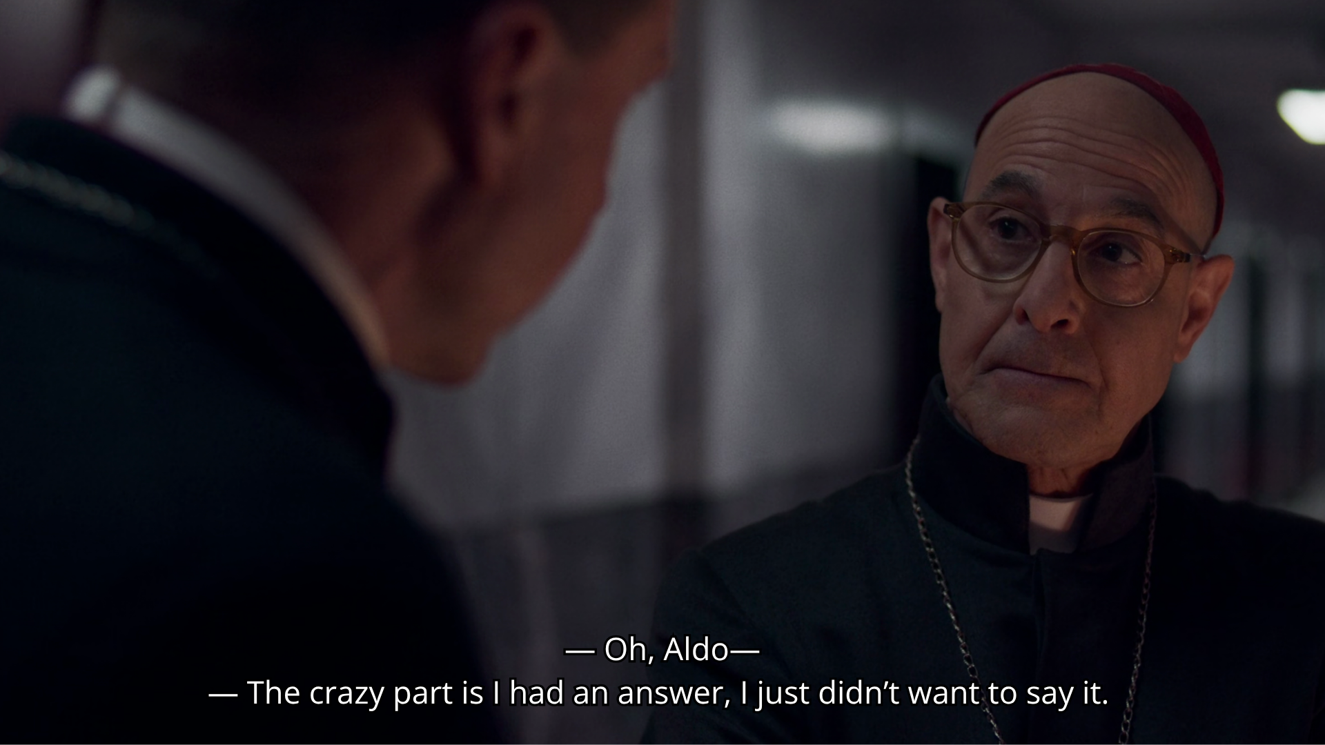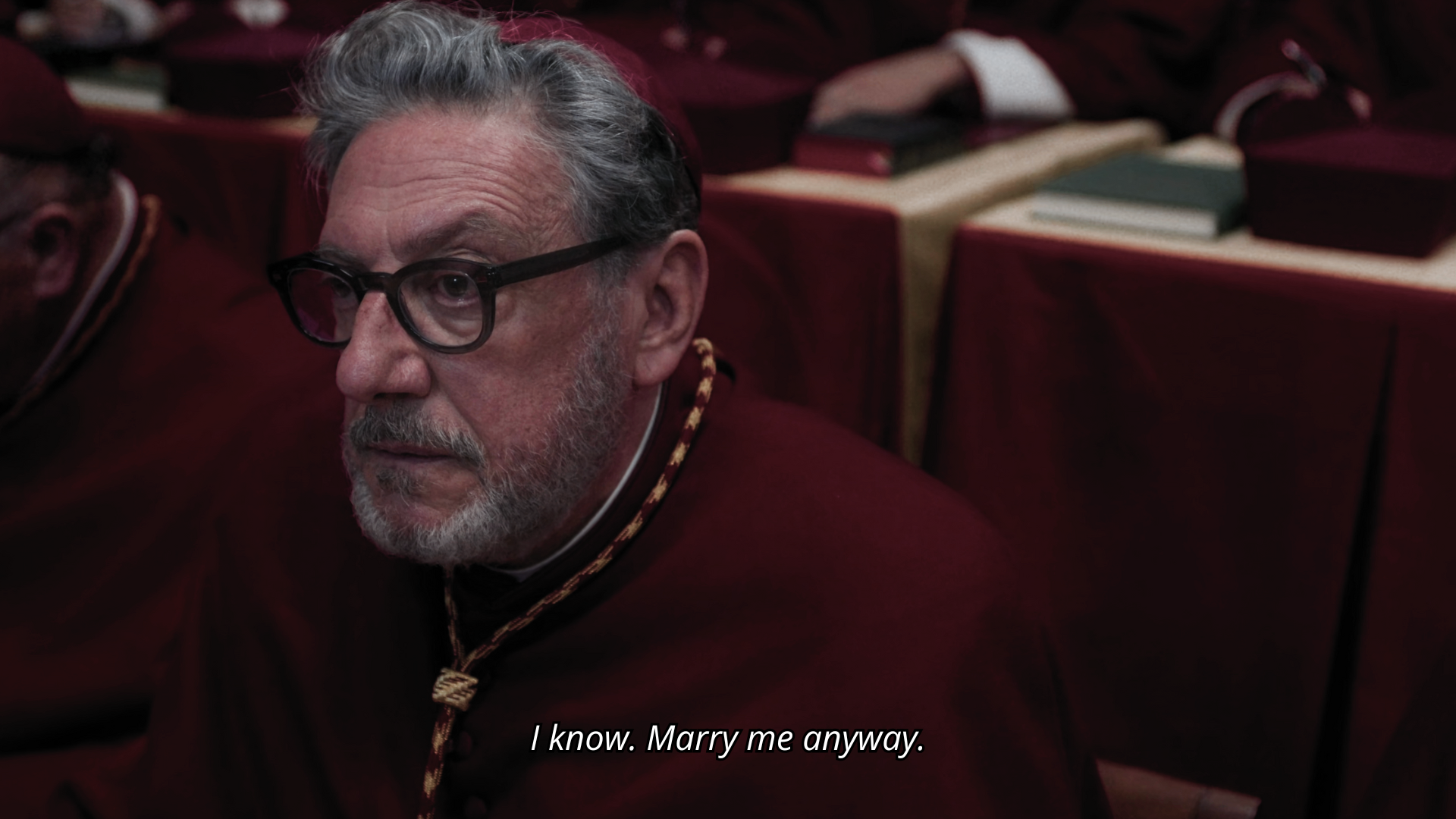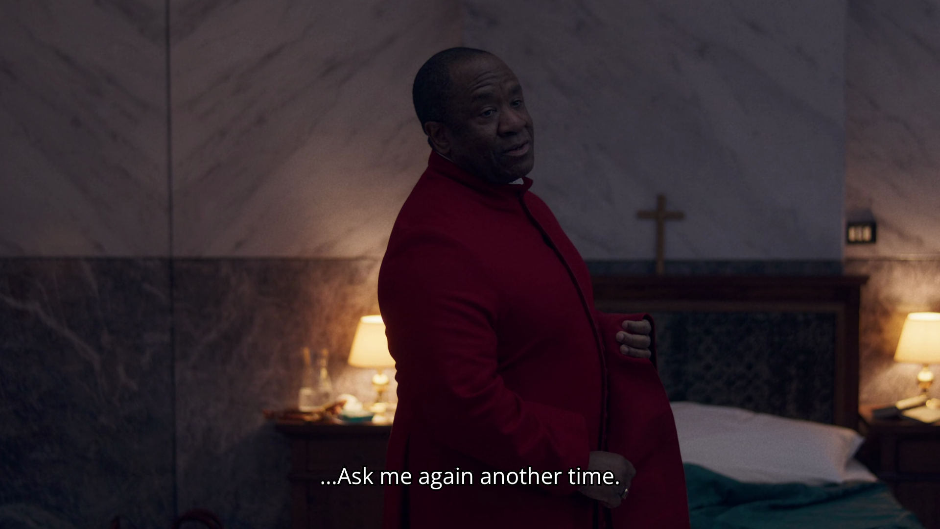 Q: Your Eminence, we'll put it bluntly. Why have you been glaring at Cardinal Bellini?