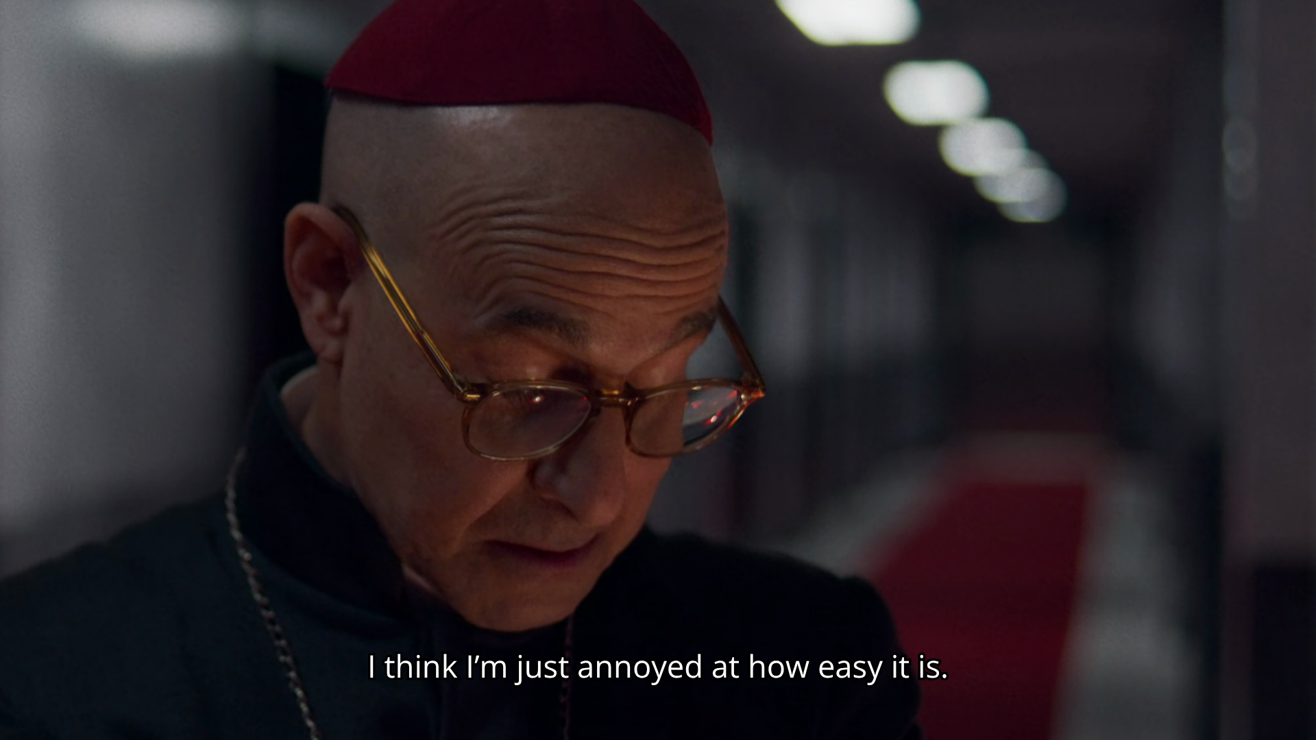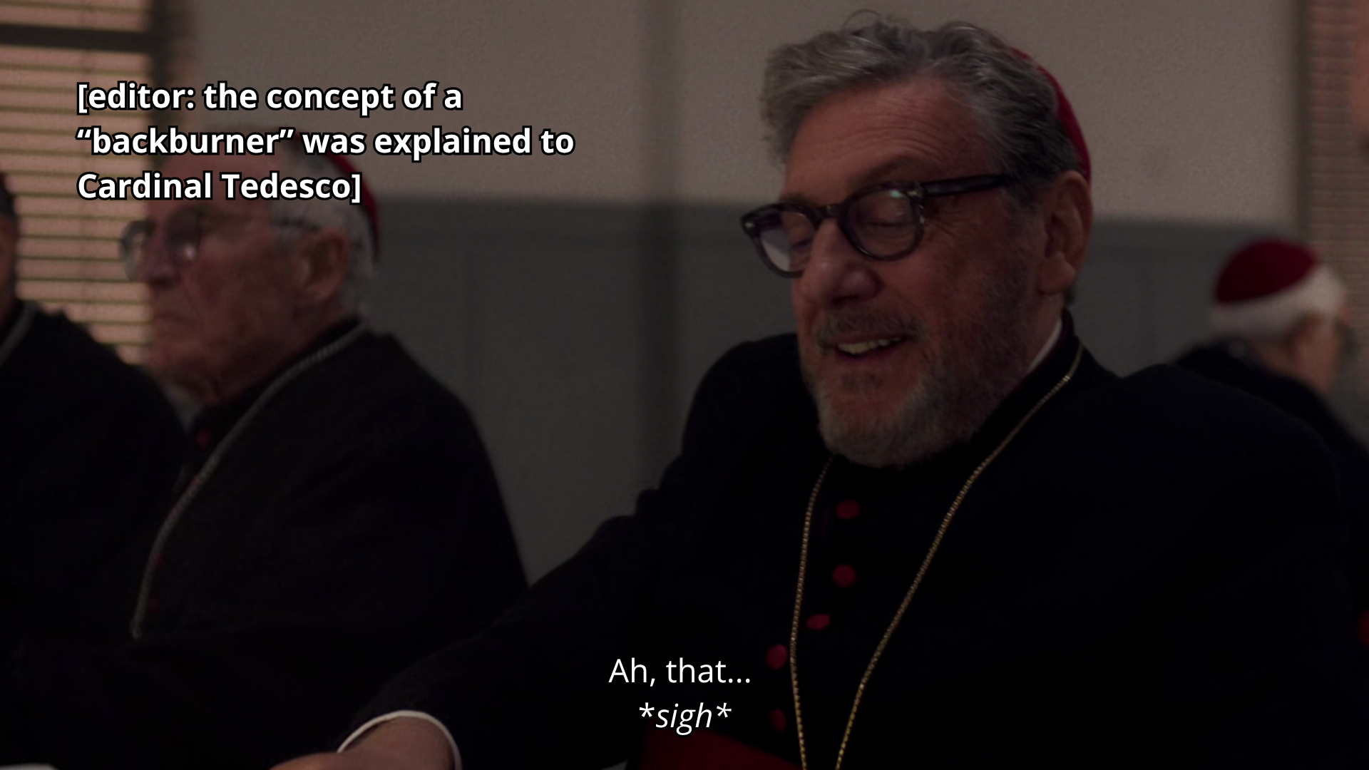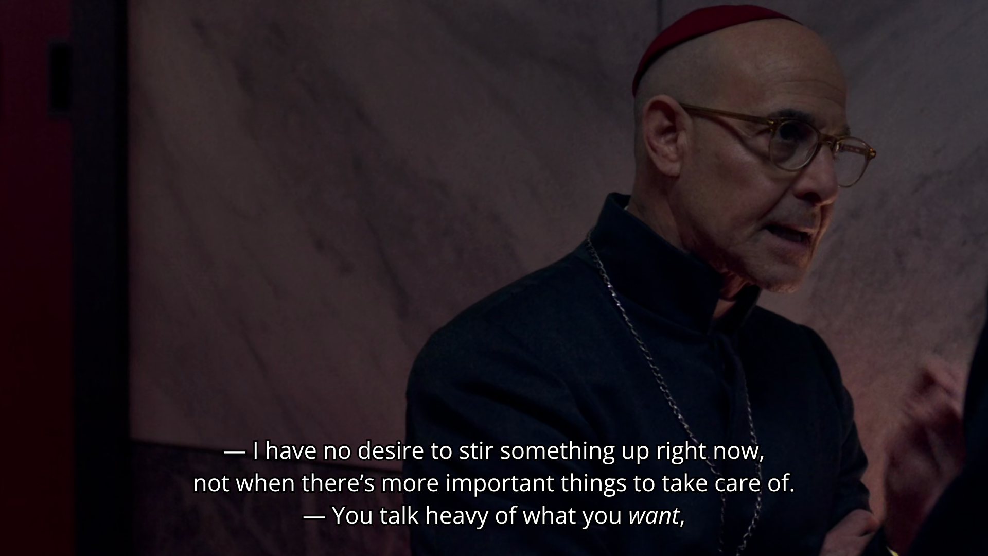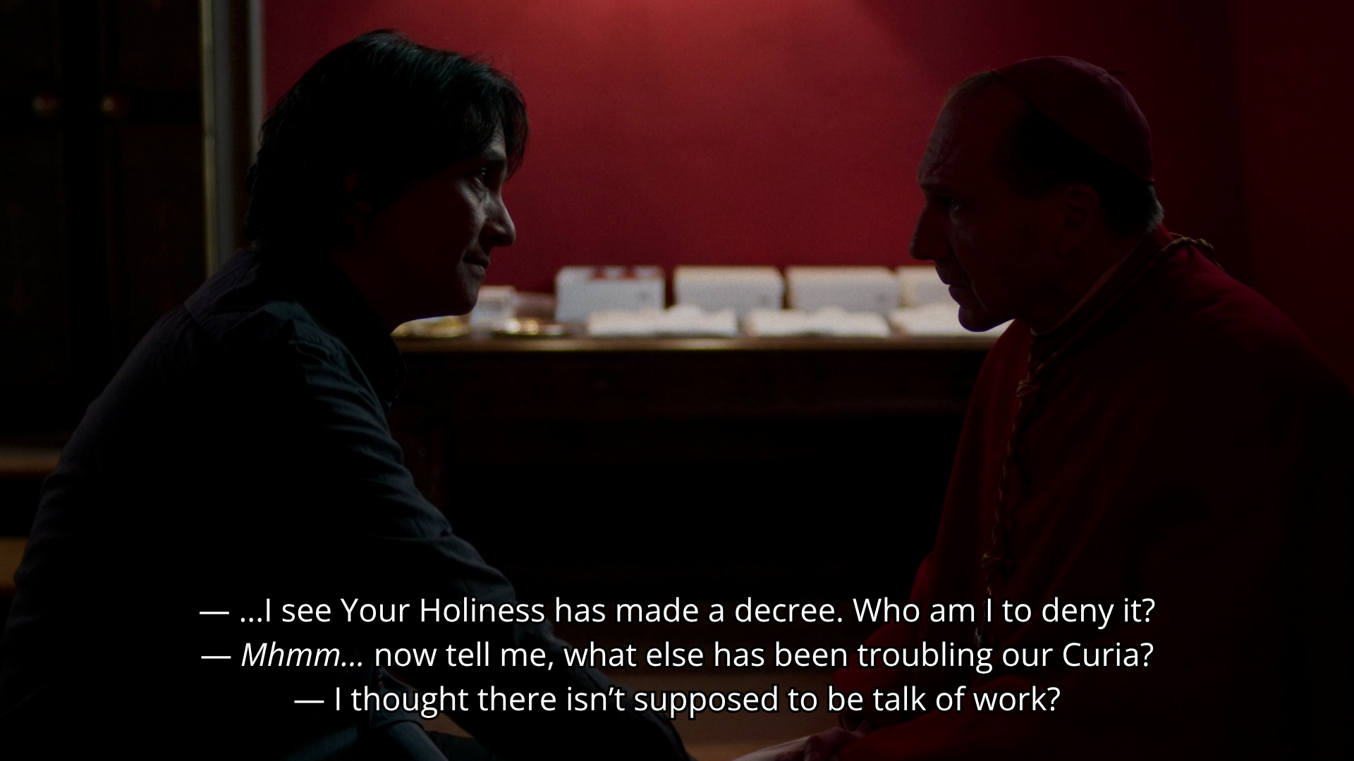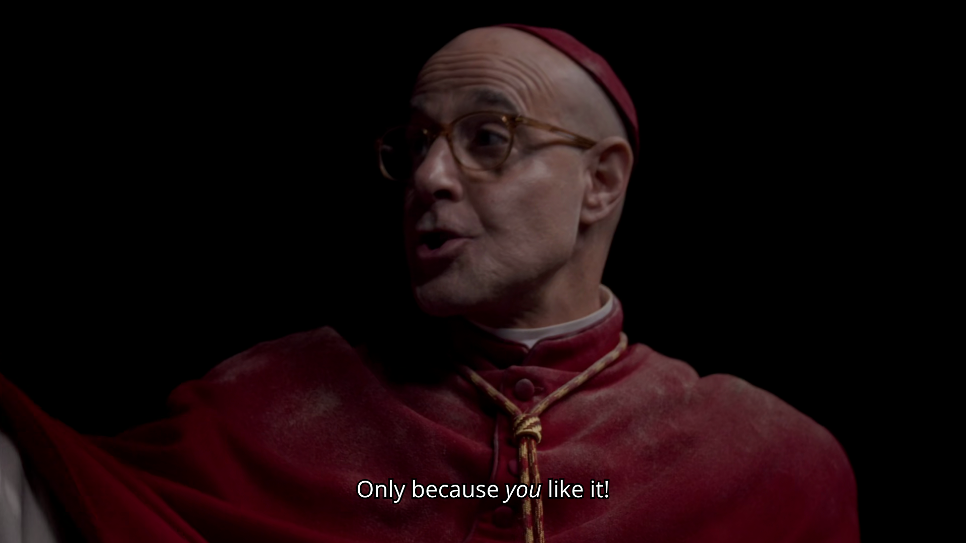Q: Your Eminence, we'll put it bluntly. Why have you been glaring at Cardinal Bellini?
