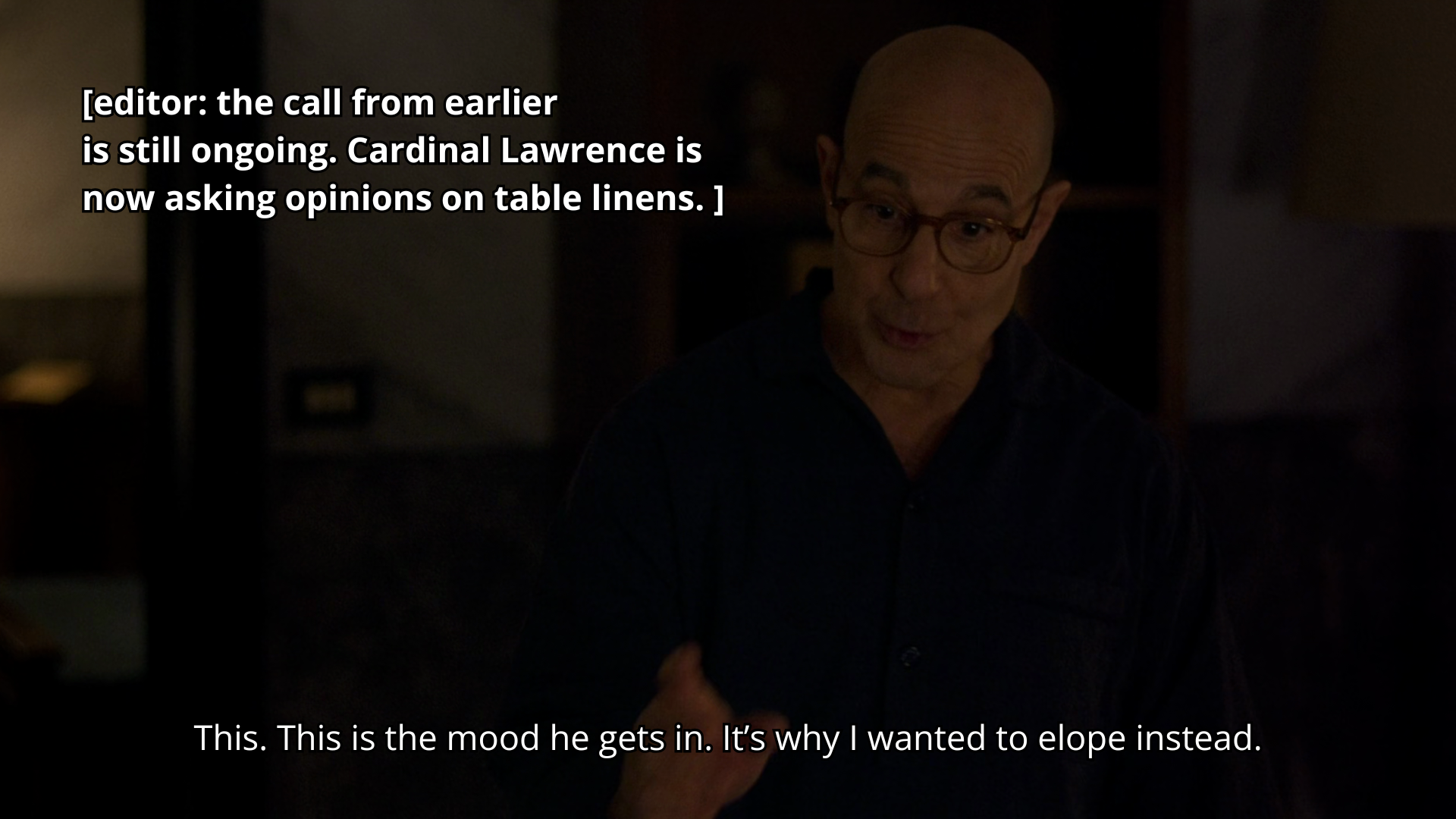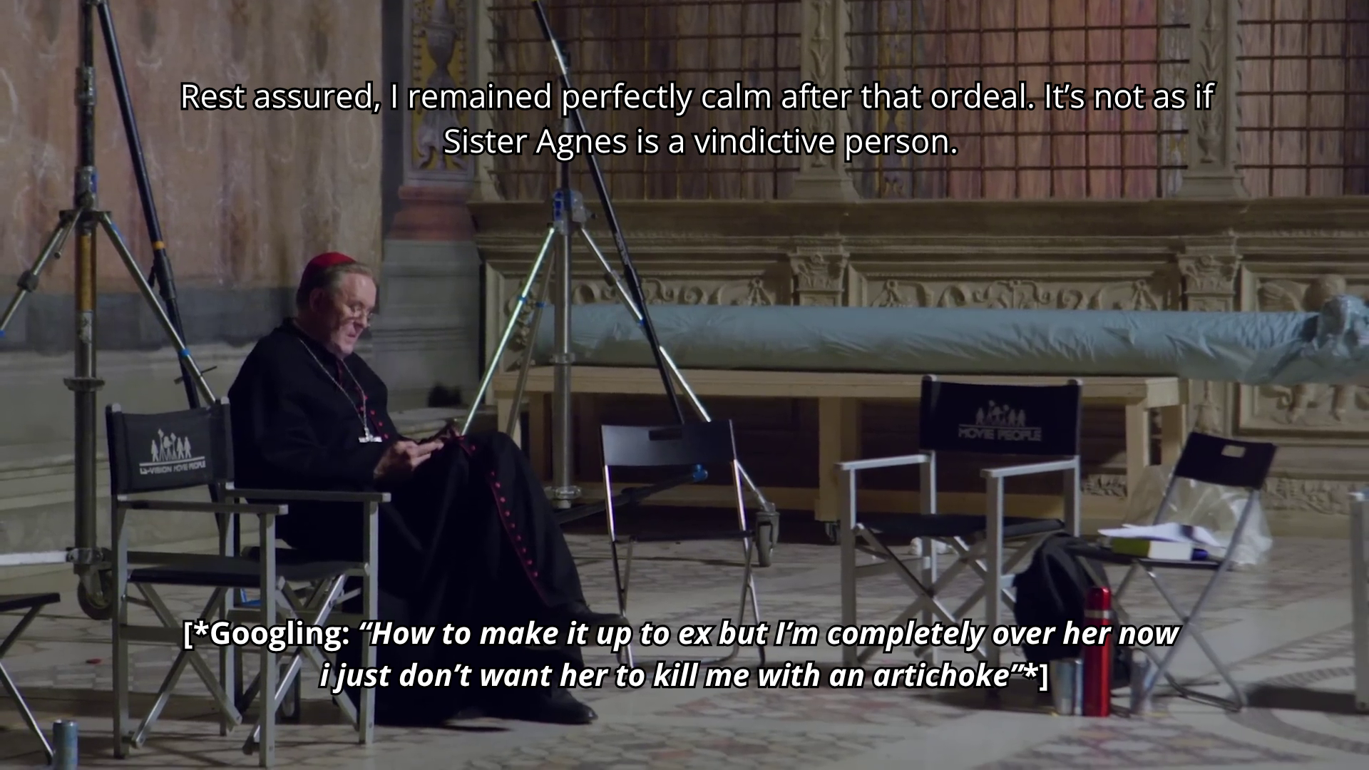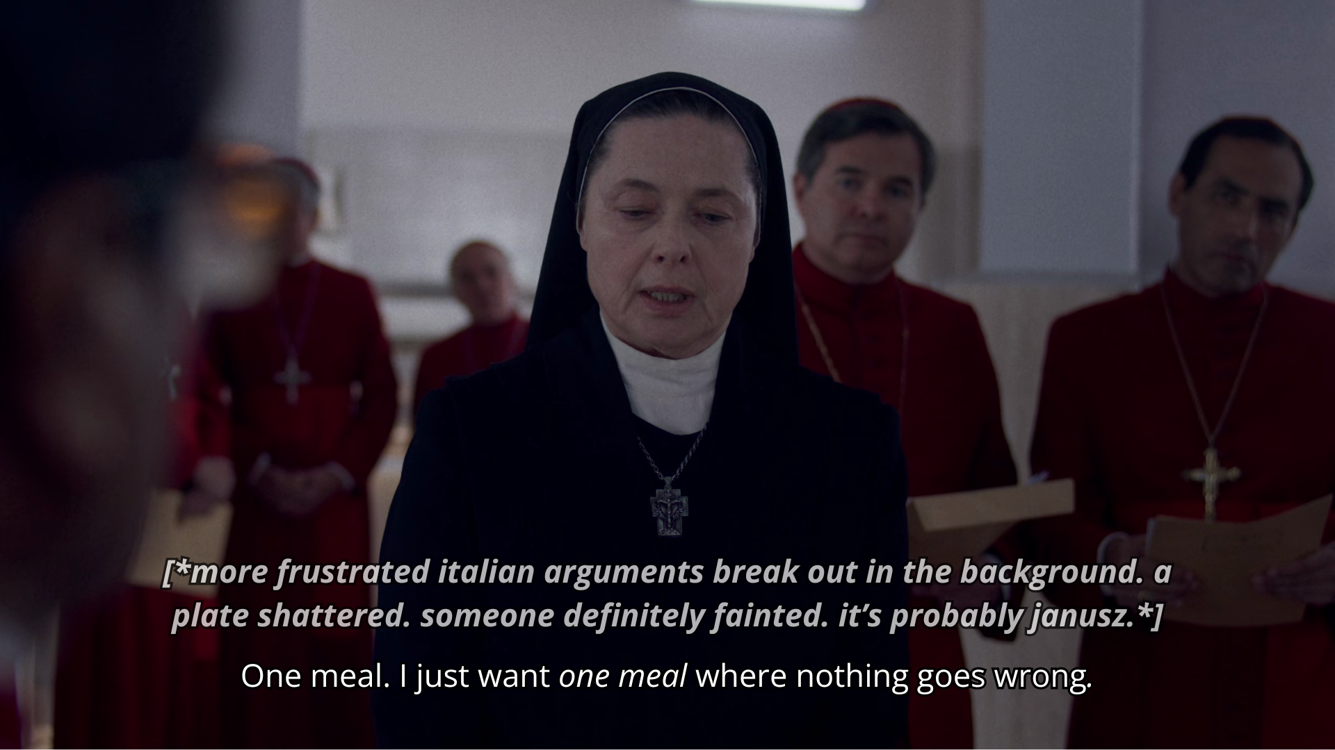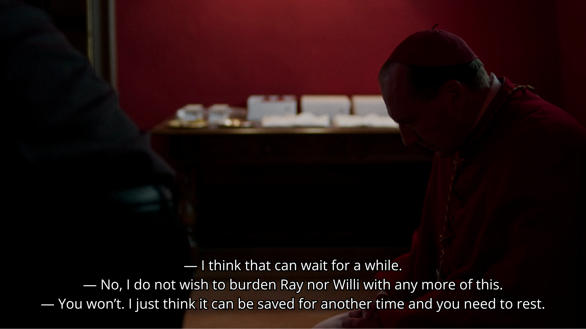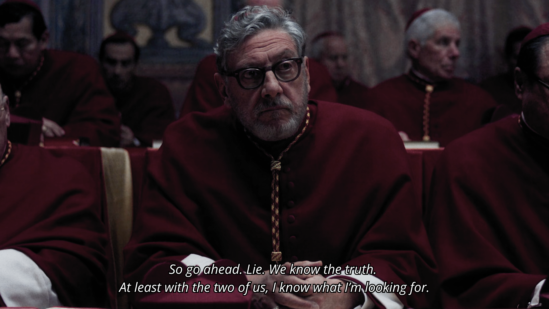 Q: Your Eminence, we'll put it bluntly. Why have you been glaring at Cardinal Bellini?