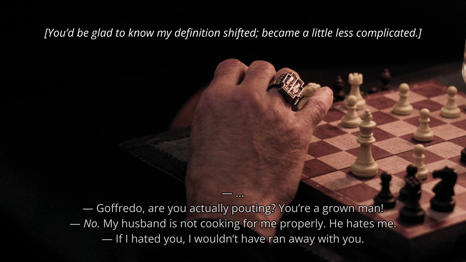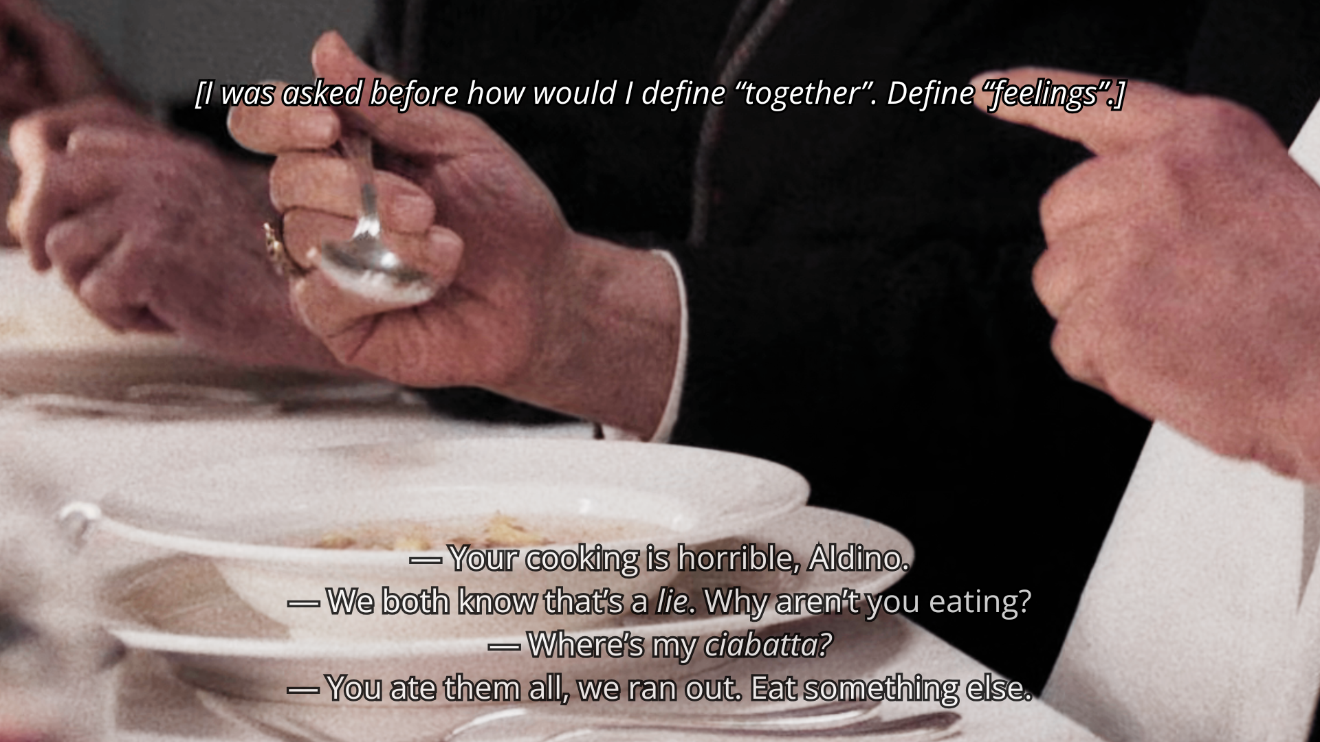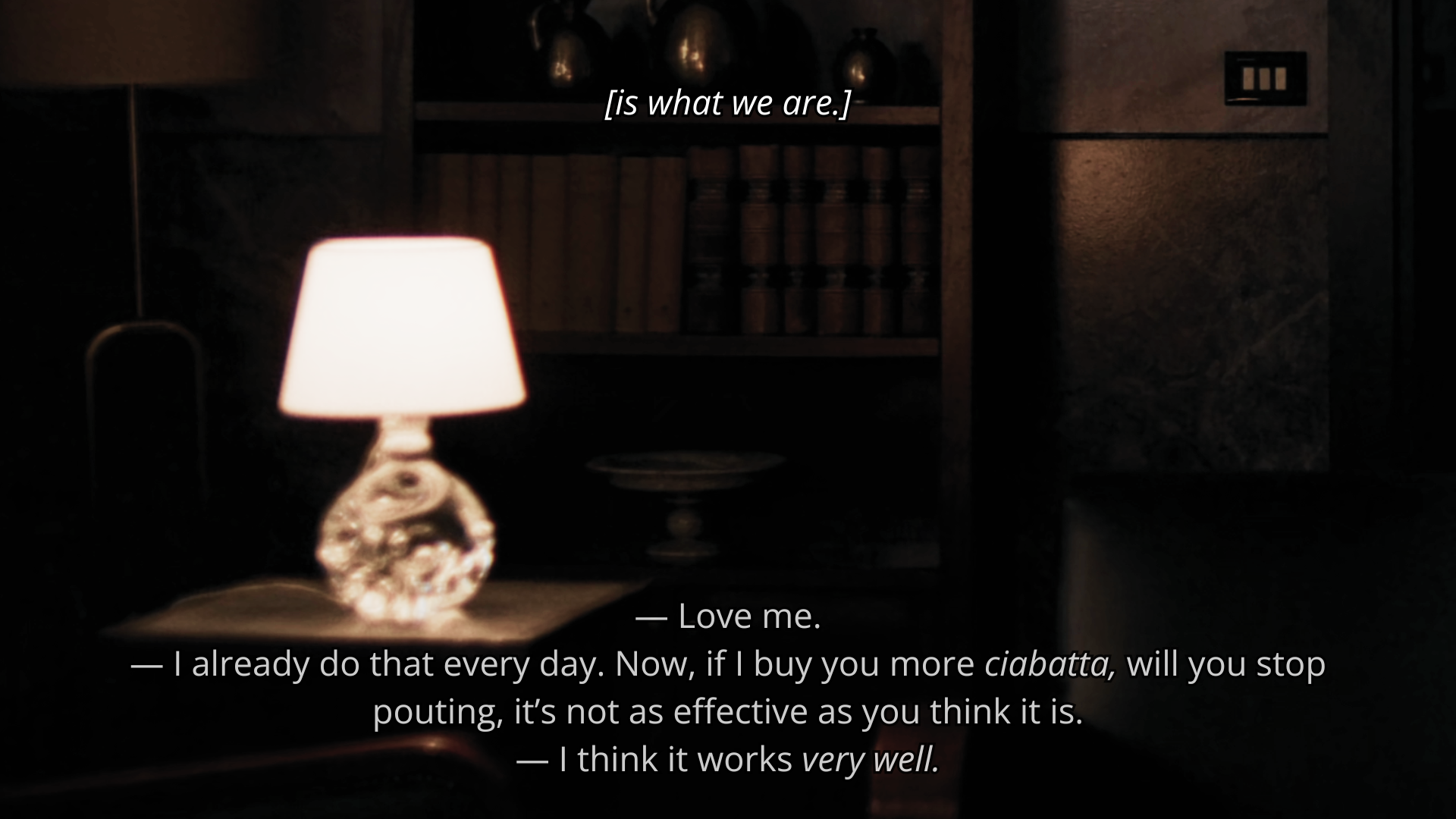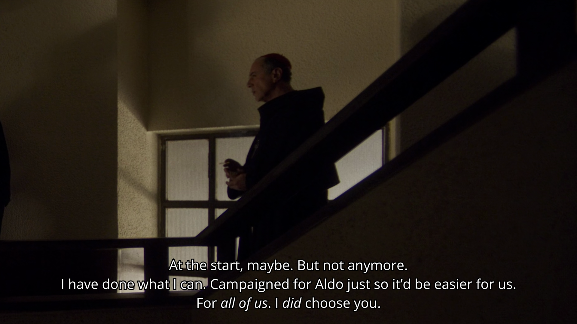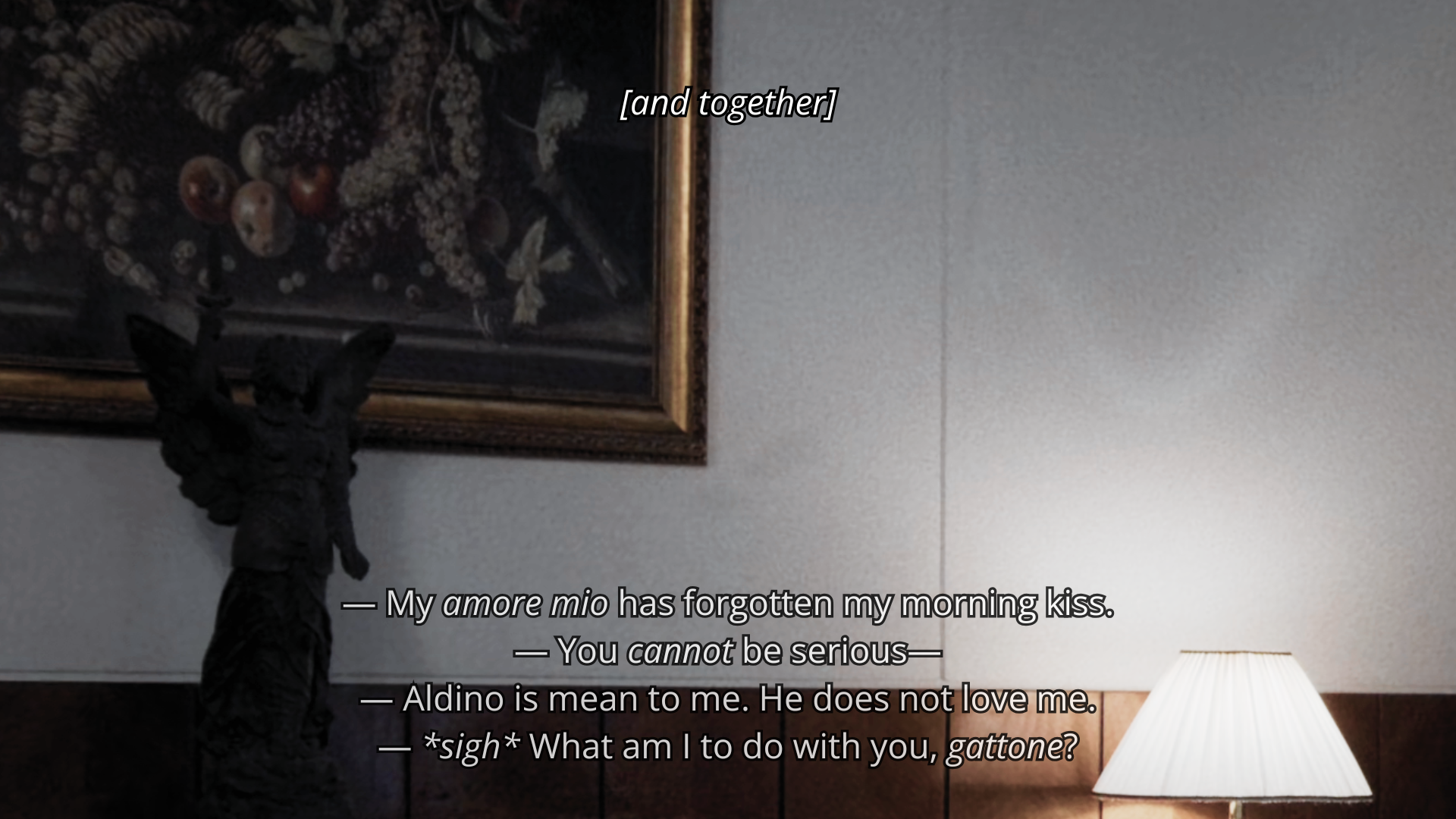 "Lo desidero, Aldo. Guardami cosi." = "I desire it, Aldo. Look at like that."