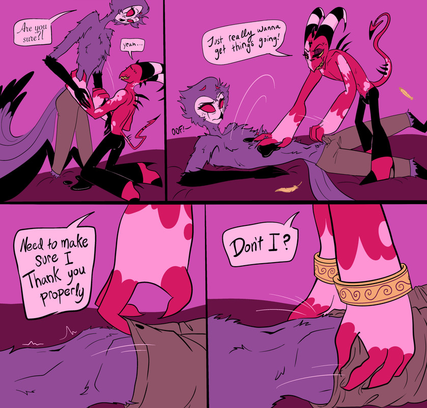 Whatever, it’s fine. Blitzø needs to make good on his promise, after all, and fuck Stolas into his fancy mattress as a thank you.