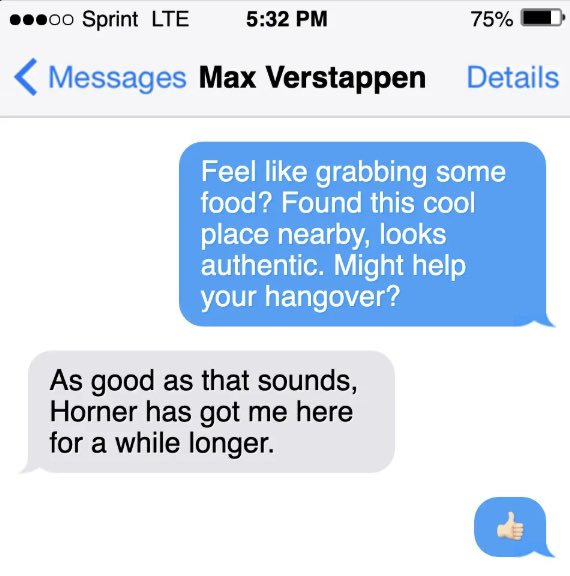 “Max! Max! Rumours are circulating that you may be losing your seat due to performance reasons, can you comment?”