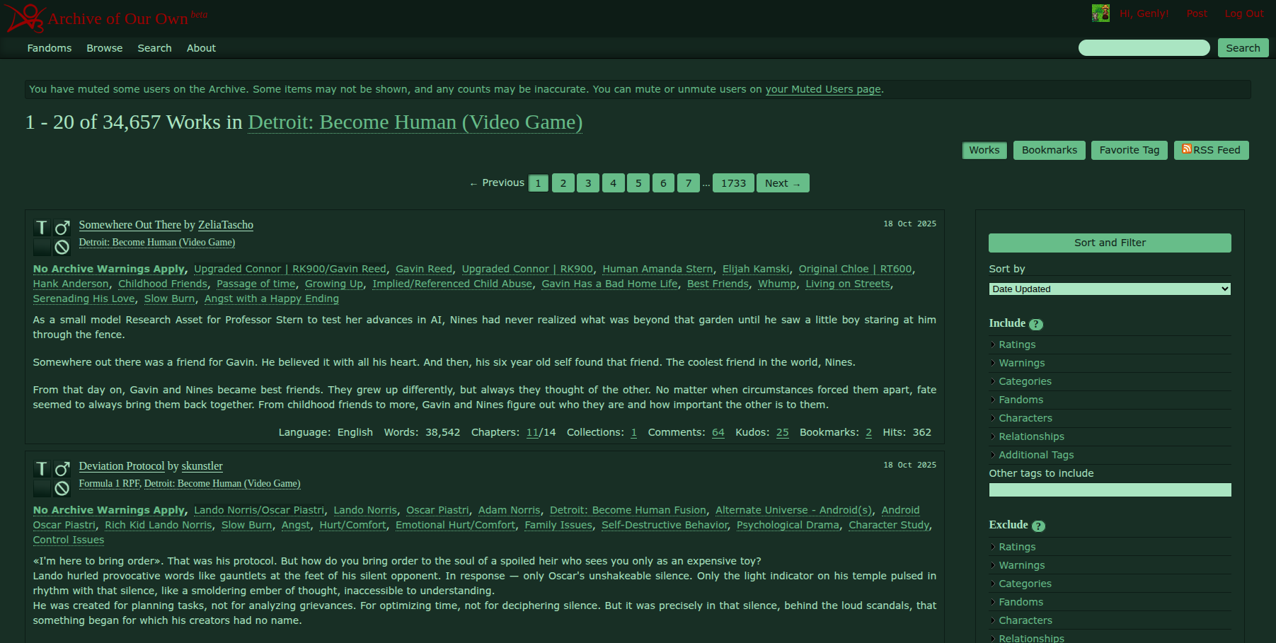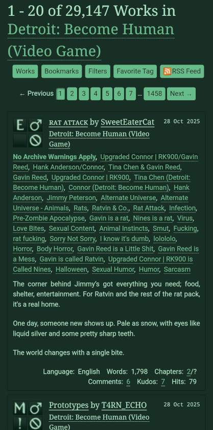 If you're already using a different site skin, for example to hide stats or to use AO3 with a custom font, you can keep using your existing skin together with the Radioactive site skin!