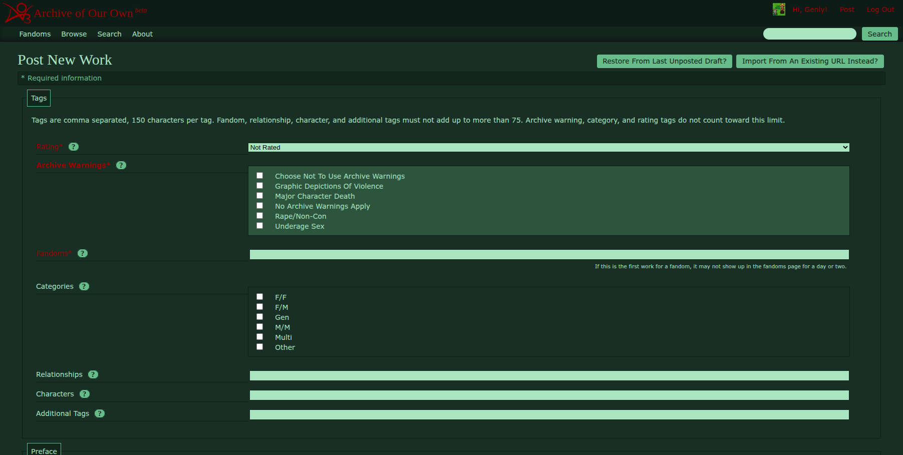- Make sure you are logged in. You can't use site skins without an AO3 account.