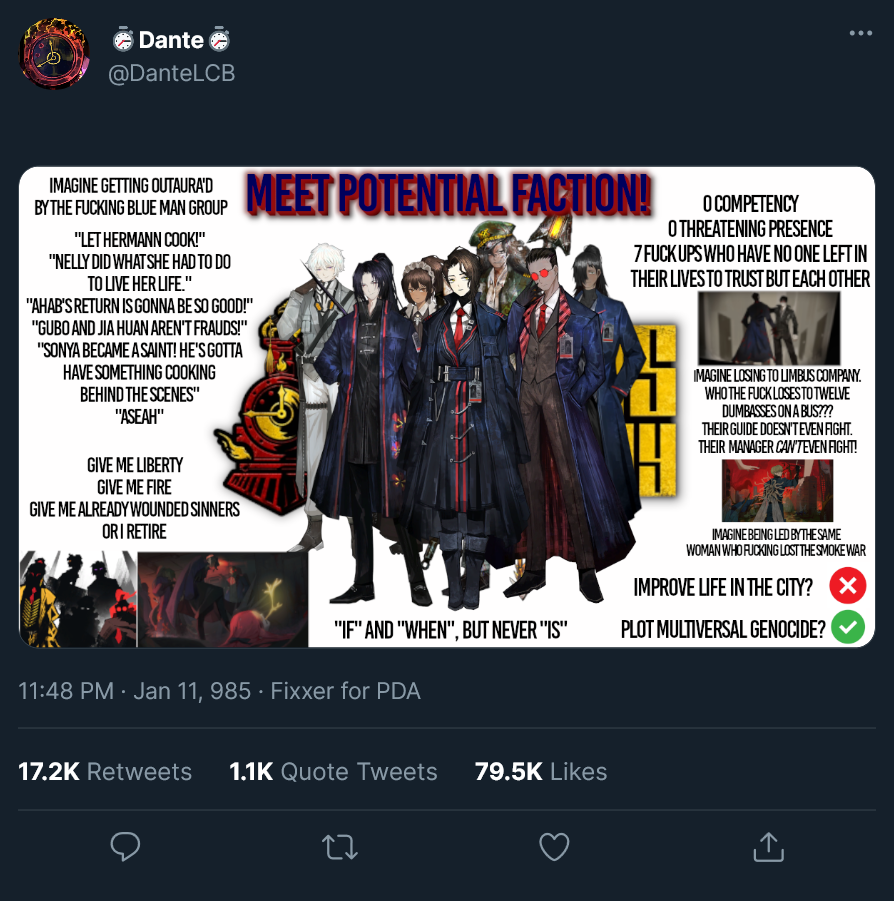 I had seen this post made by, of all people, that damn manager of Limbus Company... |