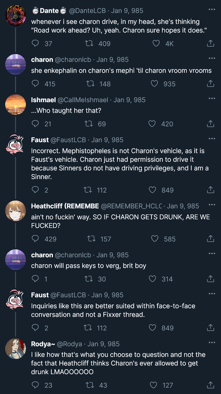 It's also important that you keep your posting, uh, somewhat composed. We do not want to ruin your image of you having one of the more grounded personalities of Limbus Company's bus department. Any questions? |
