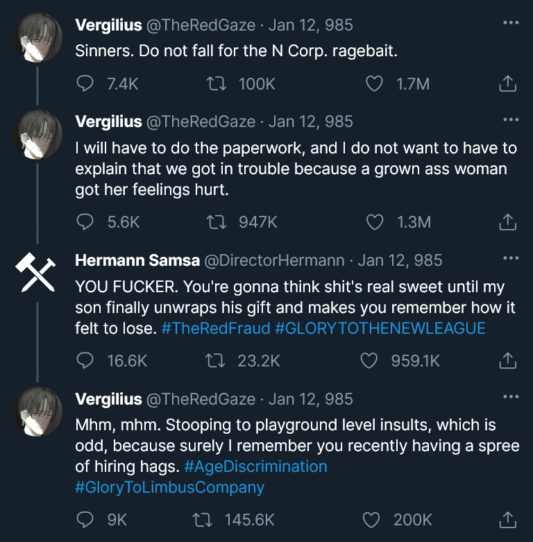 Speaking of which... that is the most insane part. In a week, not counting accounts from within Limbus Company, I've amassed about two thousand followers. |