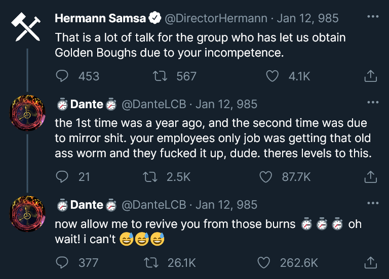 Firstly, no, Dante is my manager. Secondly, they are a they/them! Sheesh... |