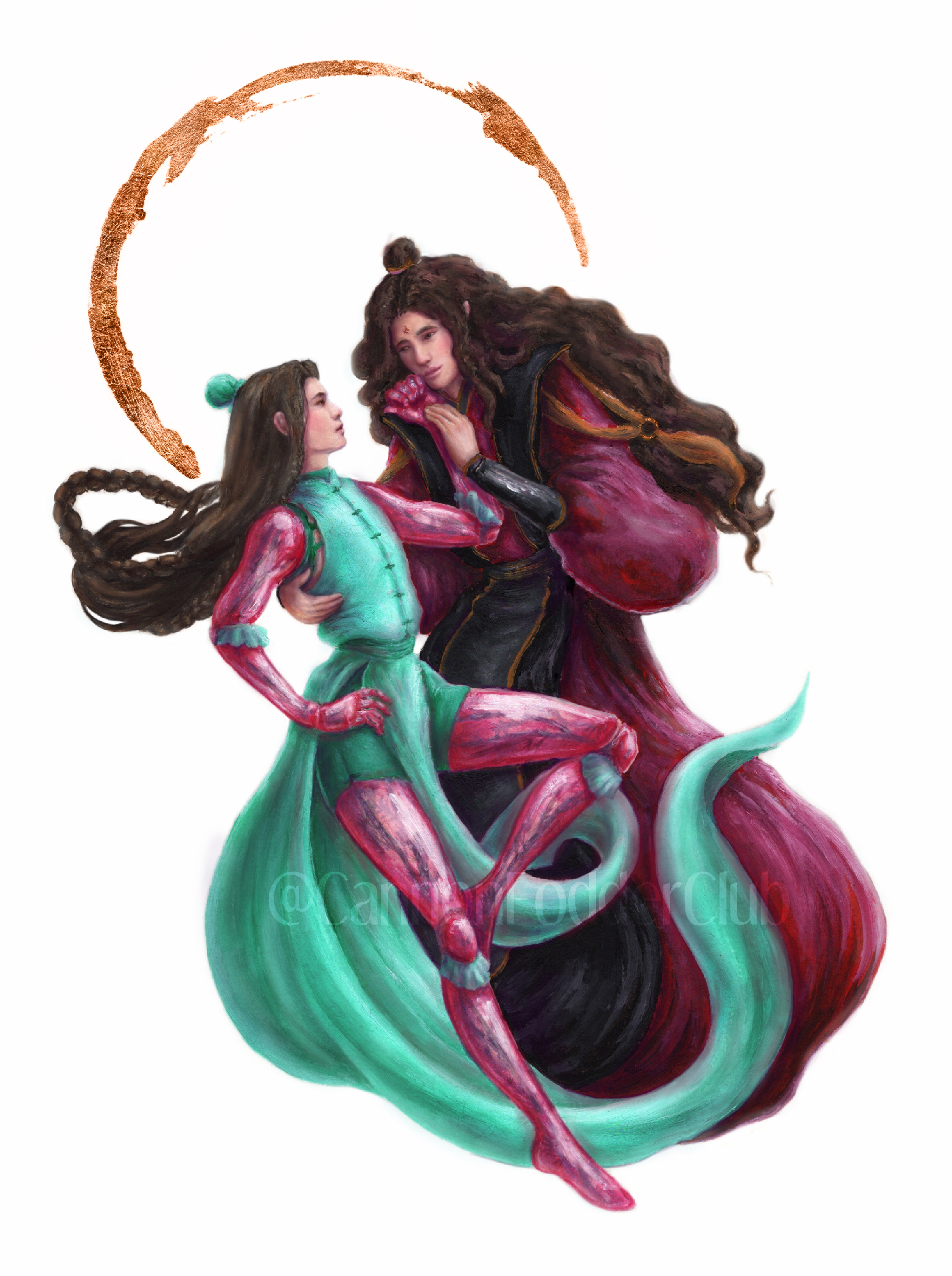 Shen Qingqiu spun quickly back toward Luo Binghe, losing his footing and balance in the process. Luo Binghe closed the distance quickly, unnoticing of the way his pulse spiked, and wrapped an arm around Shen Qingqiu's waist to steady him.