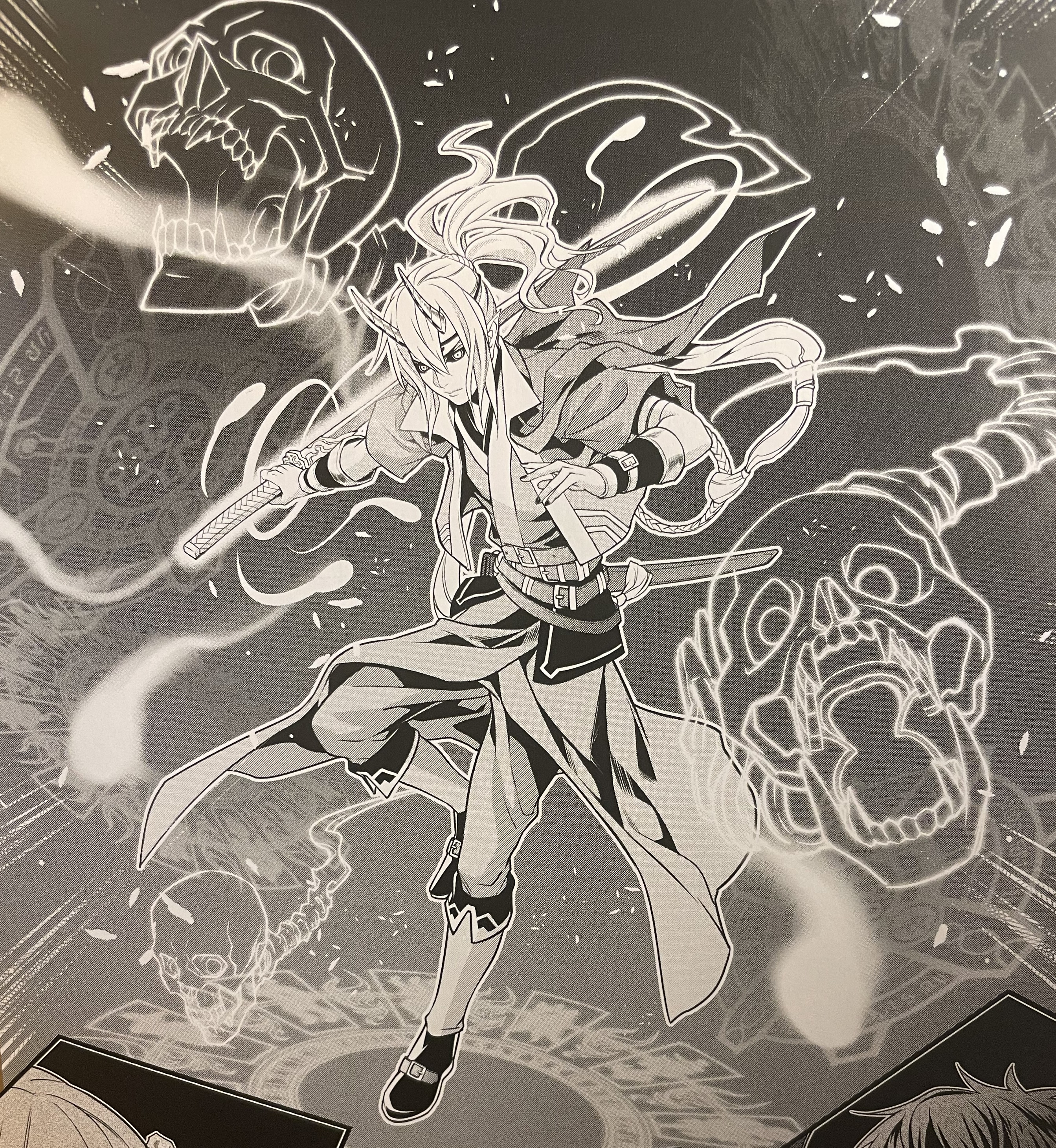 The phantom demon’s expression is indulgently playful. His body, in contrast—curved behind Qiao Yifan’s, their hips close together—is the picture of graceful sensuality. His rather haphazard state of half-undress, and the desultory, partial undoing of his high ponytail, somehow only adds to the eroticism.