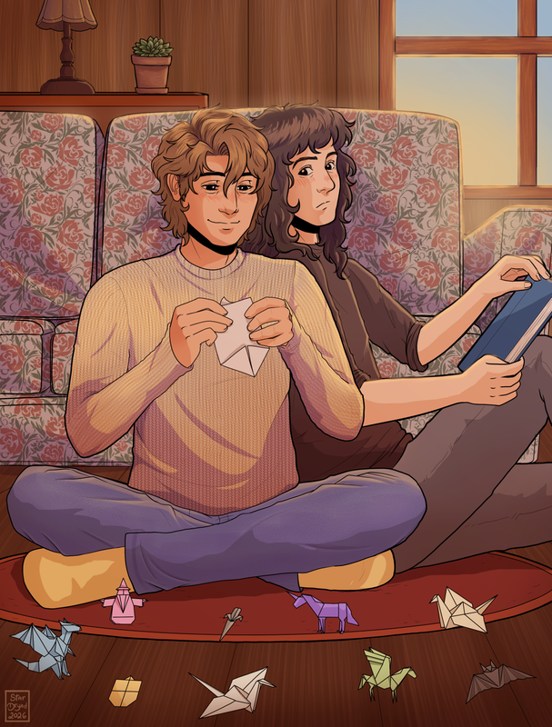 Eddie kisses his cheek, his neck, his jaw, scattering his touch everywhere he can reach. “I see you’ve been busy,” he says with a soft smile, gesturing to the origami scattered everywhere.